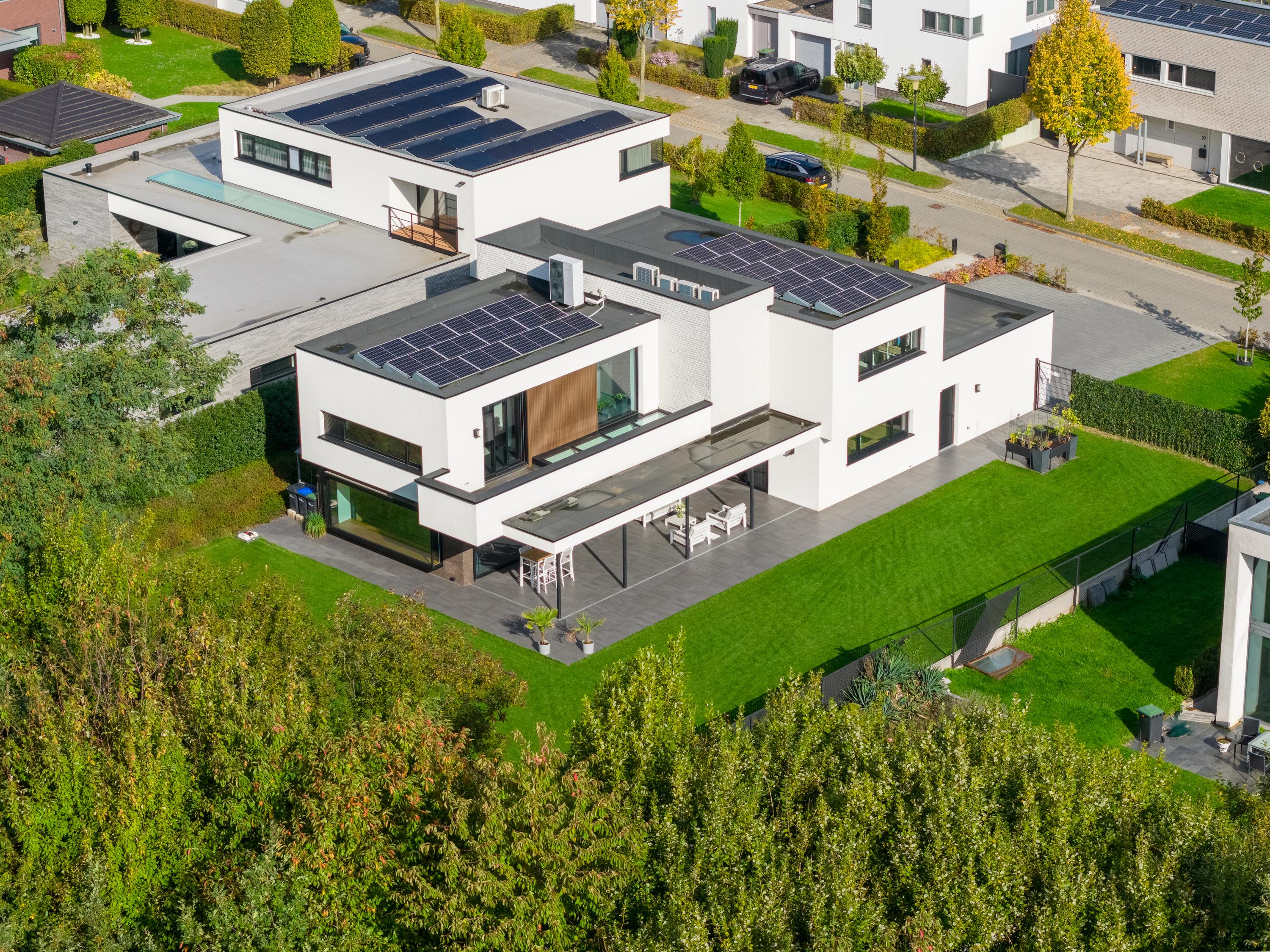 • Warmtepomp, 24 zonnepanelen en vier airco-units.
