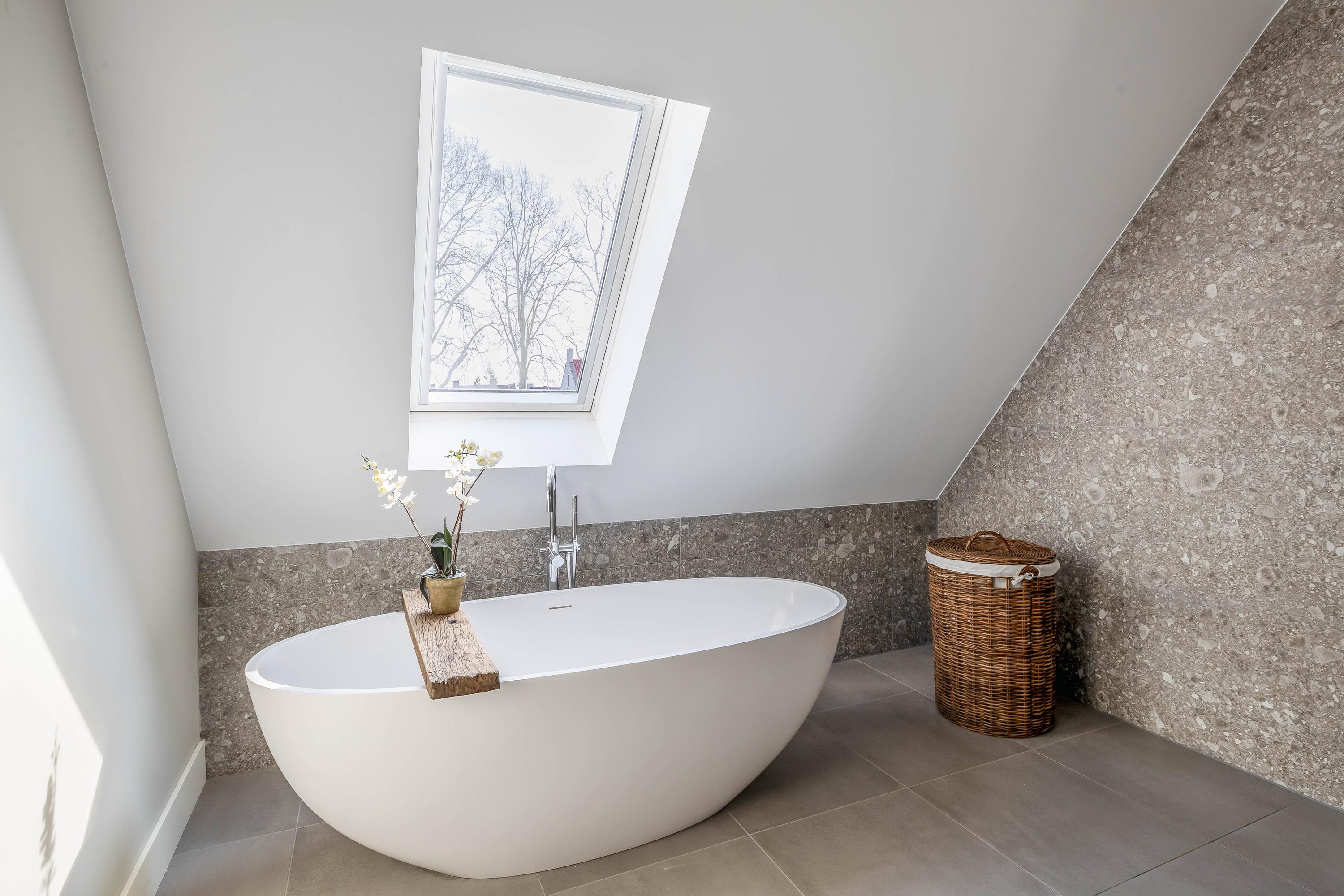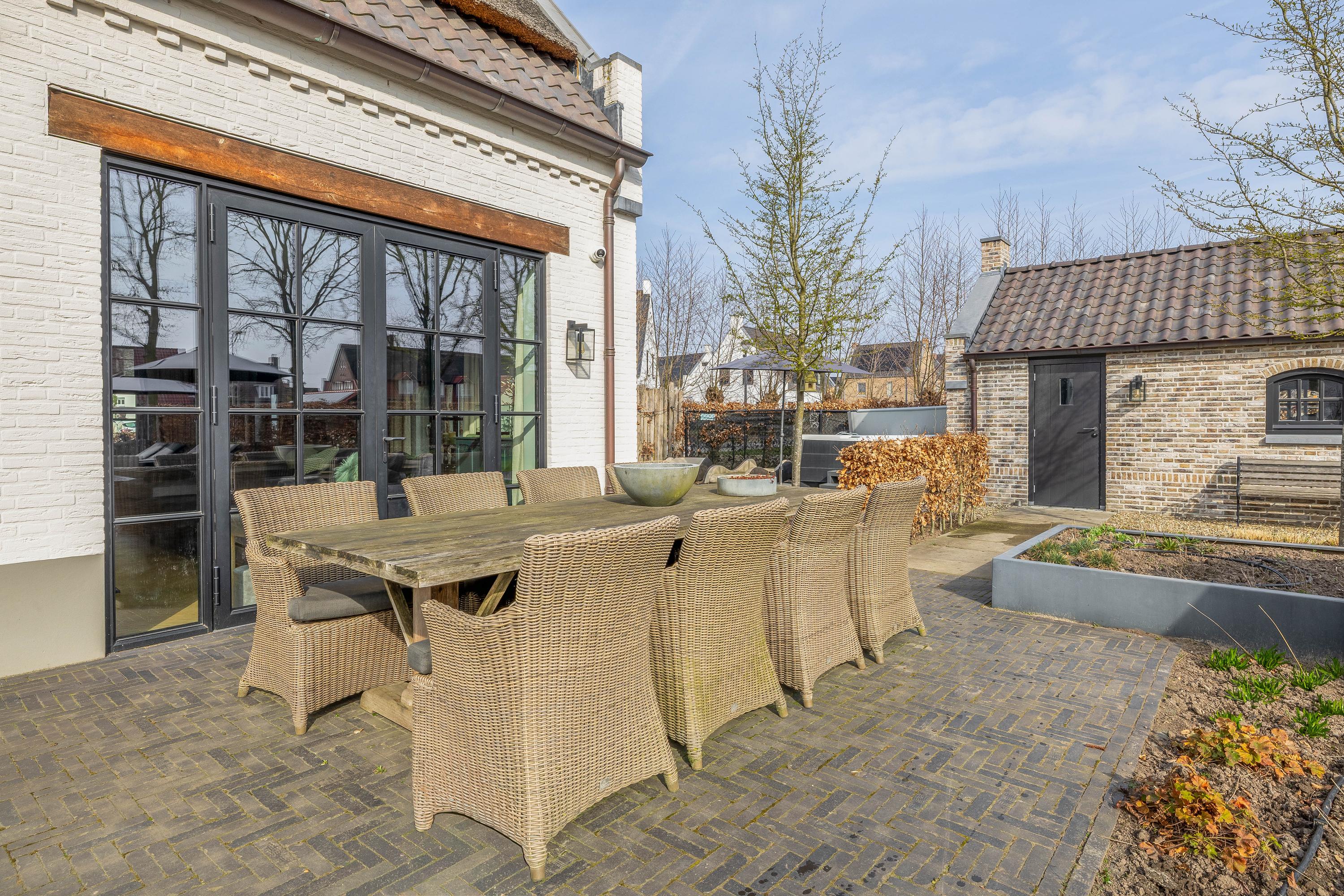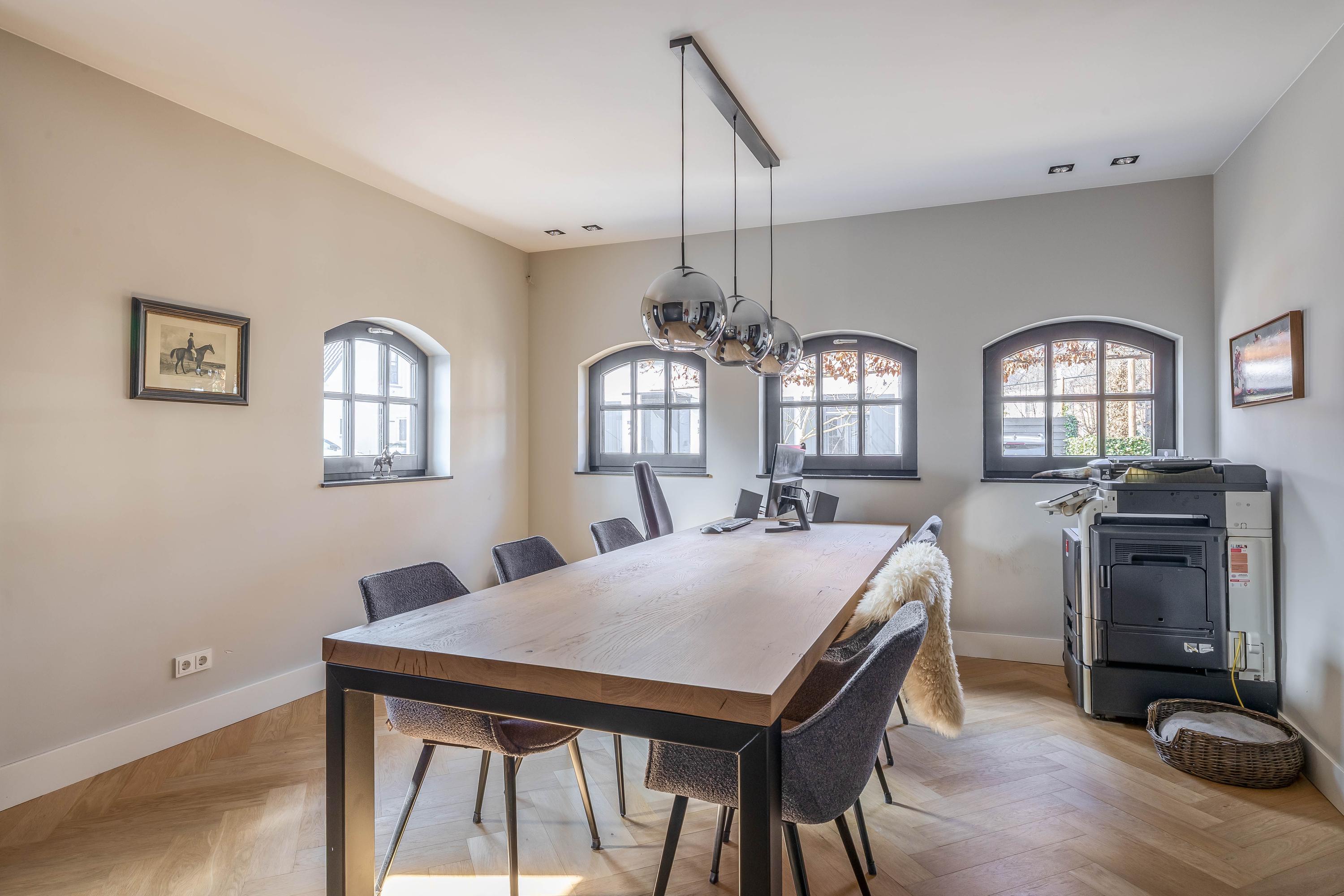 The adjacent (fully insulated) garden shed, with a high continuous ceiling, is perfect for use as a chill-out space, studio, or extra office. The garden shed is styled in harmony with the house. The garden, landscaped by an architect, is a true work of art with rich borders, elegant hedges, atmospheric pathways, and lush lawns. The carefully chosen boundary walls and playful materials create a dynamic and inviting outdoor experience. Not to mention the water paradise, which flows into a rustic pond area, creating a perfect balance between luxury and nature.