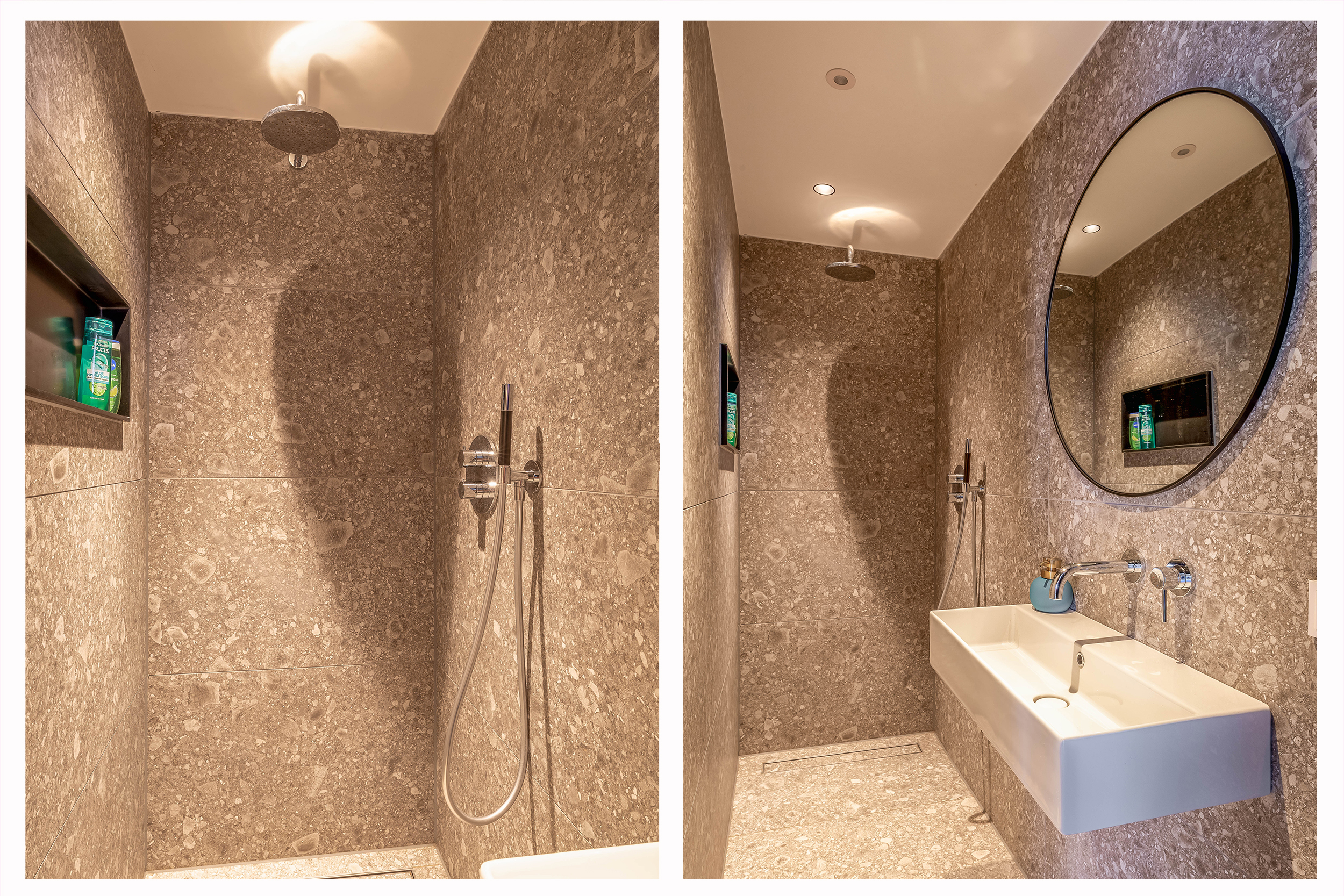 This farmhouse offers you a rare opportunity to live in an oasis of luxury, comfort, and privacy. With attention to detail, high-quality materials, and a thoughtful layout, every floor showcases a cohesive design where ceramic tiles, an oak herringbone floor, and meticulously applied stucco unite to form a warm and elegant whole. The seamlessly coordinated materials and finishes give every space a refined, consistent look.