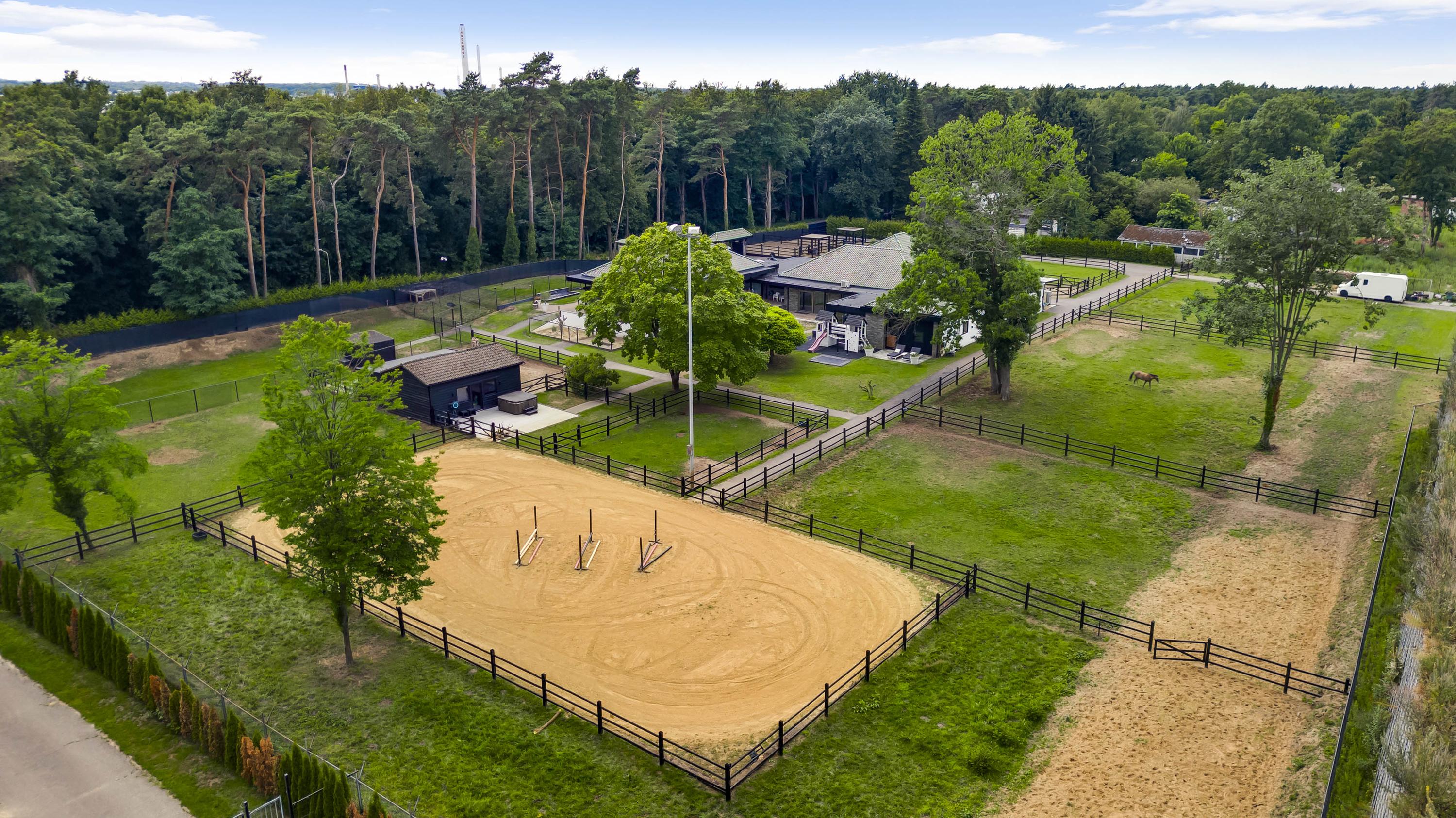 Set in a breathtaking location bordering National Park De Meinweg and just a stone's throw from the prestigious Herkenbosche Golf Course, this exclusive and fully modernized villa is situated on a generous plot of 11,171 m². A unique living experience where luxury, comfort, and tranquility harmoniously blend with the outdoor lifestyle. With extensive equestrian facilities – including a floodlit riding arena, 6 premium horse stables, a tack room, wash bay, and multiple paddocks surrounding the residence – this property is a dream come true for any horse lover. Alternatively, the space offers ample potential for other purposes, such as a private indoor pool or wellness retreat.