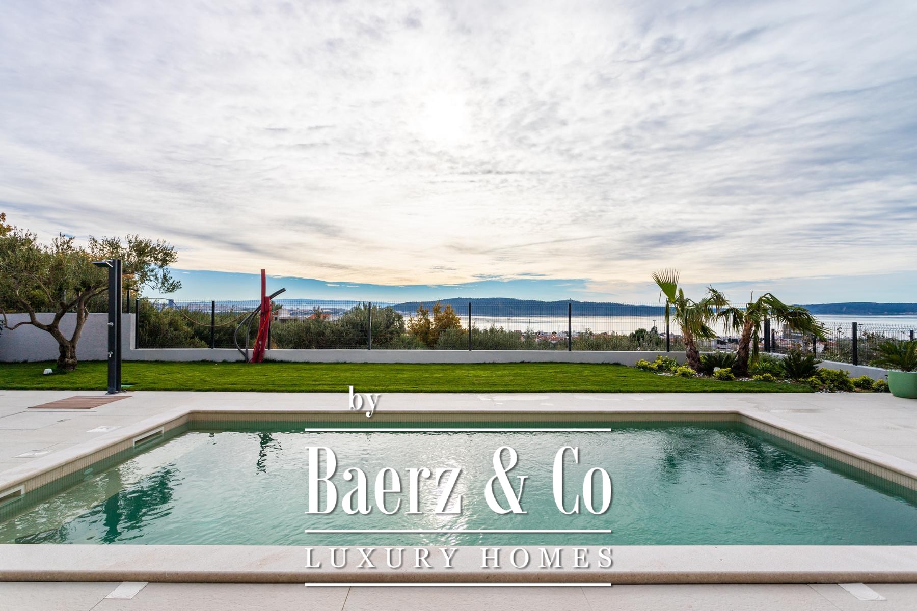 Villa Kaštela stands as a thoroughly modern property in one of Croatia’s most promising coastal enclaves. This villa Kaštela is set on a 490 m² plot and offers 320 m² of carefully conceived living space across three levels, articulating clarity of design and a quiet sense of privacy.