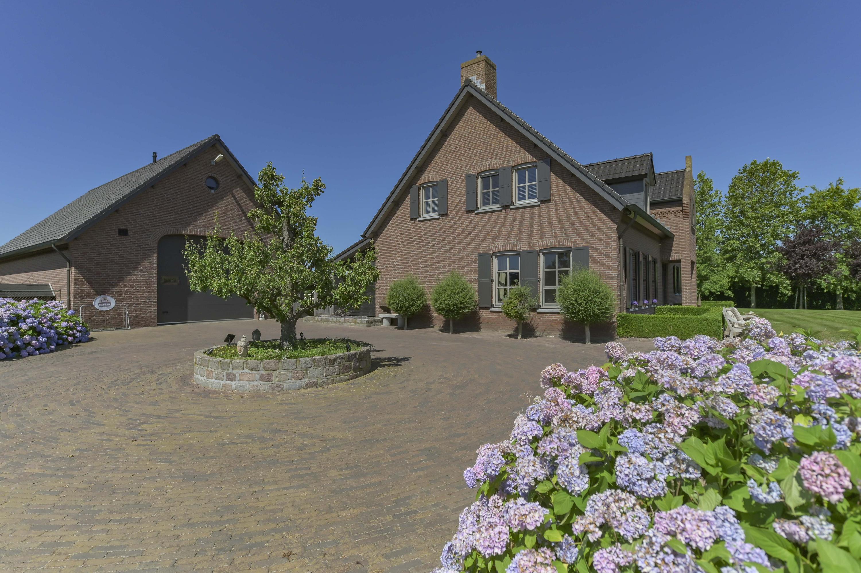 The villa immediately stands out with its distinctive shutters and unique façade colour – a true eye-catcher in Kessel. Elevated on a terp, the property is even visible from the opposite side of the river Maas.