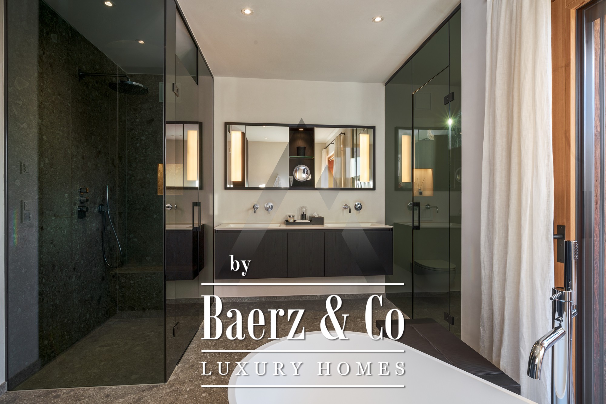 Attention to detail includes Occhio designer lighting, geothermal heating, air conditioning, and an elevator. A 2-car garage and outdoor parking accommodate both vehicles and equipment for alpine pursuits. All interior fittings, custom finishes, and furnishings curated by a renowned designer are included.