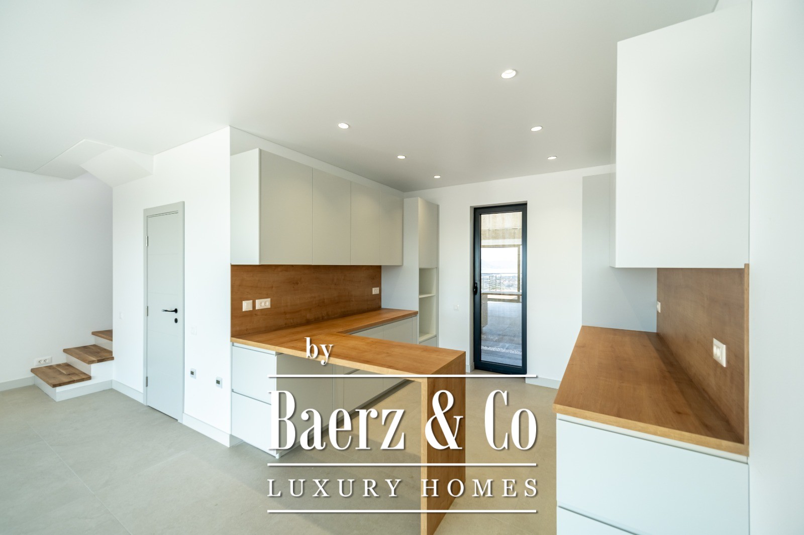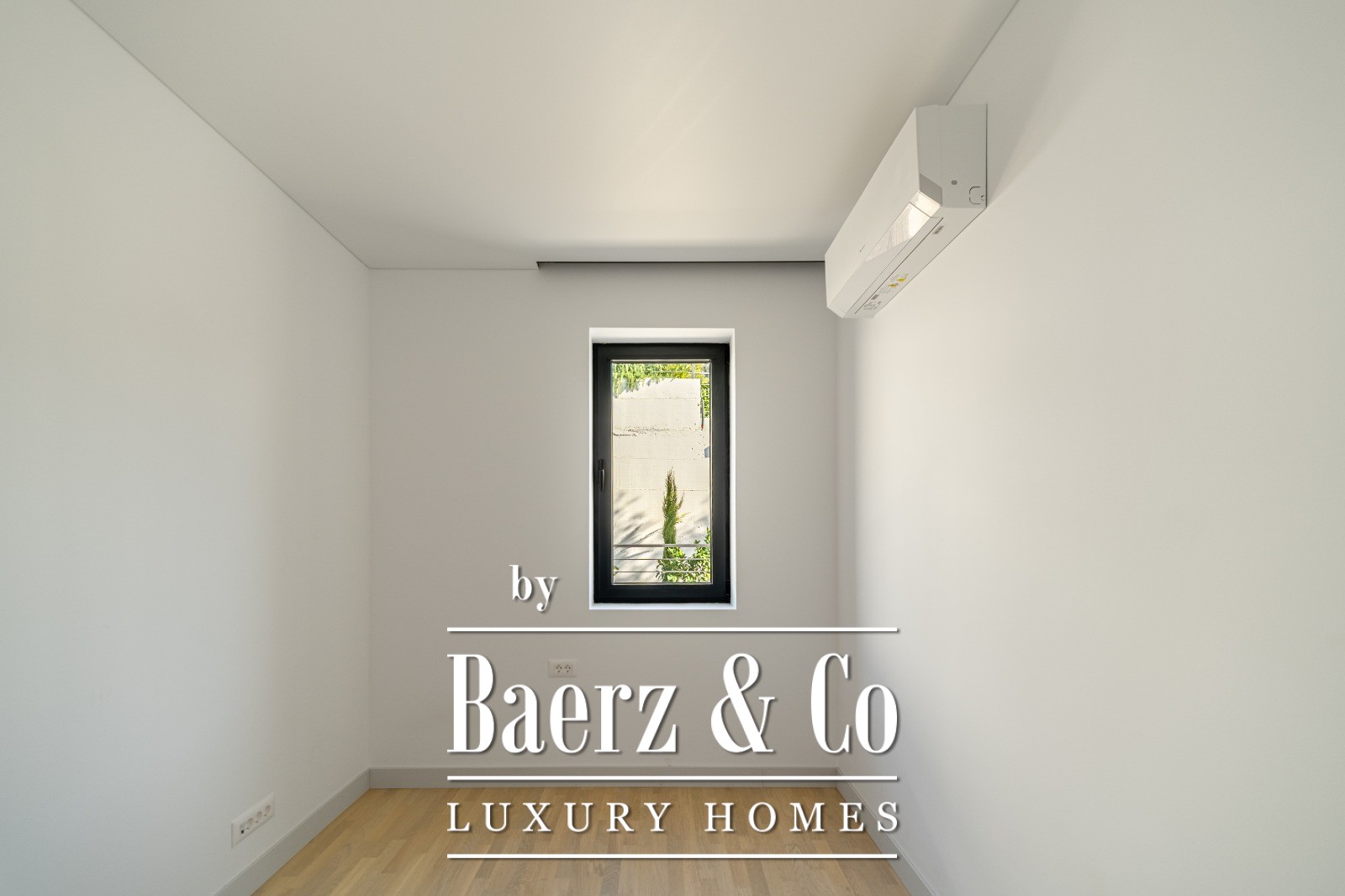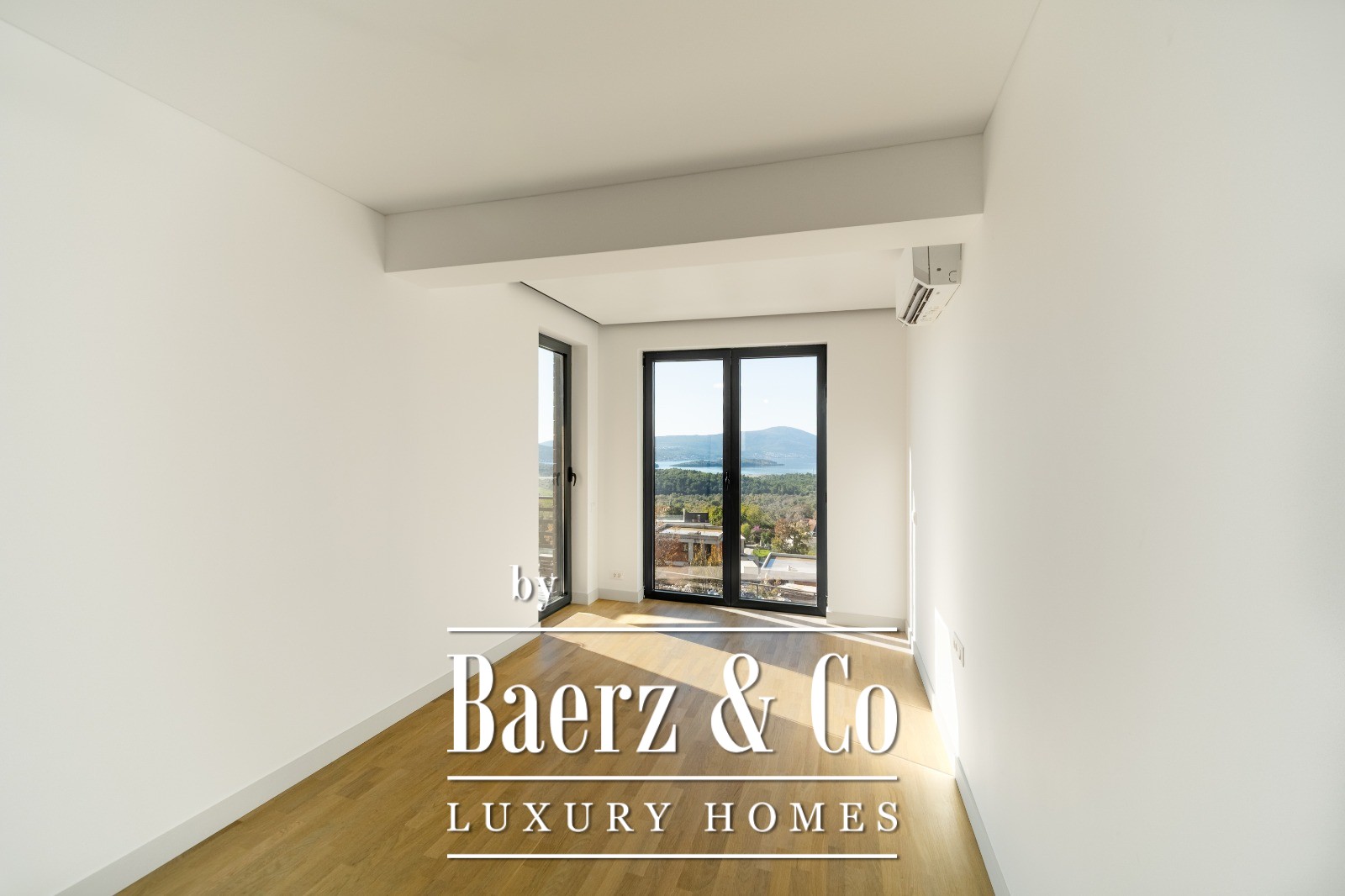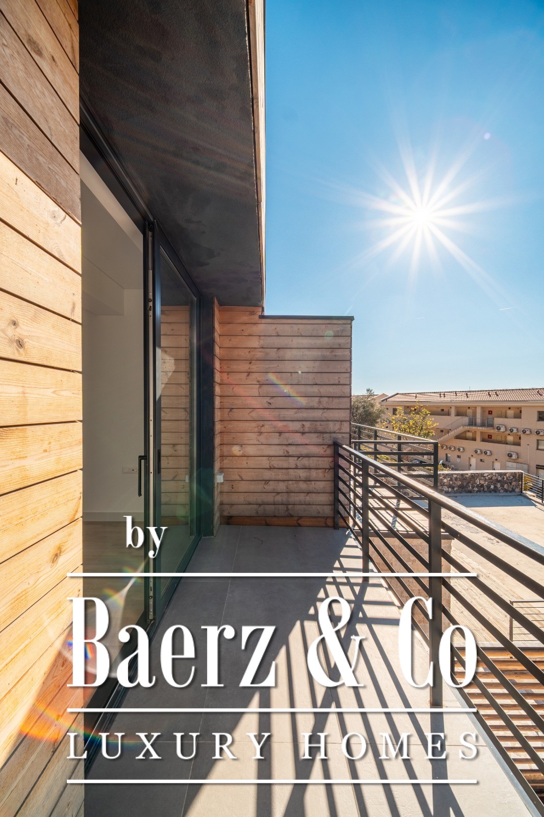 This contemporary townhouse offers 134 m² of living space and a private plot of 200 m². The residence presents a generously open living and kitchen area, three bedrooms, two bathrooms, and dual terraces that open to panoramic views of the bay. Four units form each townhouse, with kitchen equipment included as standard. Interior choices are refined yet flexible, with parquet or ceramic tiling, individually chosen colours for walls and ceilings, and energy-efficient materials underscored by a modern reinforced concrete framework.