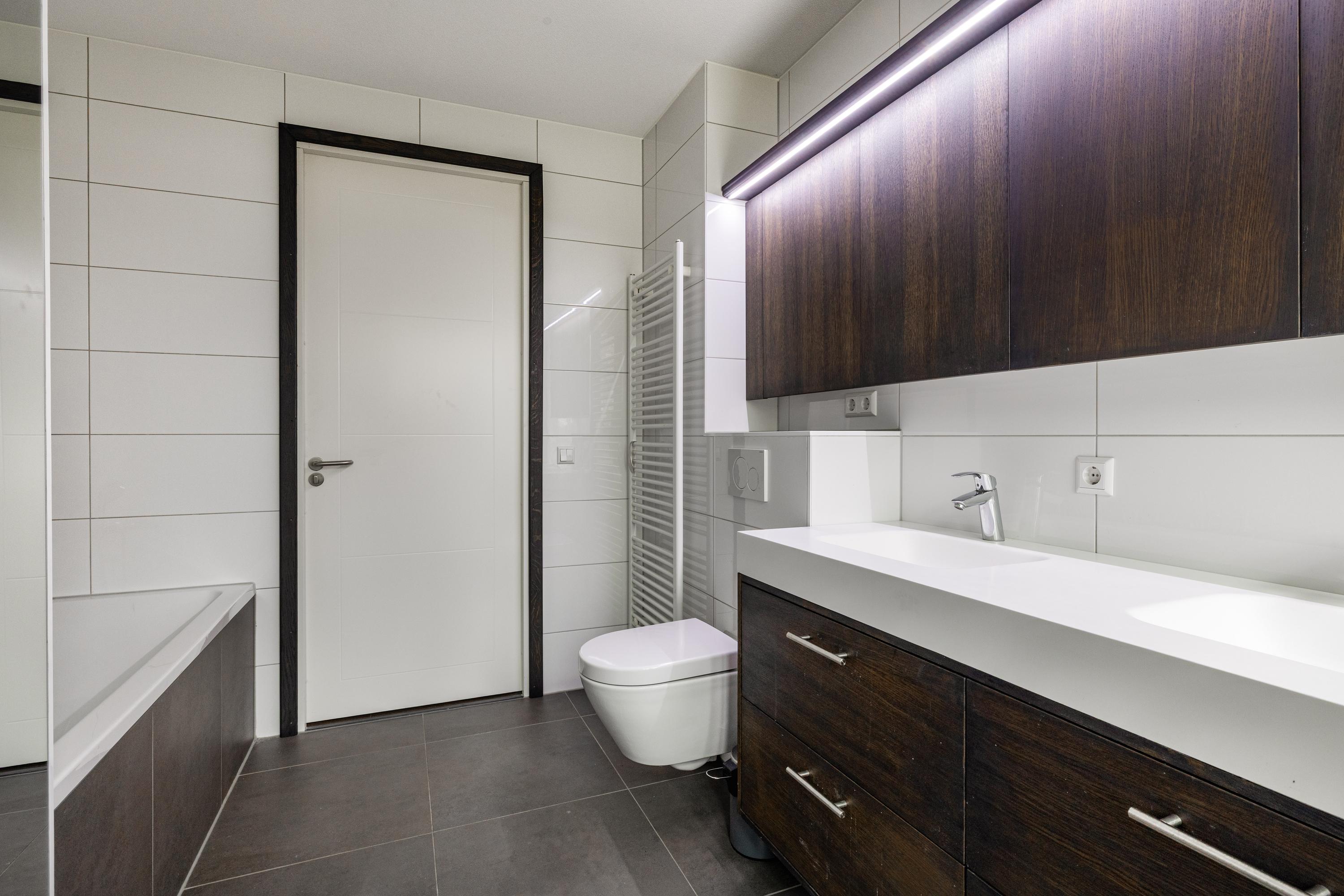 The en-suite bathroom is stylishly and comfortably finished and includes a bathtub, spacious walk-in shower, double washbasin and high-quality materials throughout. Everything is generously designed and perfectly suited for those who wish to live on one level without sacrificing luxury or comfort. The second bathroom is ideal for guests or a (small) family, ensuring everyone has their own space.