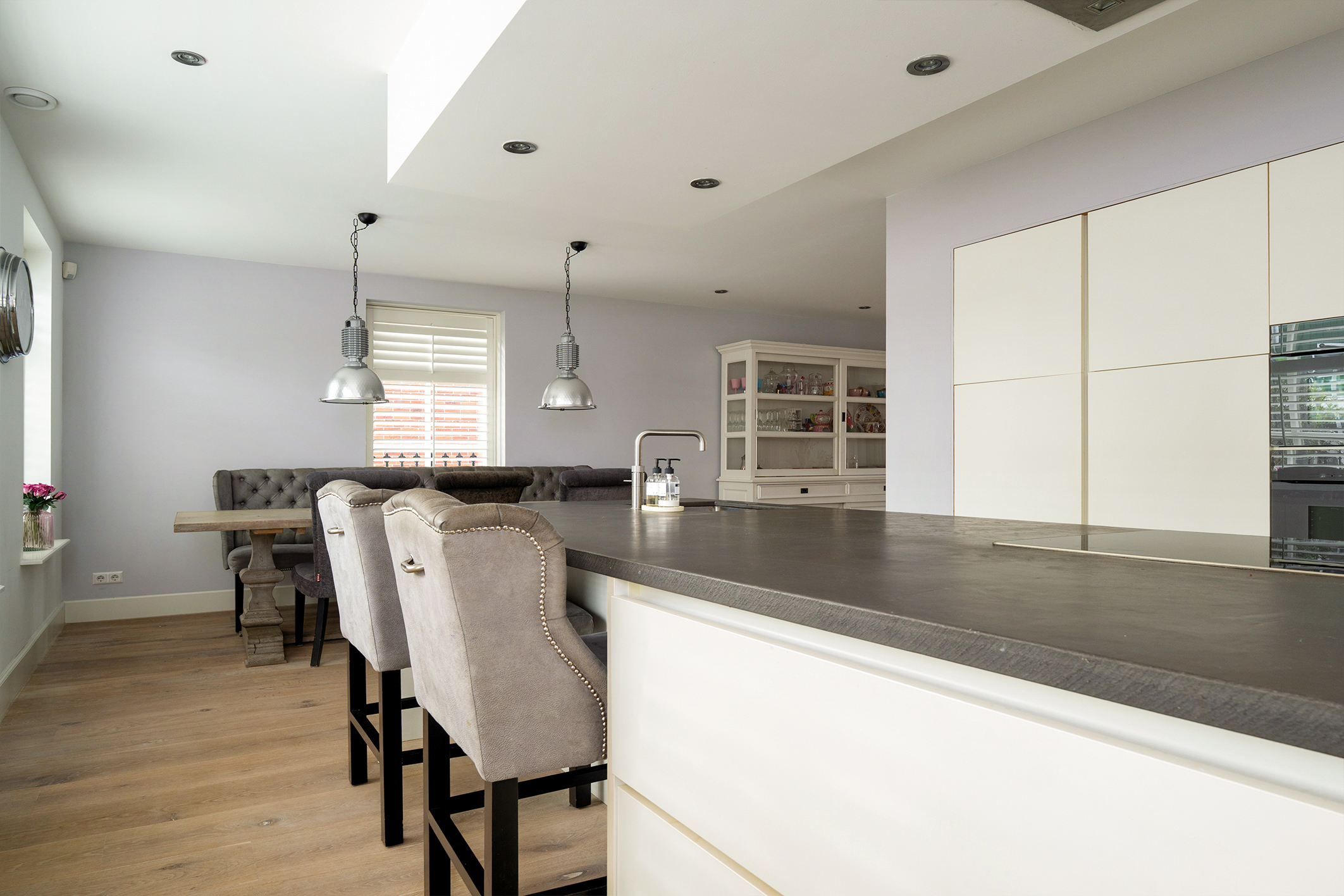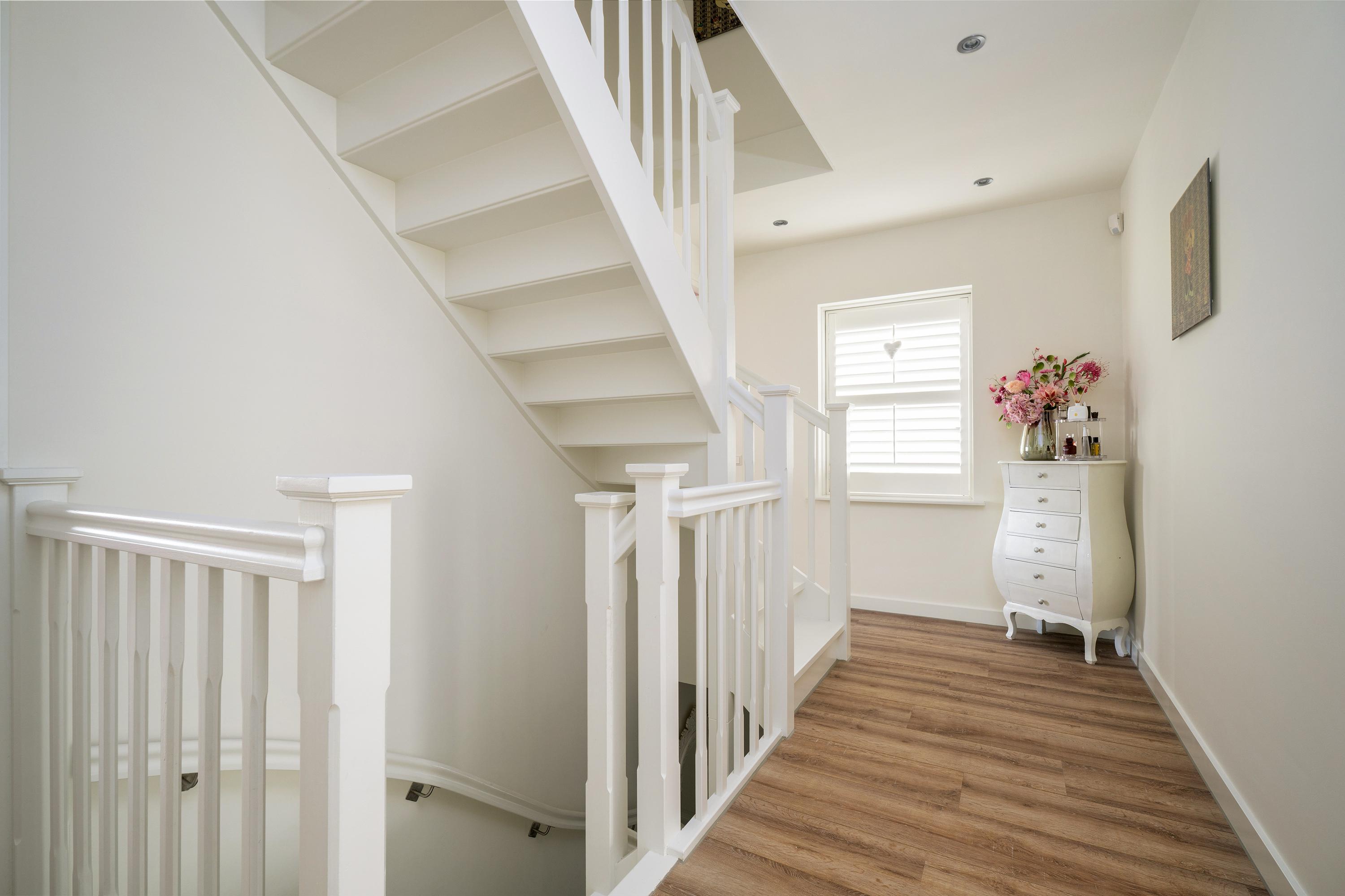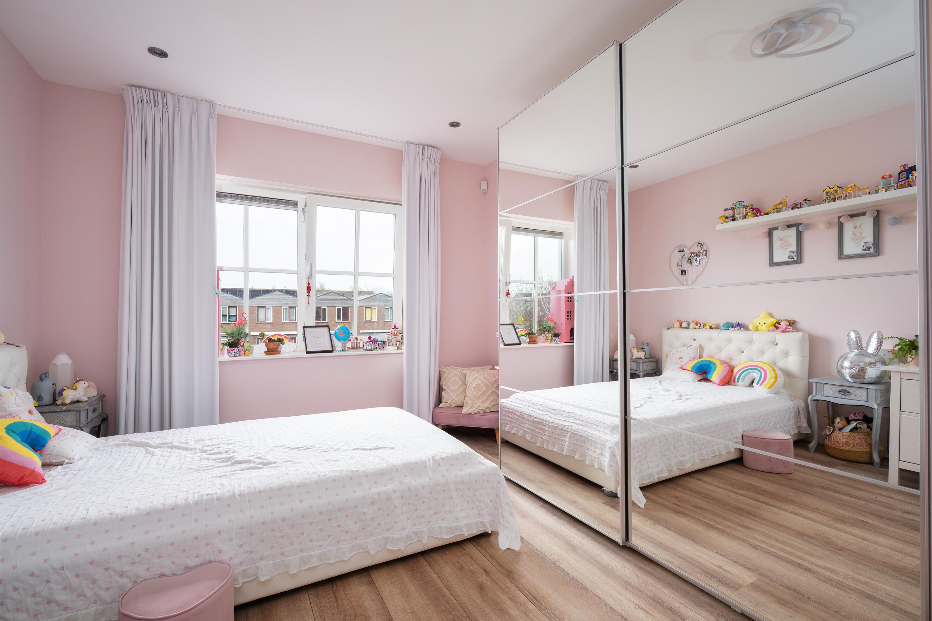 This richly detailed townhouse (2016) stands out with its high gutters, masonry pilasters, French balcony, and characteristic truncated hipped roof. Also striking is the space and pleasant layout on all floors, including 5 bedrooms and 2 bathrooms. Ideal for living with a (larger) family. This is also reflected on the ground floor in the generously sized kitchen-diner at the front of the house, featuring a large sink/cooking island and a wall with built-in appliances.