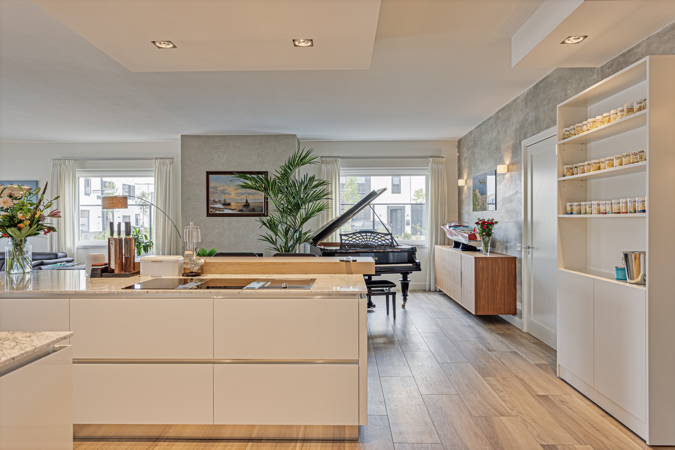 Step into a residence that feels like a five-star hotel. Through the double front doors, you enter a spacious hallway with access to the cloakroom, guest toilet, staircase, study, and the loft-style living area with an impressive kitchen – a dream come true for culinary enthusiasts.