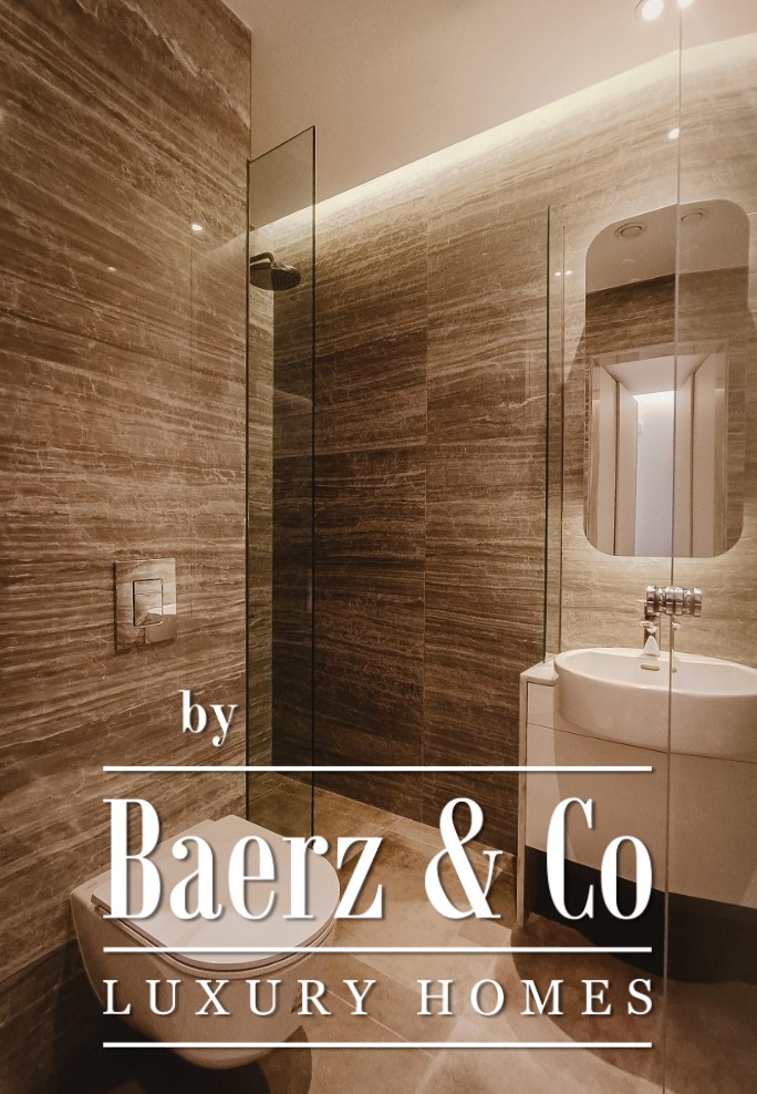 Four bedrooms, all en-suite, sit quietly apart, each with spacious built-in wardrobes and access to high-quality finishes. The open-plan kitchen and living ensemble is anchored by designer surfaces, while semi-solid parquet or marble flooring sets an understated rhythm underfoot. Large patio doors, double-glazed for sound insulation, visually connect the interior with the terraces and city beyond.