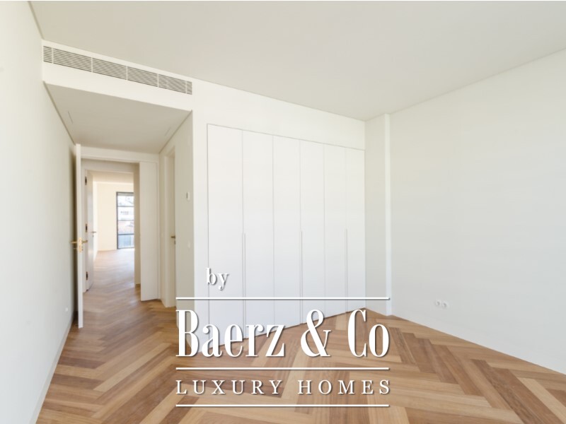 Both bedrooms are en suite, ensuring comfort and autonomy. A guest bathroom provides further refinement. The crown of this residence is the private penthouse rooftop, comprising 120m2 with a swimming pool and far-reaching views over Lisbon. Soft city light filters across the horizon, forming a singular retreat above the rhythm of the city. One parking space underscores the property’s urban ease.