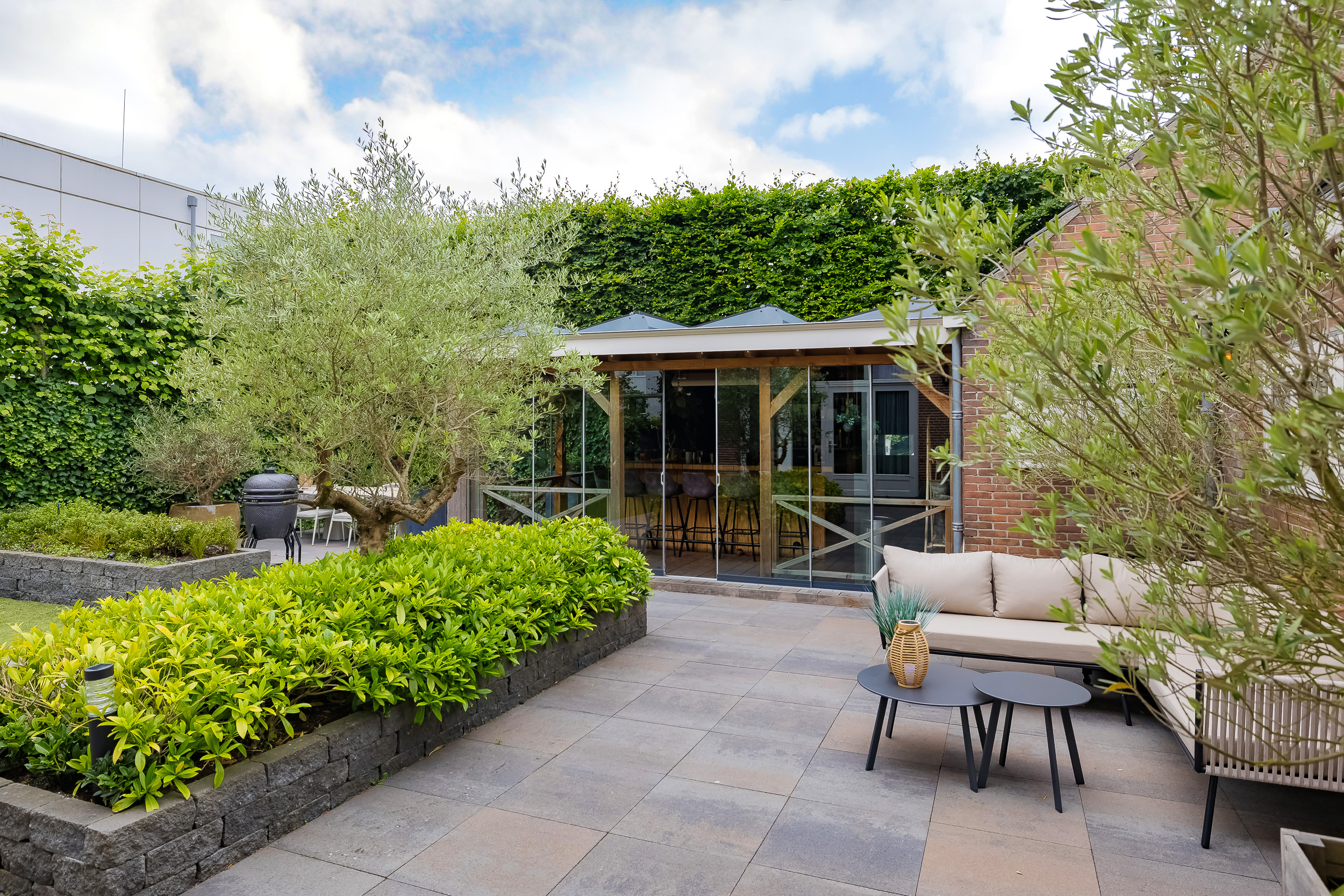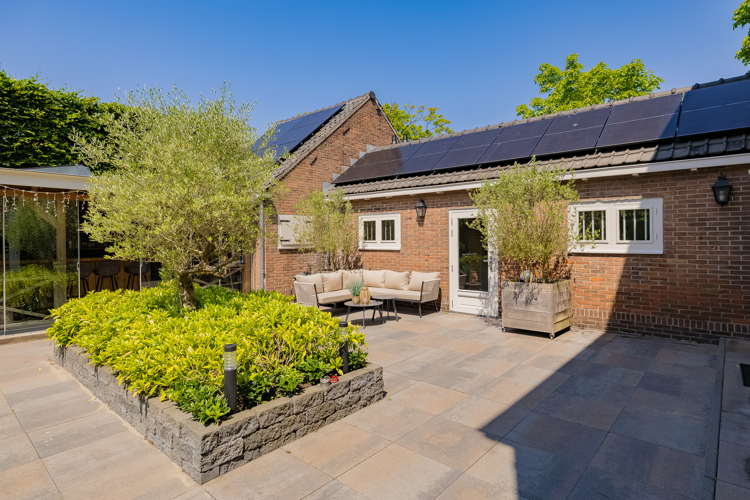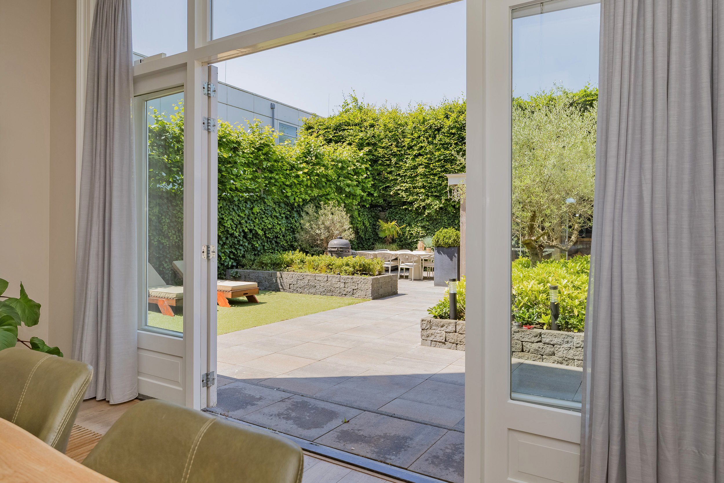 The beautifully landscaped garden surrounds the house and includes a new in authentic style wrought iron fence, lighting and irrigation. The very sunny backyard of 13 meters deep and 7.5 meters wide offers lots of privacy and is equipped with a large veranda where it is also good to stay in the colder months.