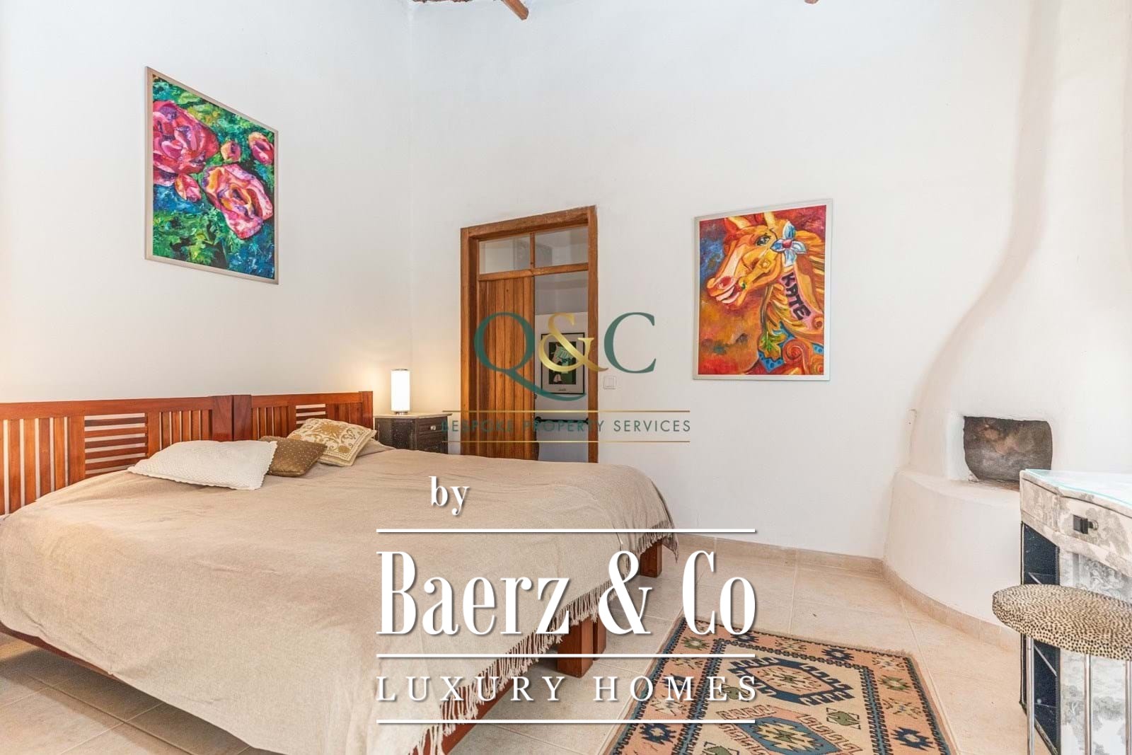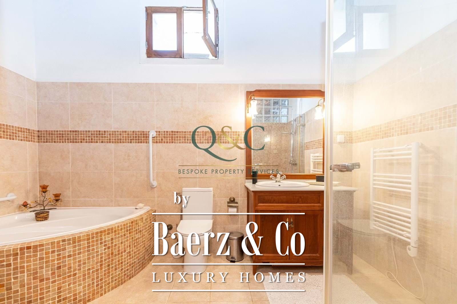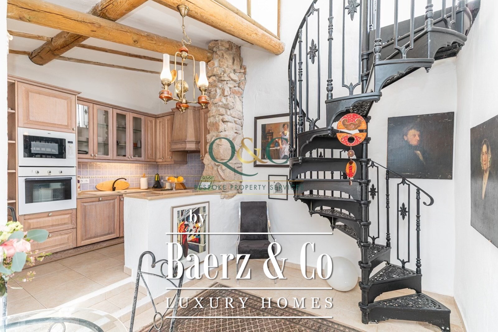 Original details such as stone walls, wooden and bamboo beam ceilings, and a traditional fireplace ground the home in local character. Air conditioning in the entrance and lounge area, along with duo-therm natural stone radiators, ensures year-round comfort.