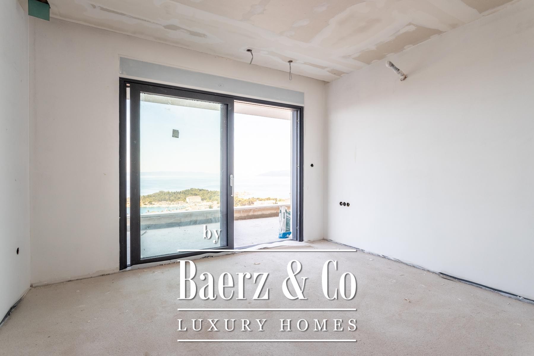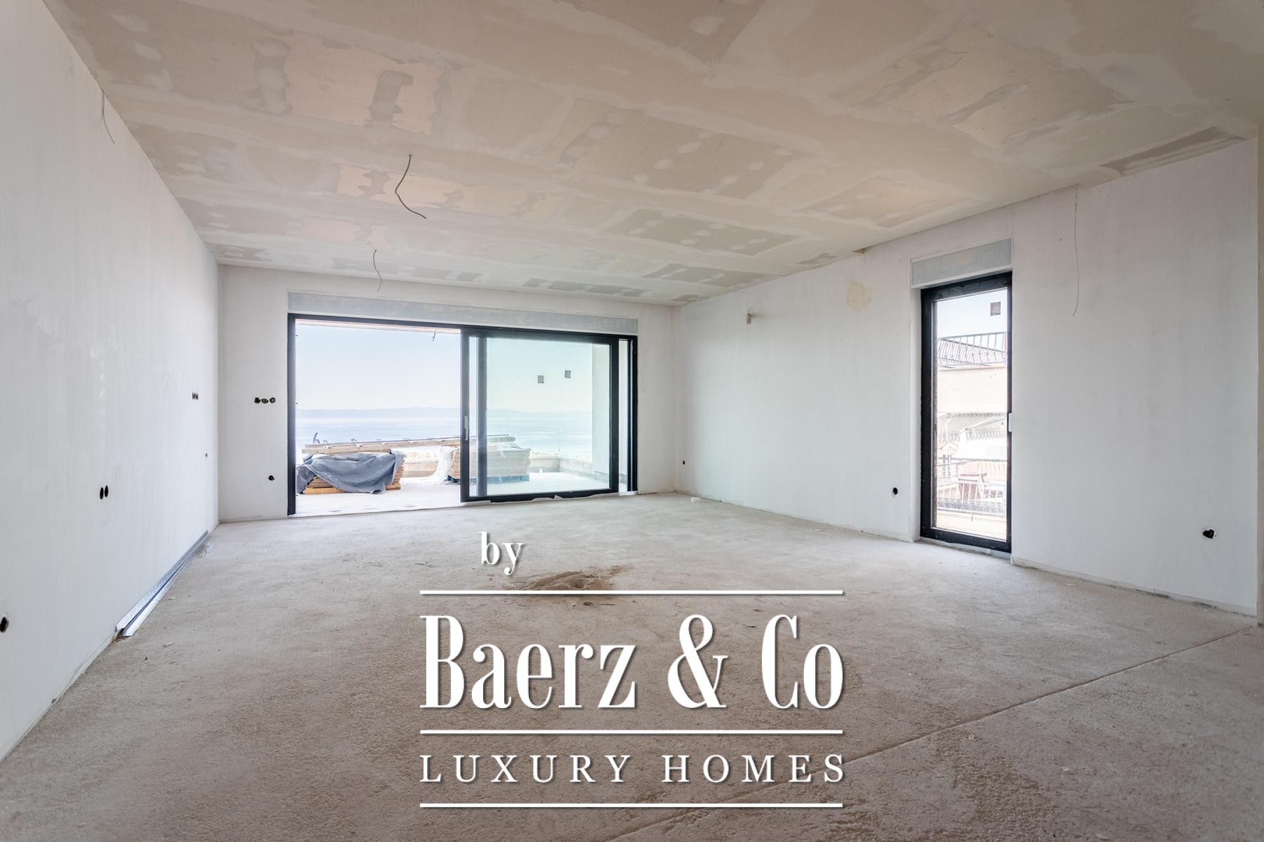 The floor-through apartment is thoughtfully divided into three en suite bedrooms, a spacious hallway, a pantry, laundry room, and an expansive living area that flows naturally to the outdoor spaces. The intelligent layout ensures each room is bathed in Adriatic light, enhancing the sense of calm and space. Smart home technology and underfloor heating via a heat pump, paired with quality air conditioning, bring comfort to every season. The selection of first-class parquet and ceramics, complemented by Schuco aluminum details, underlines a commitment to enduring quality.