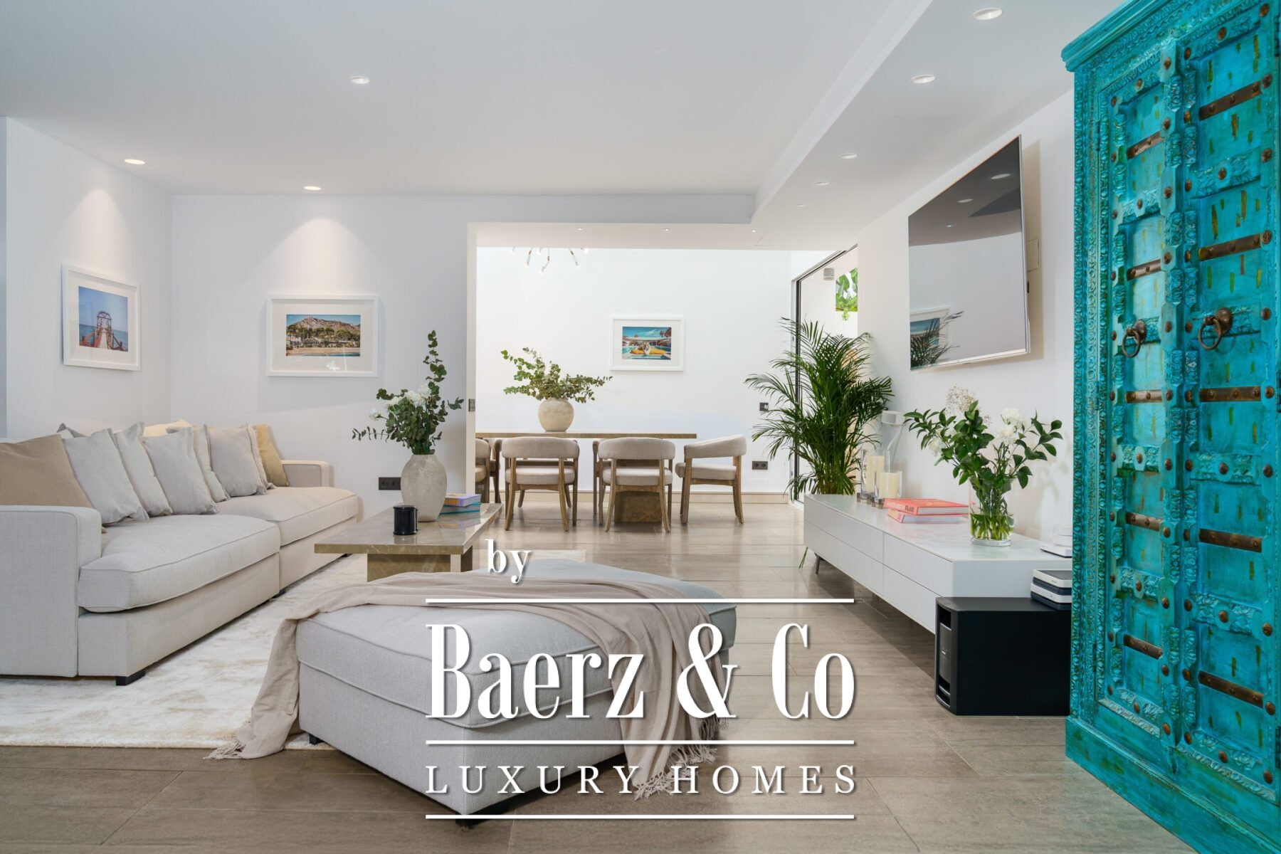 Villa Nueva Andalucía with sea and mountain views stands as an elegant example of contemporary architecture meeting thoughtful transformation. Across 310 m² of living area on a 1,150 m² plot, the villa offers a sense of calm in a coveted Marbella address, with effortless access to local shops, renowned restaurants, and essential services within walking distance.
