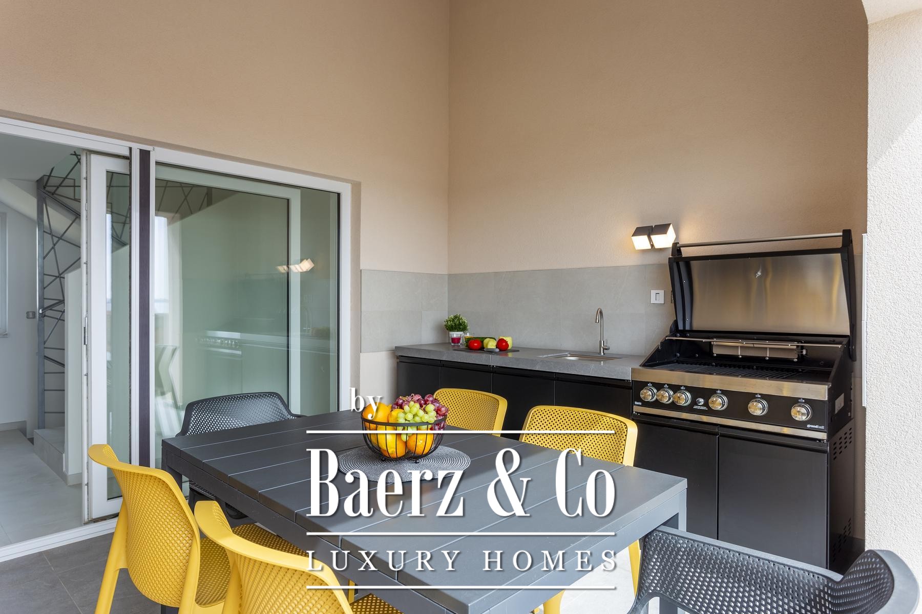 Spanning four thoughtfully arranged levels, the house opens with an expansive ground-floor living area, seamlessly connecting kitchen, dining, and lounge spaces. Each level maintains a natural flow, from the terrace-linked bedrooms on the first floor to the panoramic second-floor terrace with a summer kitchen. The attic completes the composition with a private en-suite bedroom. Throughout, four bedrooms and four bathrooms allow for versatile family life or guest accommodation.