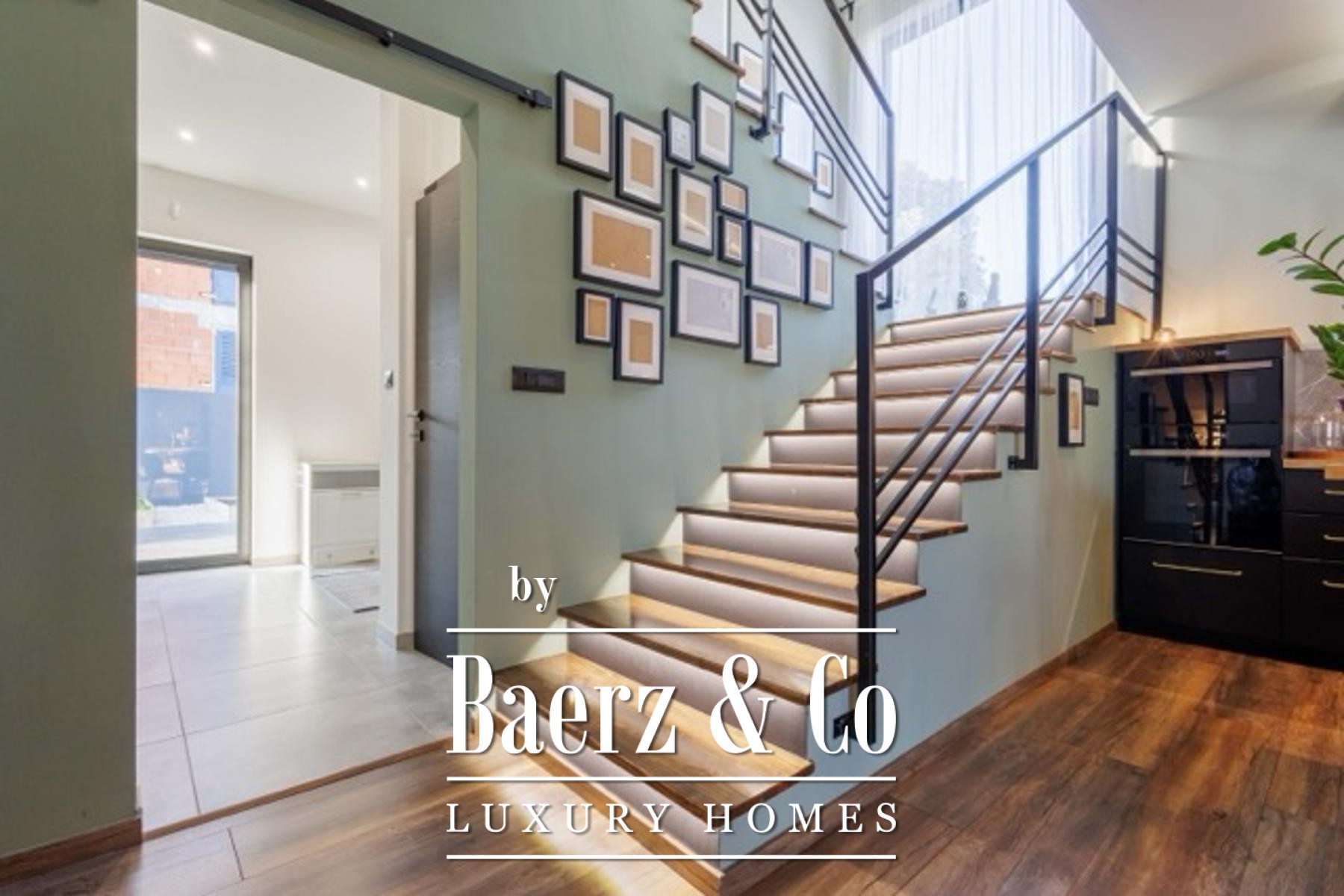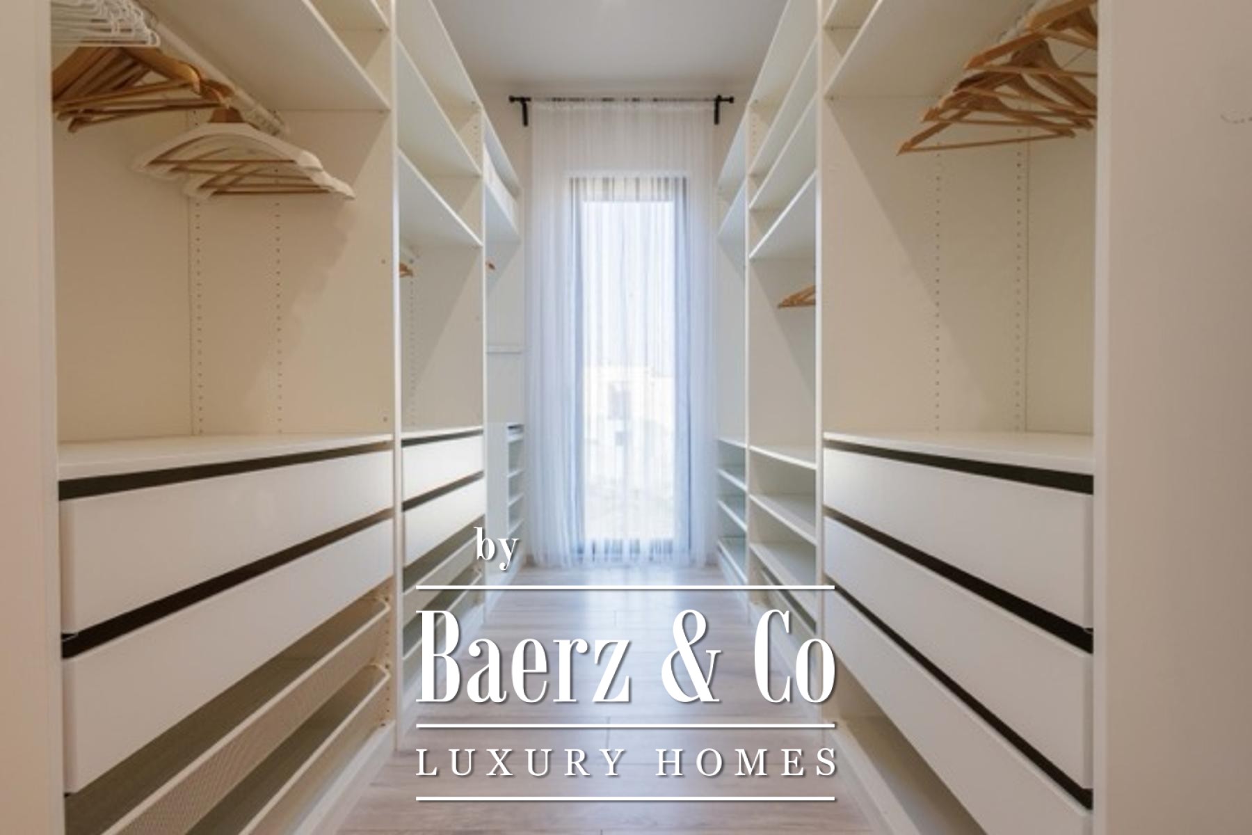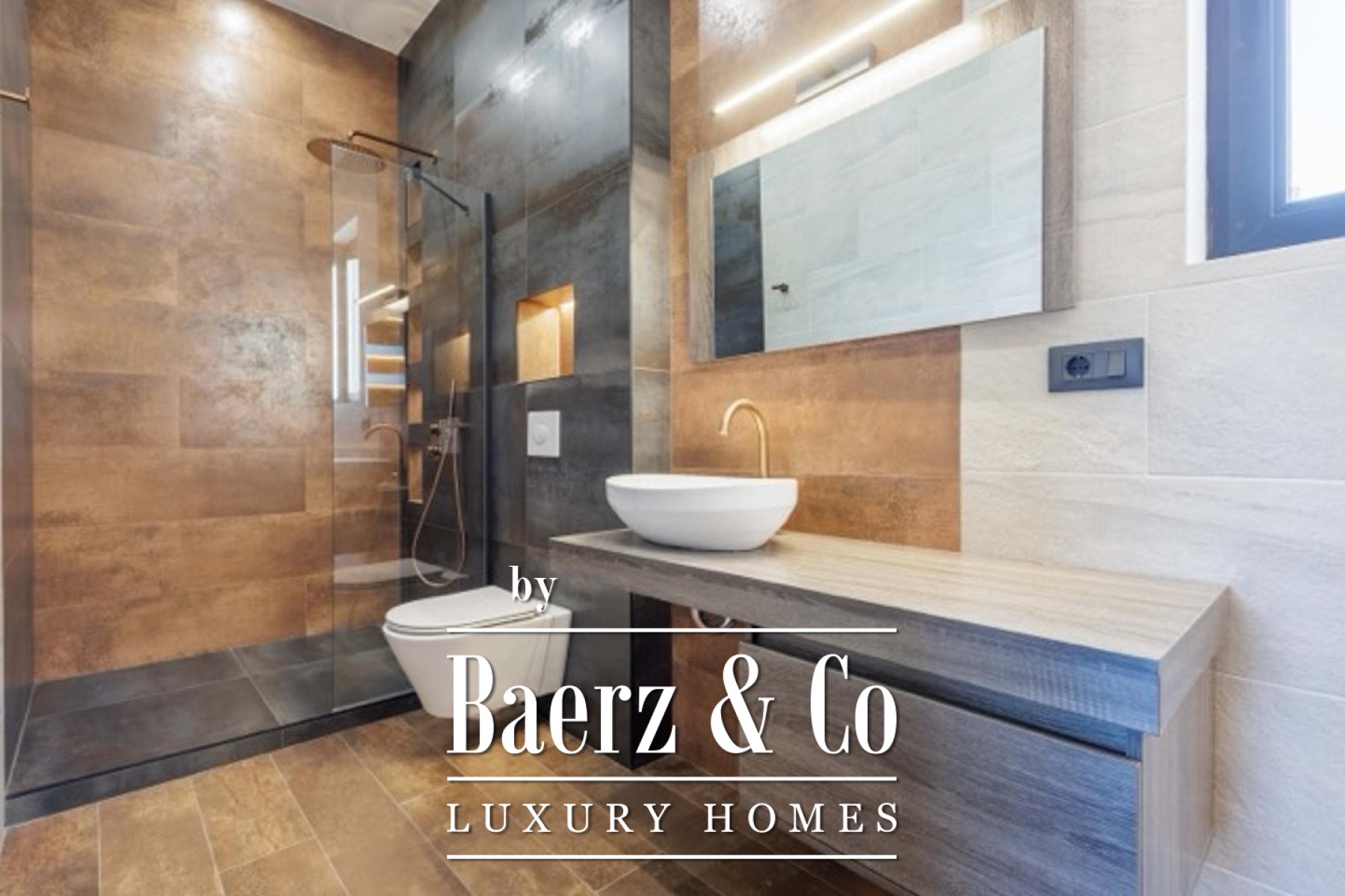 Upstairs, two bedrooms promote relaxation. The principal suite, with its covered terrace and open-plan bathroom, embraces greenery and natural light. Each room is appointed with its own air conditioner and underfloor heating powered by a heat pump. Outdoors, a large terrace and built-in barbecue create settings for private gatherings, while mature vegetation ensures privacy. Four-vehicle parking and video surveillance complement this villa. Villa Premantura Croatia offers a rare balance of privacy, design, and comfort for those seeking a luxury villa for sale in Medulin.