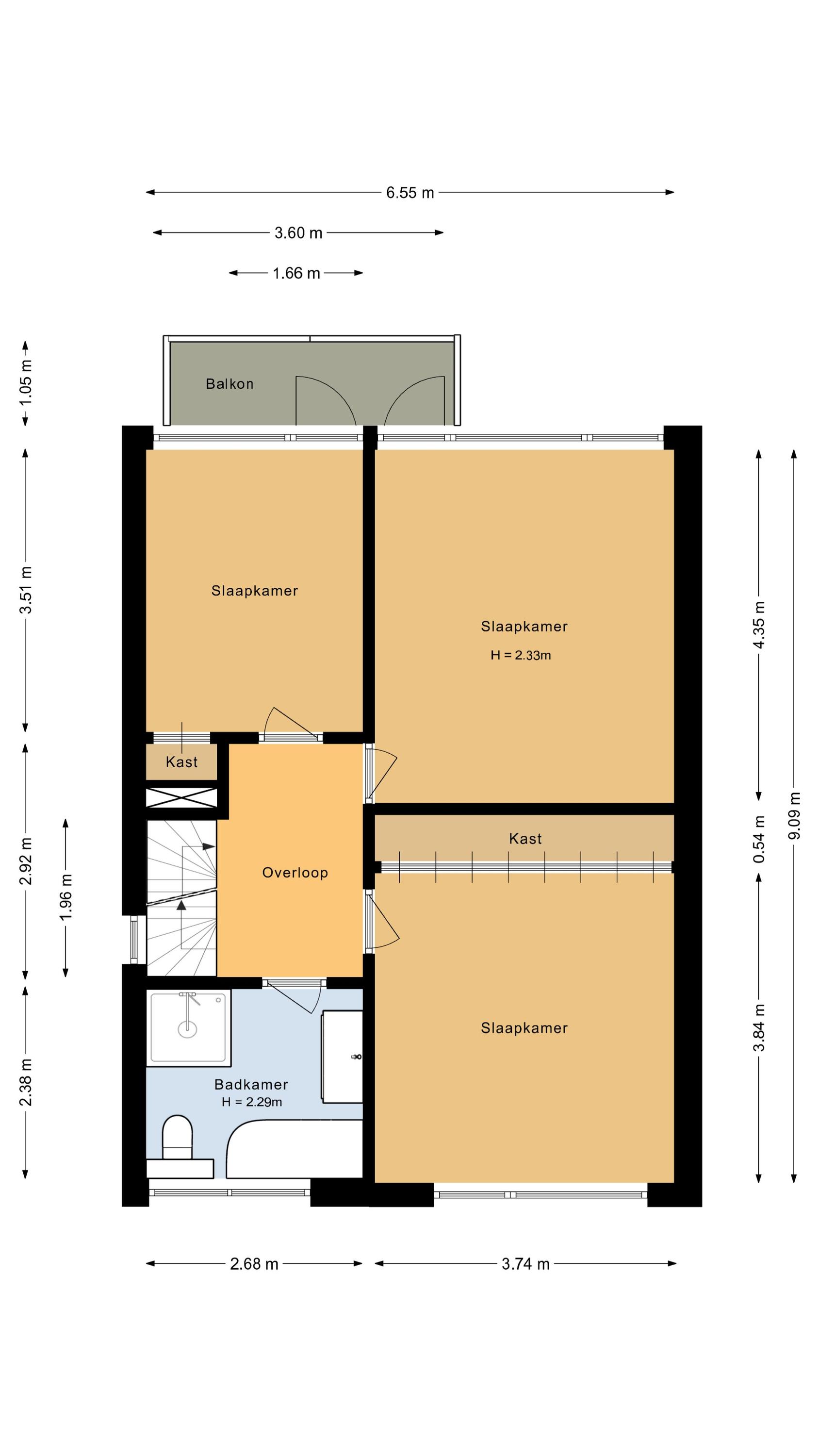 At the front are two additional well-sized bedrooms, both with access to a balcony. This not only provides extra light and ventilation but also a pleasant connection to the outdoors. One of the rooms also features a built-in wardrobe for extra storage.
