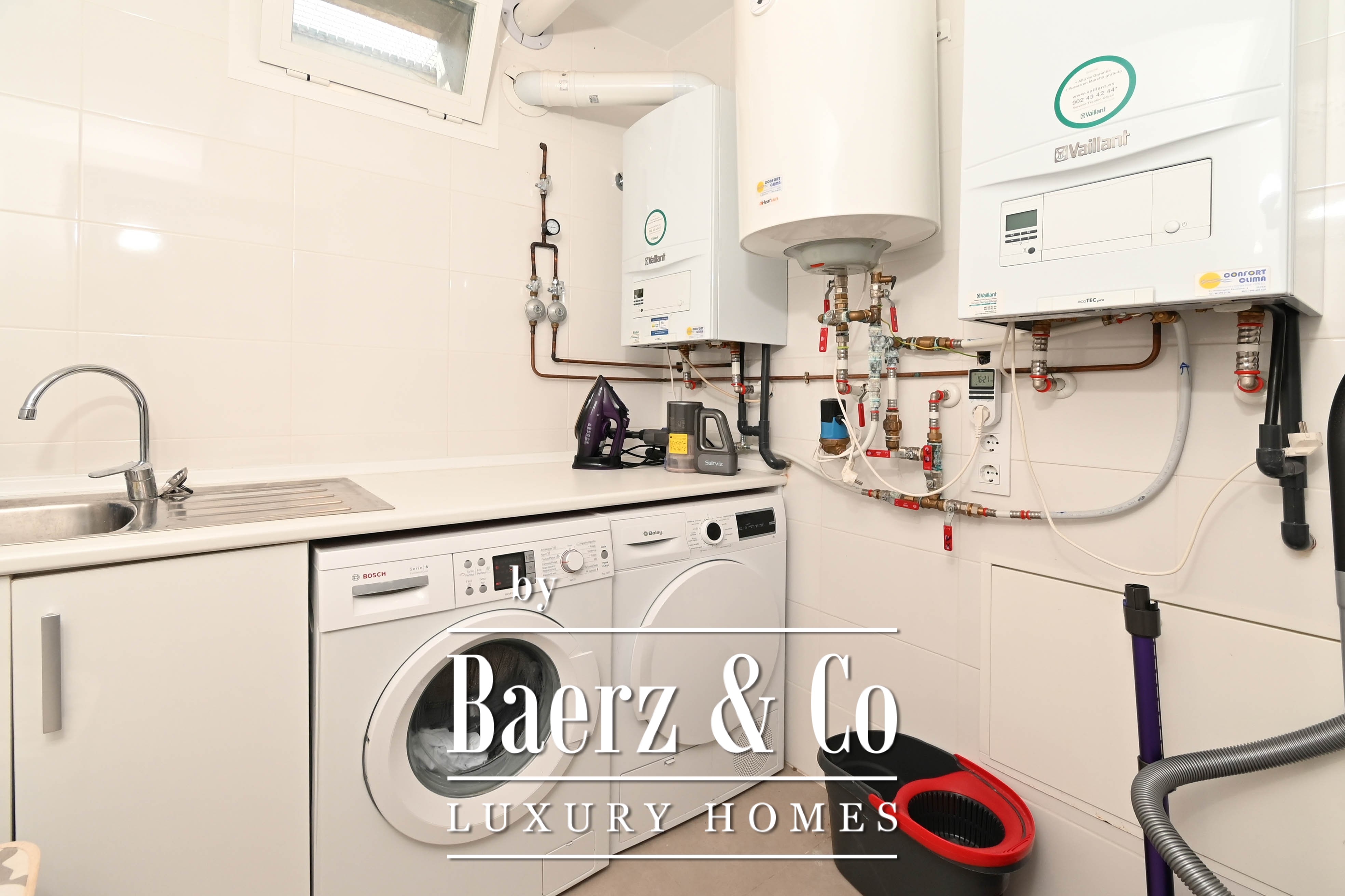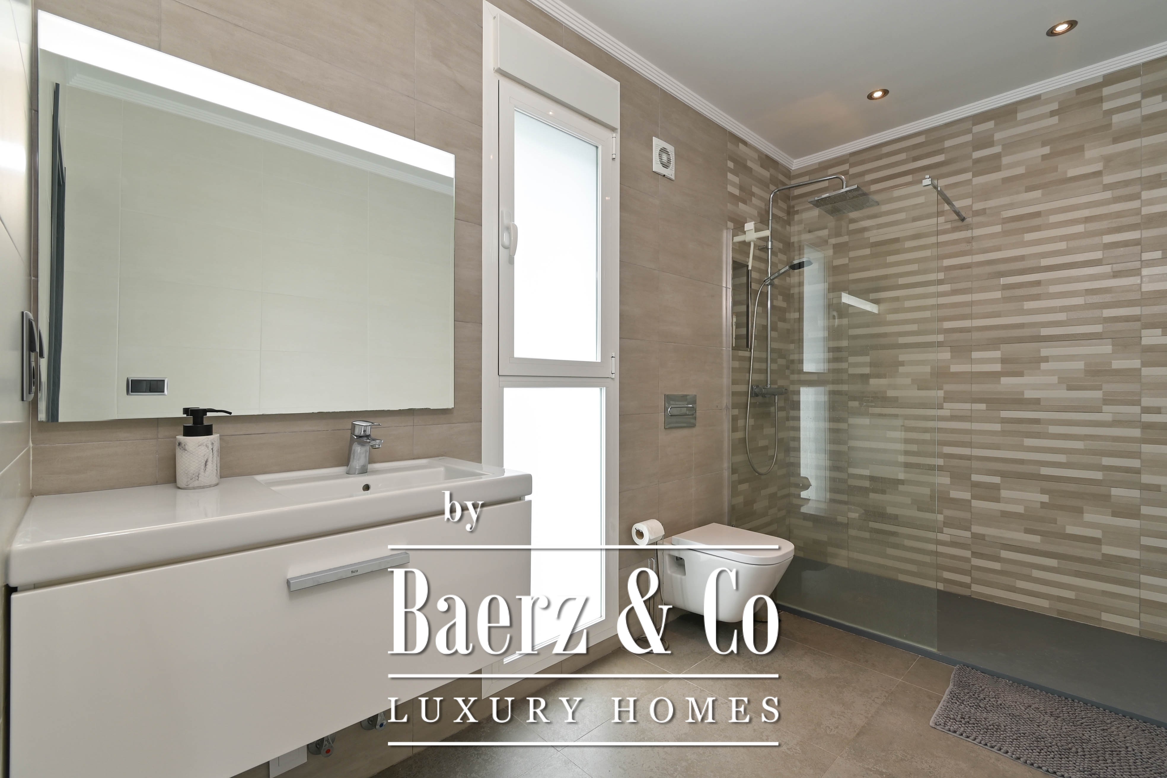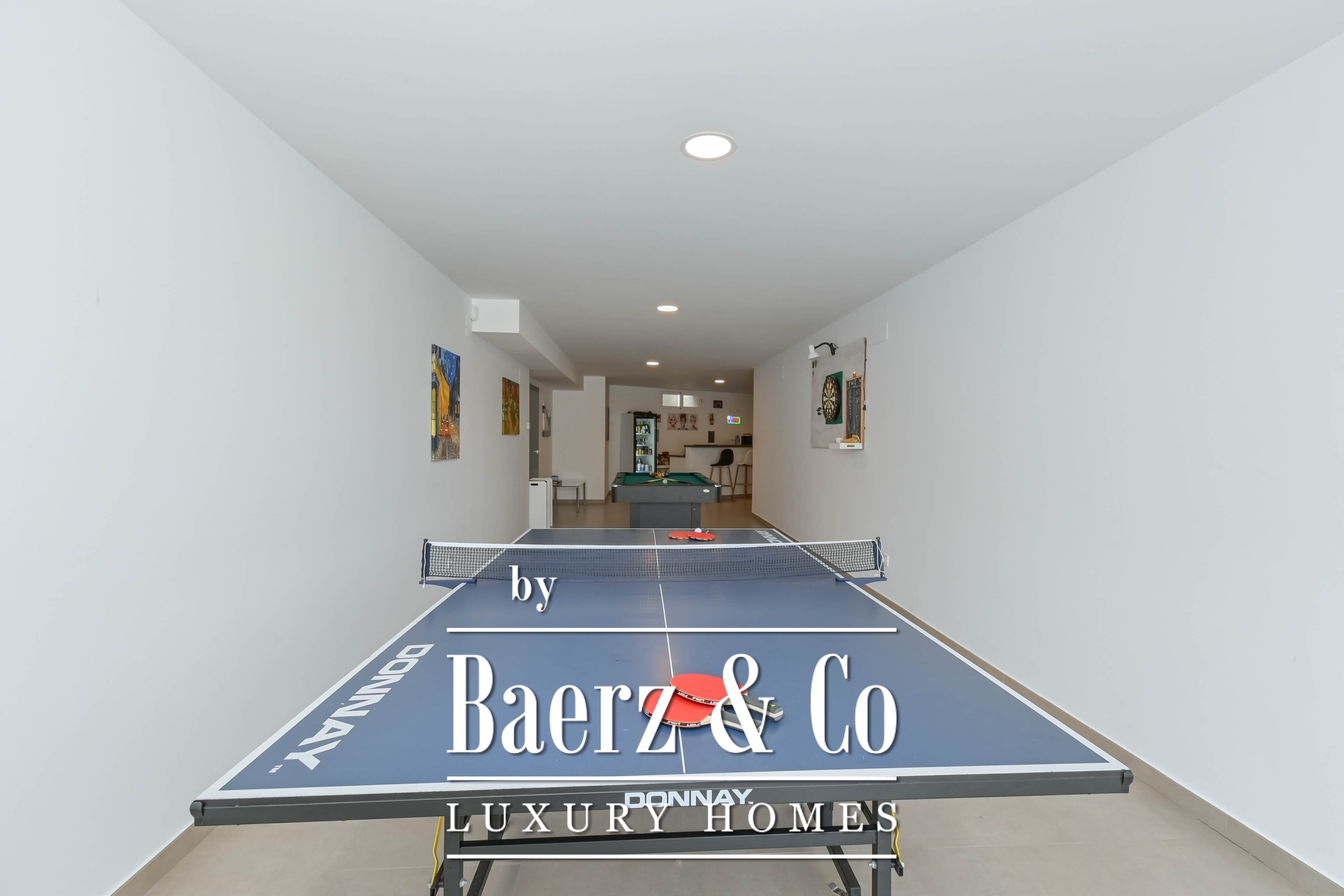Five bedrooms unfold across the home’s two levels, three bathrooms detailed with a discerning eye. The master suite enjoys the privilege of direct access to a sun terrace that hosts a private jacuzzi, a secluded spot to pause above it all. On the lower level, a bar lounge offers scope for entertaining or quiet retreat, with flexibility for a fitness area if desired. Thoughtful utility continues in the garage with secure storage.