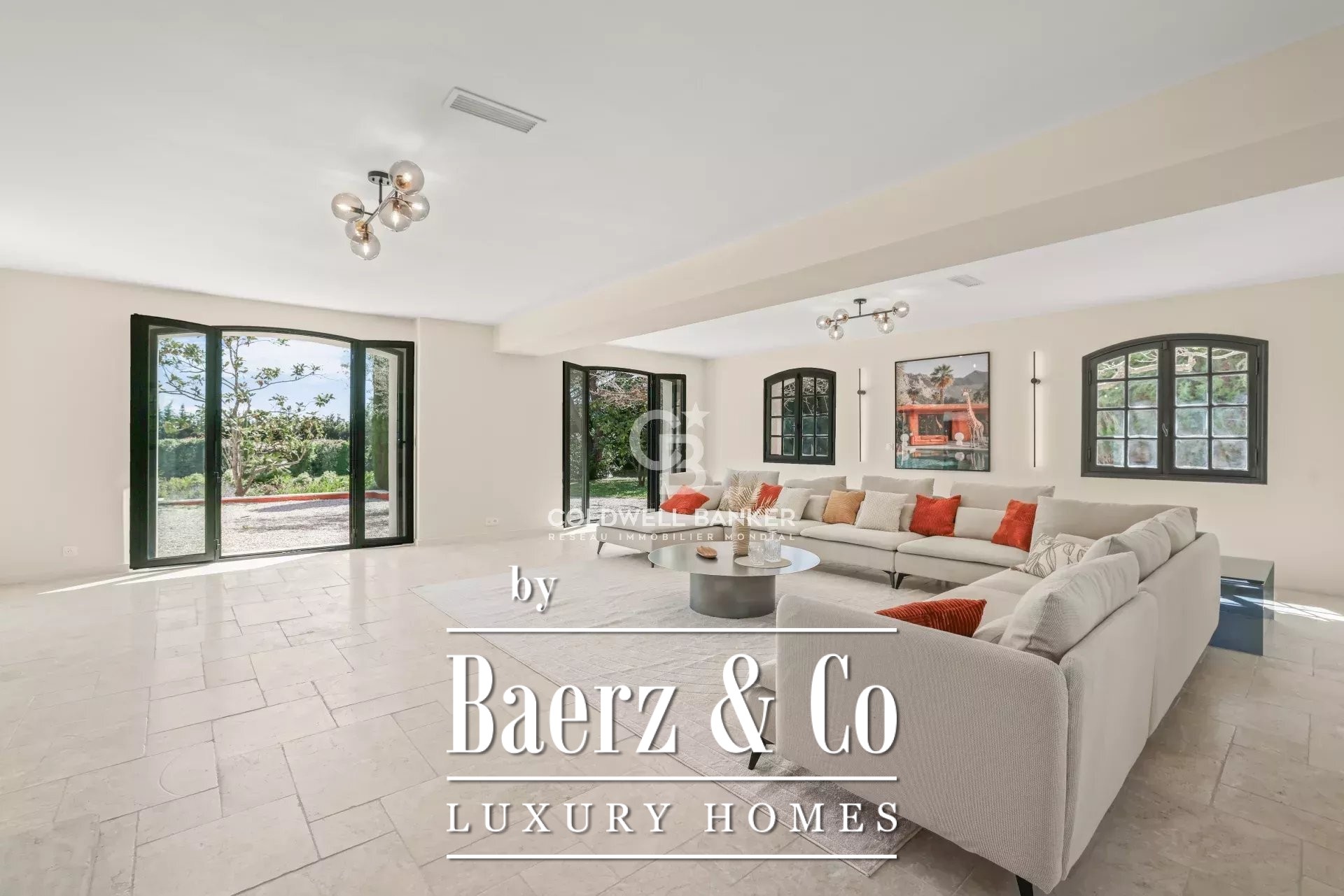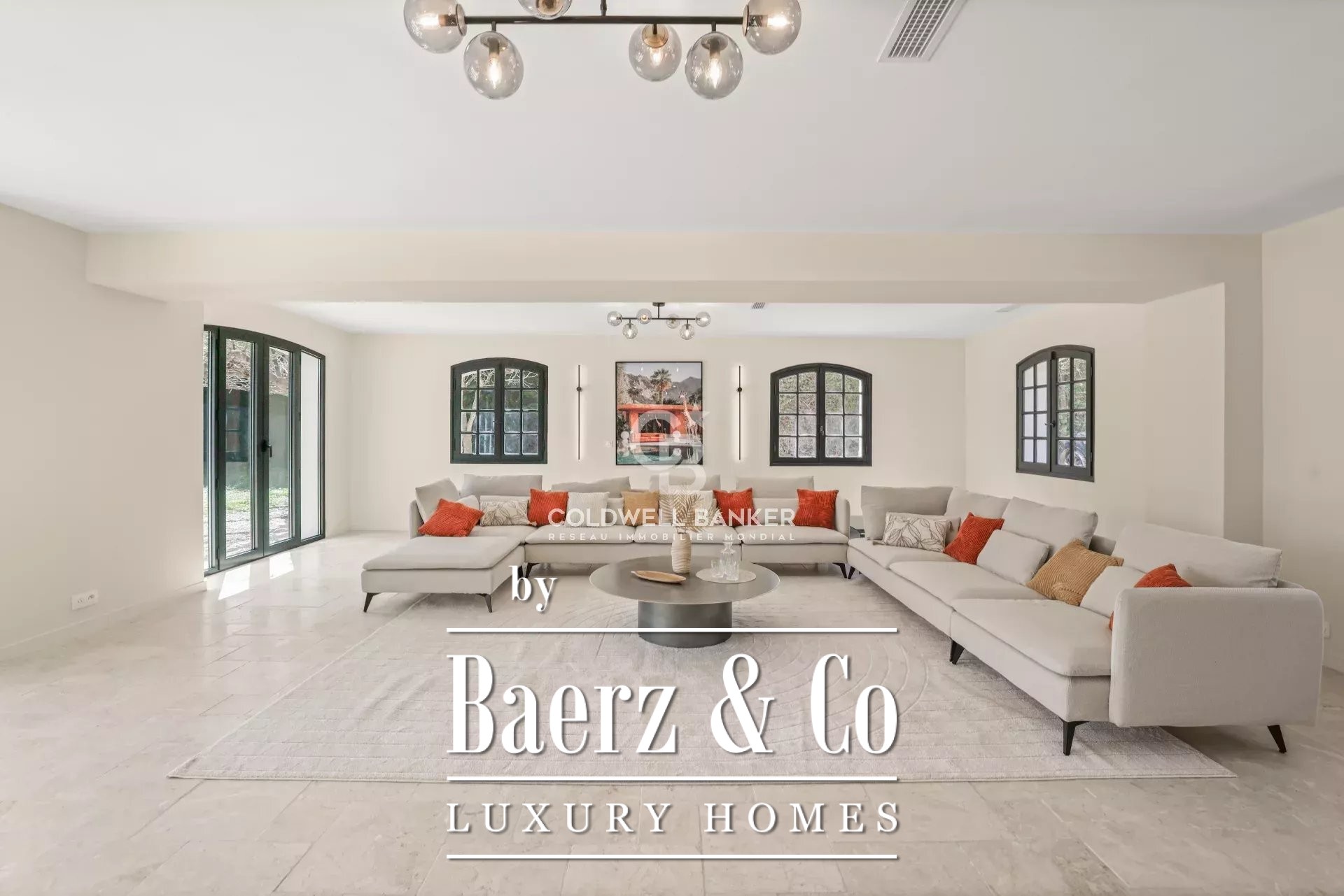 In a very sought after area, quiet and close to international schools, superb Tuscan property of about 400 m2 located on a landscaped plot of 5545m2 with swimming pool. Offering superb volumes, it consists on the ground floor of an entrance hall, a living room with fireplace, a dining room, a fully equipped kitchen, and two bedrooms en suite. On the first floor, a bedroom en