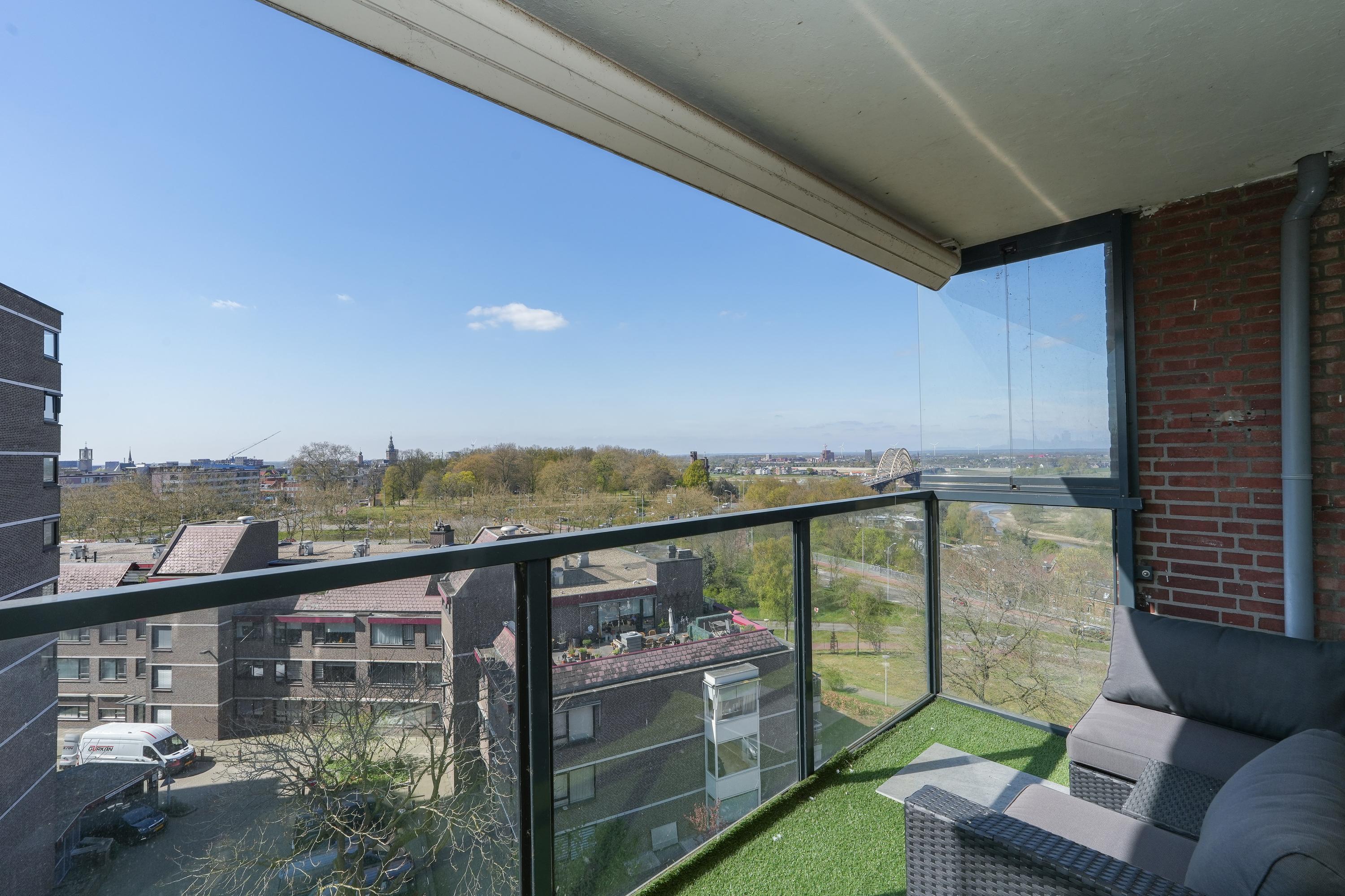With sweeping views over the River Waal, the Ooijpolder and the skyline of Nijmegen, this exceptional apartment offers a living experience that is rarely found. This bright residence is located on the sixth floor of a well-maintained building with a total of nine storeys, on the edge of the highly sought-after Nijmegen-Oost district. The combination of generous space, spectacular views and an excellent location creates an extraordinary living experience, further enhanced by the comfort of a central yet pleasant setting.