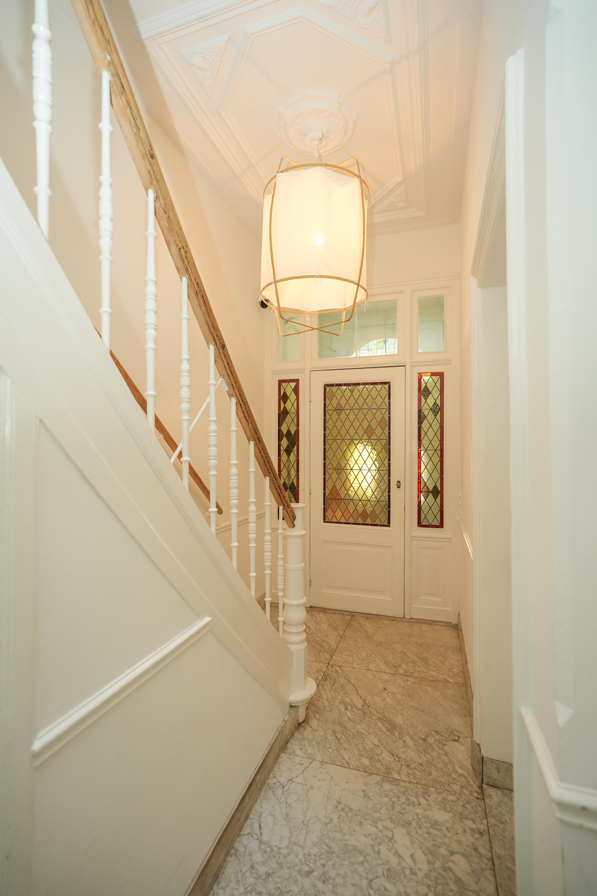 This beautiful and luxurious townhouse is a property that really makes an impression. The property was completely renovated in 2020, preserving and restoring many authentic details such as high ceilings with ornate mouldings, en-suite doors and stained glass. This house exudes atmosphere and elegance, while at the same time offering modern living comfort. With no fewer than five spacious bedrooms, the possibility for a sixth bedroom, two bathrooms, three toilets and a spacious basement, this house offers all the space a family could wish for. The stately double front door, the wide balcony at the front, the deep and quiet south-facing back garden and the excellent state of maintenance give this house an extra sense of grandeur and living pleasure. Thanks to its good insulation, the house has an energy label A and is energy efficient.