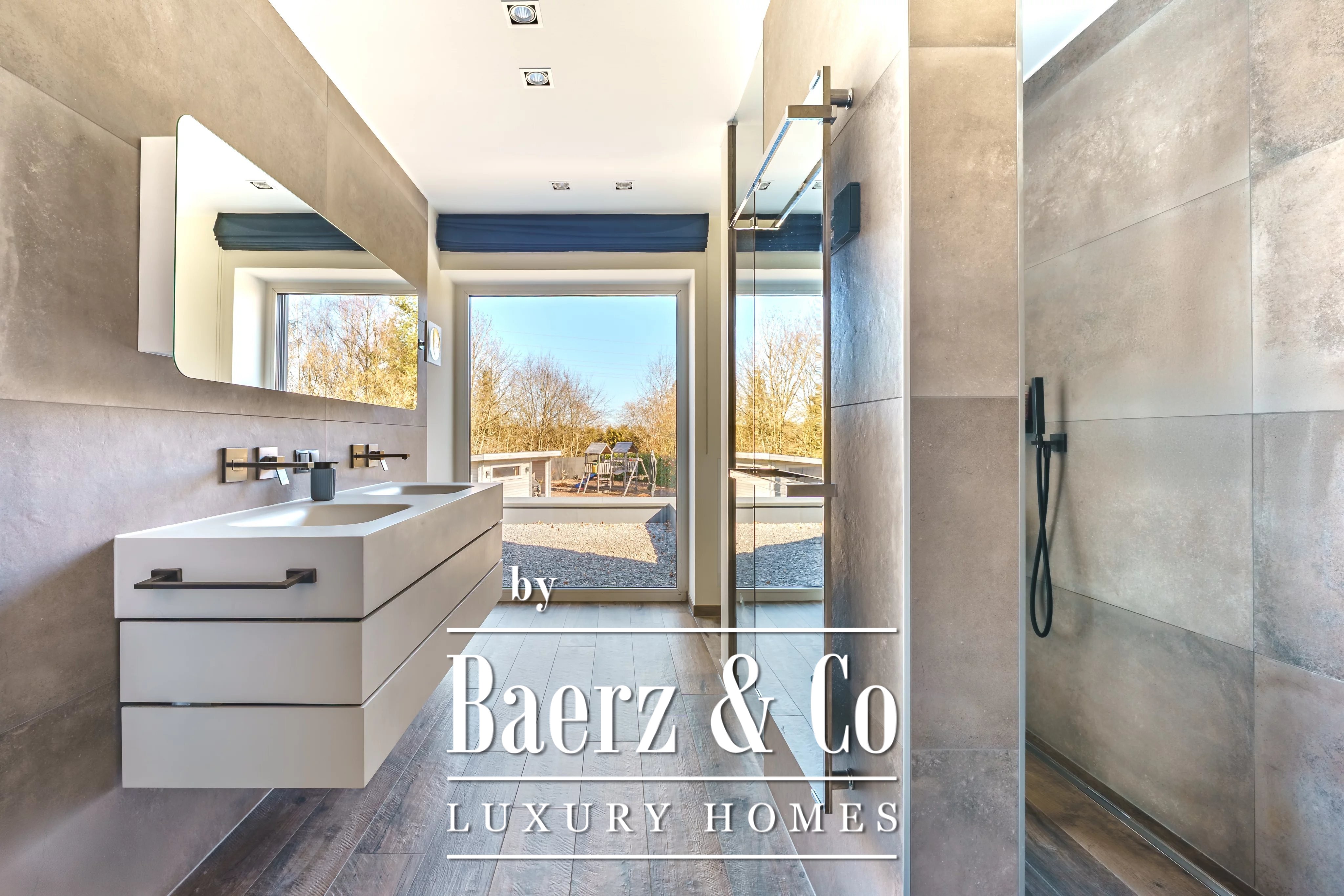 The wellness area is both distinctive and serene, featuring sauna, Jacuzzi, and shower on a covered terrace, suited for all seasons. The home’s systems are forward-thinking, with a KNX home automation system, triple-glazed windows, geothermal and photovoltaic energy, solar hot water, security, and preparation for a future lift. This luxury house for sale in Nocher-Route offers a rare balance of contemporary technology and pastoral calm, set against far-reaching country views.