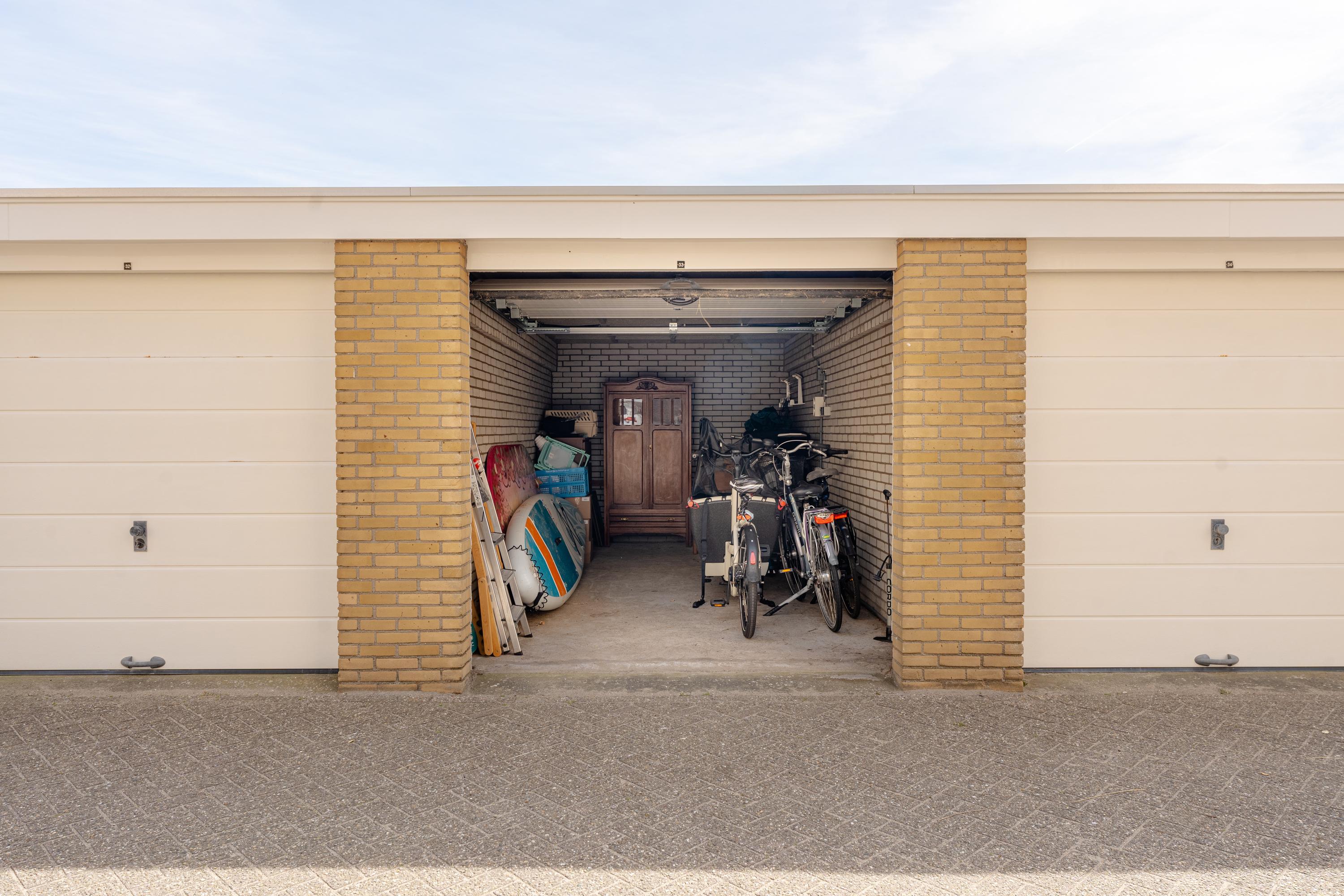 On the ground floor, there is a private storage room and a spacious garage, suitable for a car, cargo bike, or even surfboards. From the parking area, you can easily drive into the garage.