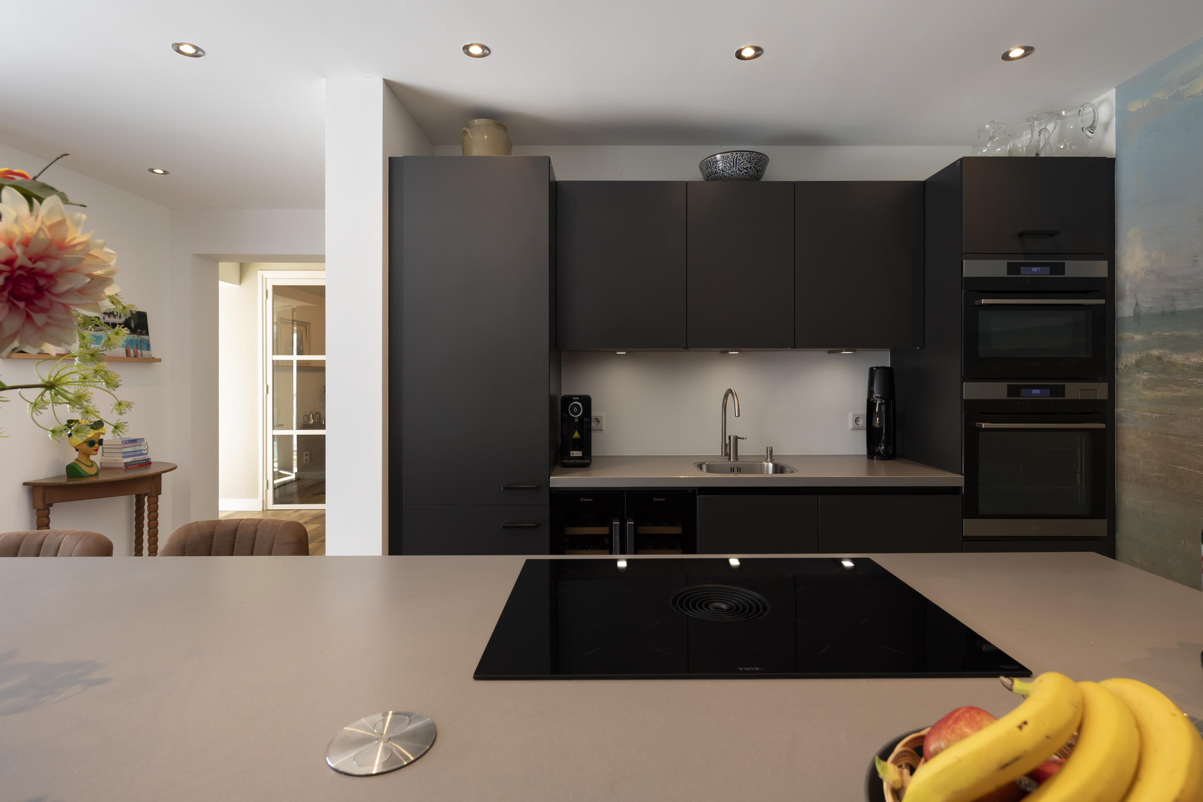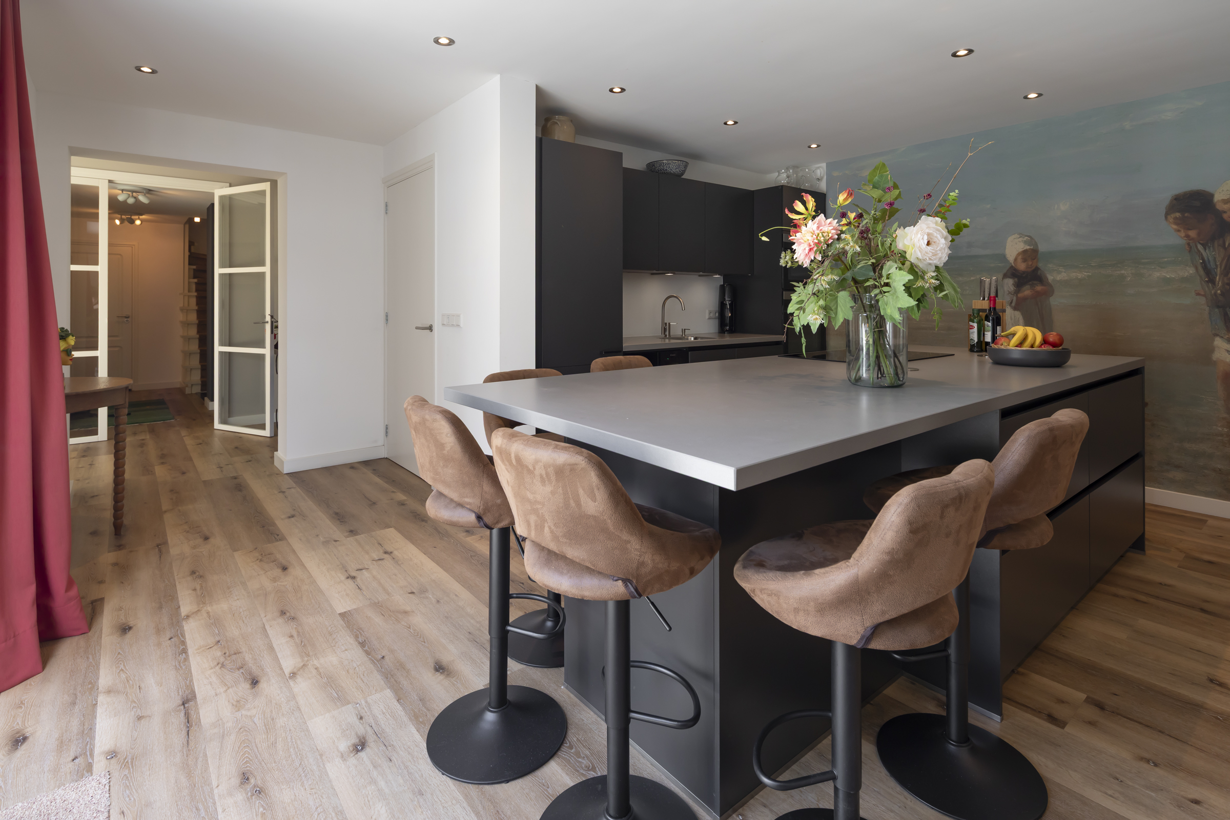 Renovated in 2021, the ground floor flows from a light filled living room with a glass front and garden views, into a spacious kitchen with a striking island, composite surfaces, and high quality appliances. Multiple garden doors open to the southwest facing landscaped garden, framed by an inviting veranda for year round enjoyment. A separate ground floor wing features a bedroom and bathroom suite with direct garden connection, while upstairs, three further bedrooms and a second bathroom enhance flexibility.