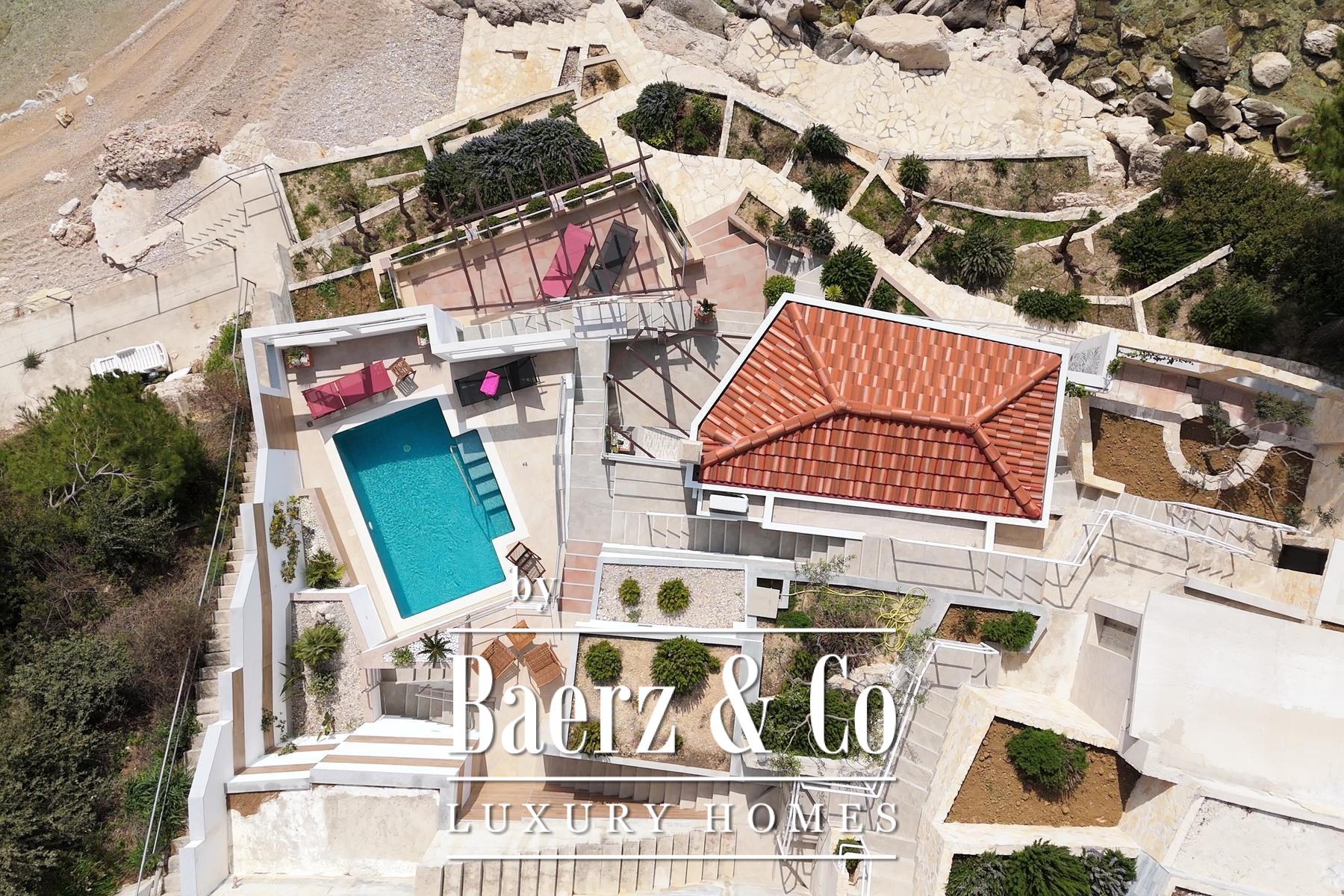 Seafront villa Omiš sets a new standard for Adriatic coastal living, occupying a rare first-row position in Stanići with direct access to the shoreline. This distinguished property is just thirty minutes from Split, yet feels entirely secluded, offering sweeping views over open sea from a tranquil vantage point.