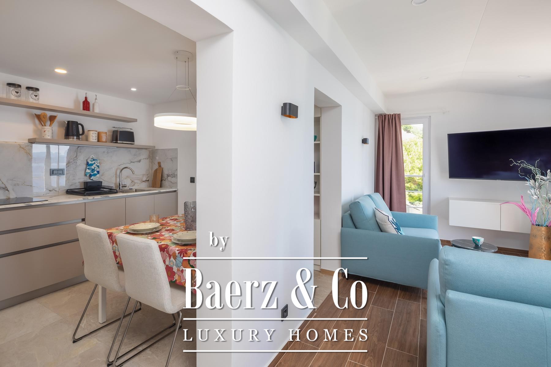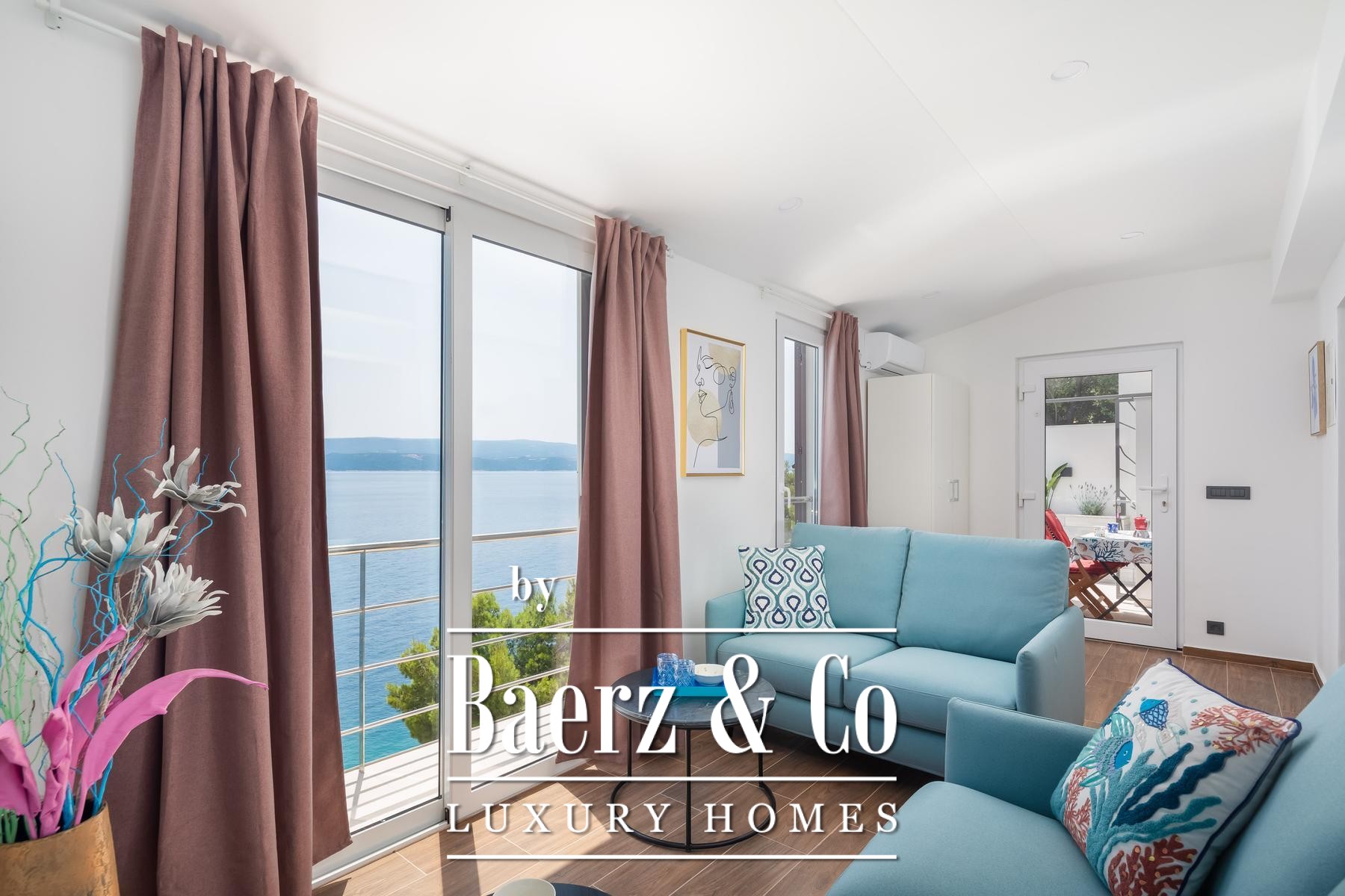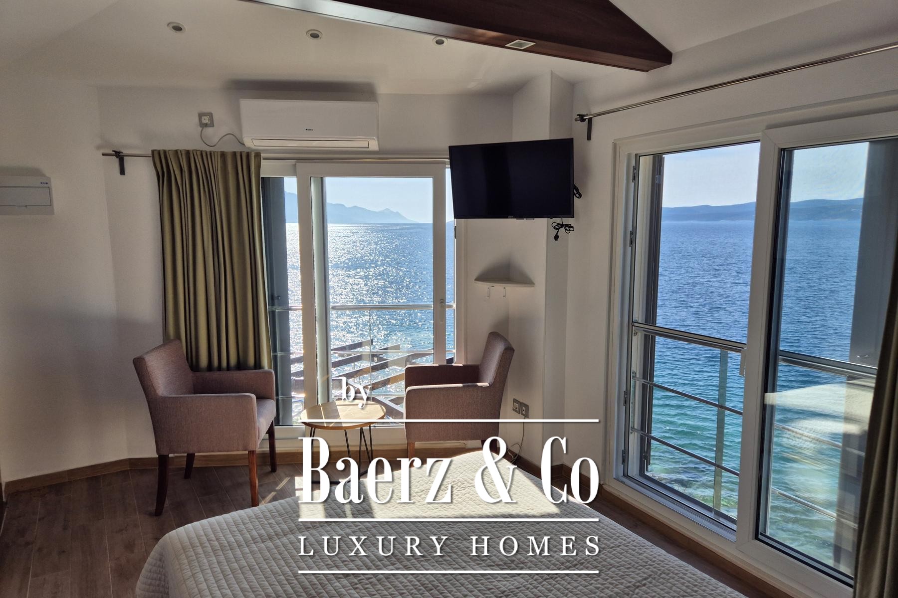Sited on a 650 m² plot, the estate comprises three distinct units with a total of five bedrooms and five bathrooms, designed for flexibility and privacy. The Beach House presents a bright, compact retreat directly by the water, while the lower duplex apartment, already renovated and fully rental-ready, features a fluid connection between living, dining, and the sea-view terrace—its current rental performance reflects a guest rating of 10.0 and seasonal net income of approximately €40,000. The upper duplex, with two terraces, offers an inviting canvas for renovation, with architectural concepts available.