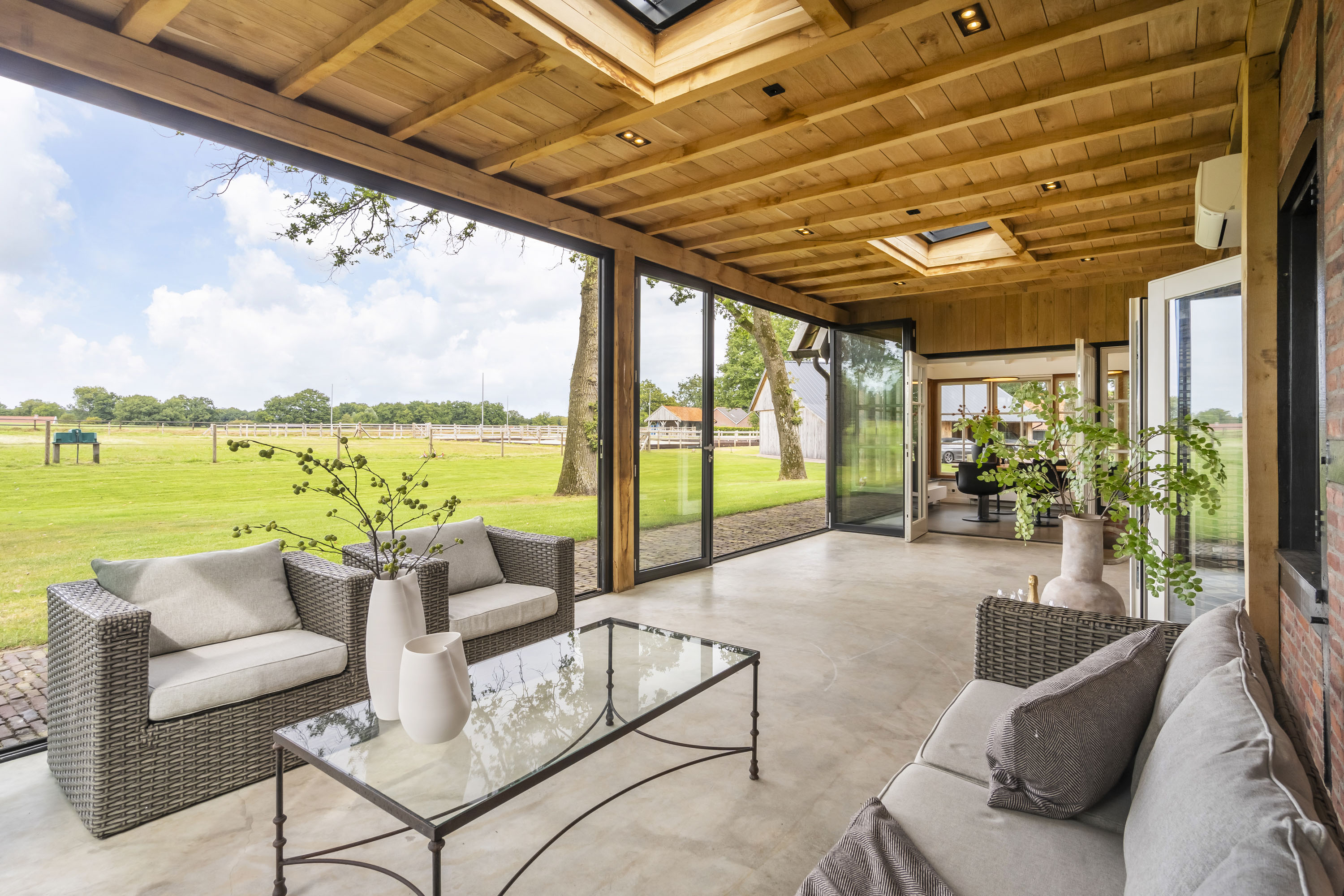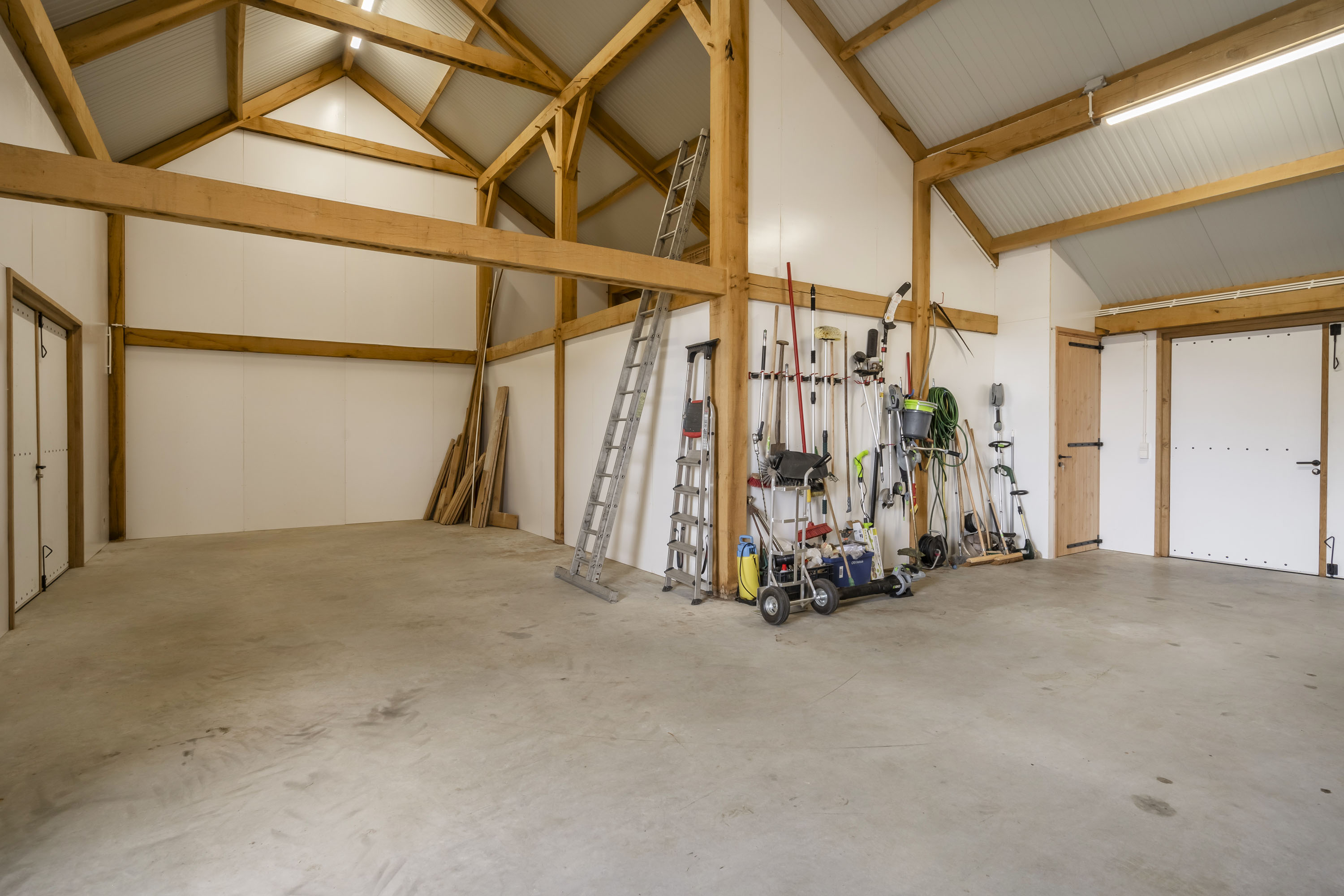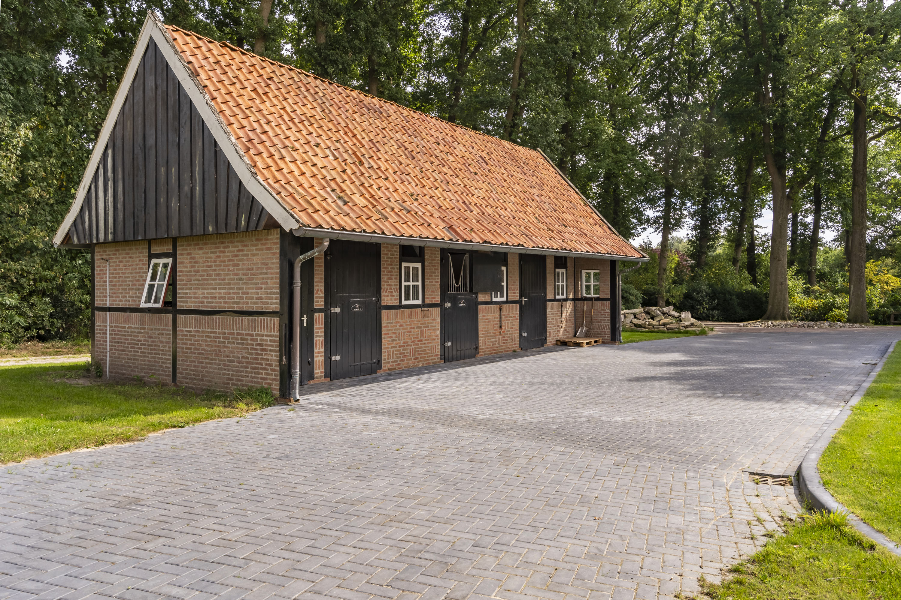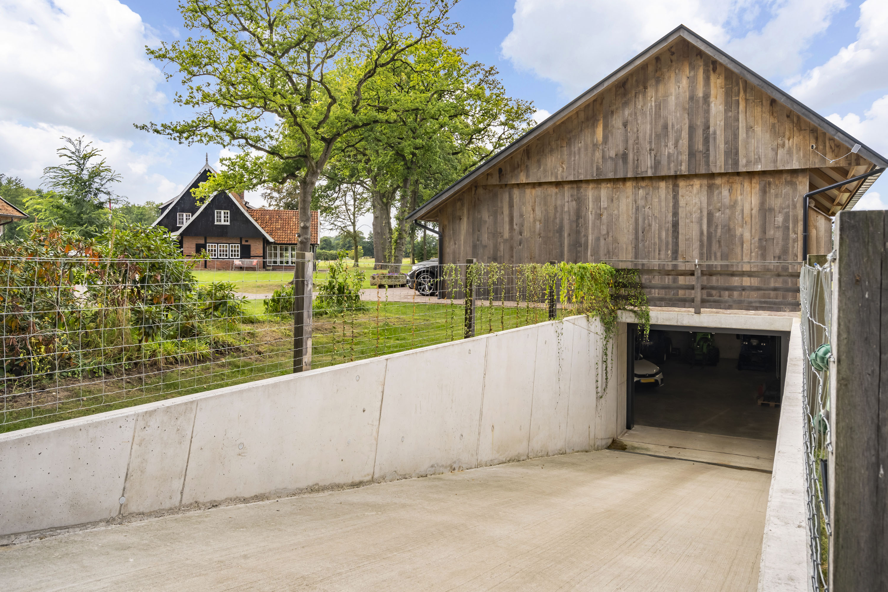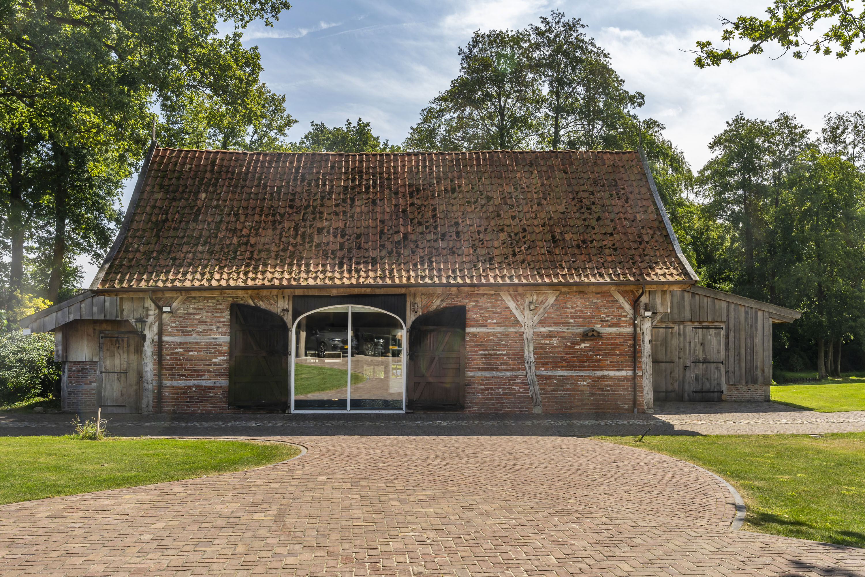 A few years ago, a new multifunctional barn was constructed on the property. Built from oak beams and walls, its design blends seamlessly into the classical Twente landscape while discreetly housing modern, high-end amenities. Fully basemented and equipped with a heated ramp, it is ideal for storing both small and large equipment. The building is fully insulated and suitable for a wide range of uses — from workshop or vintage car storage to a studio, office, or gentleman’s lounge.