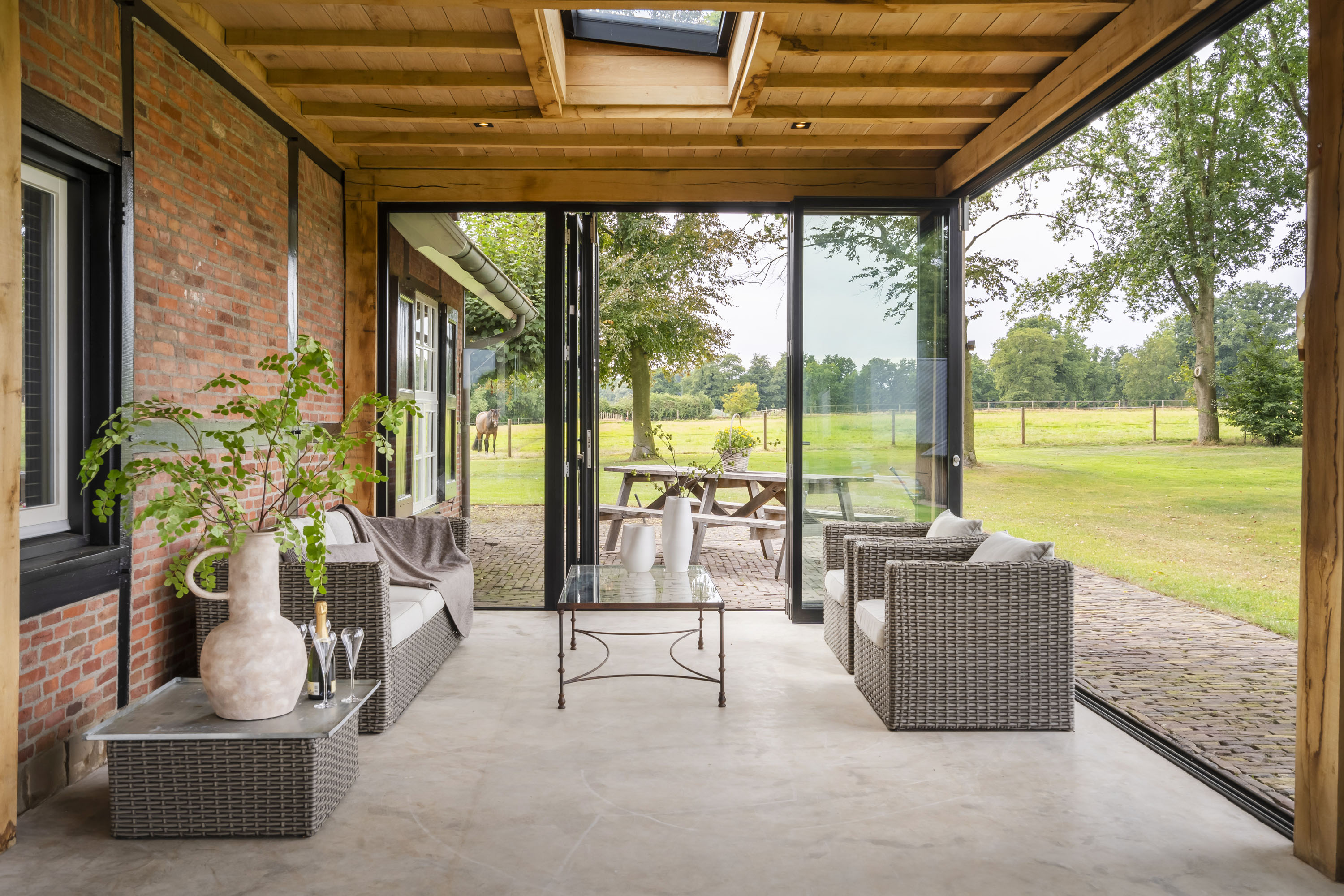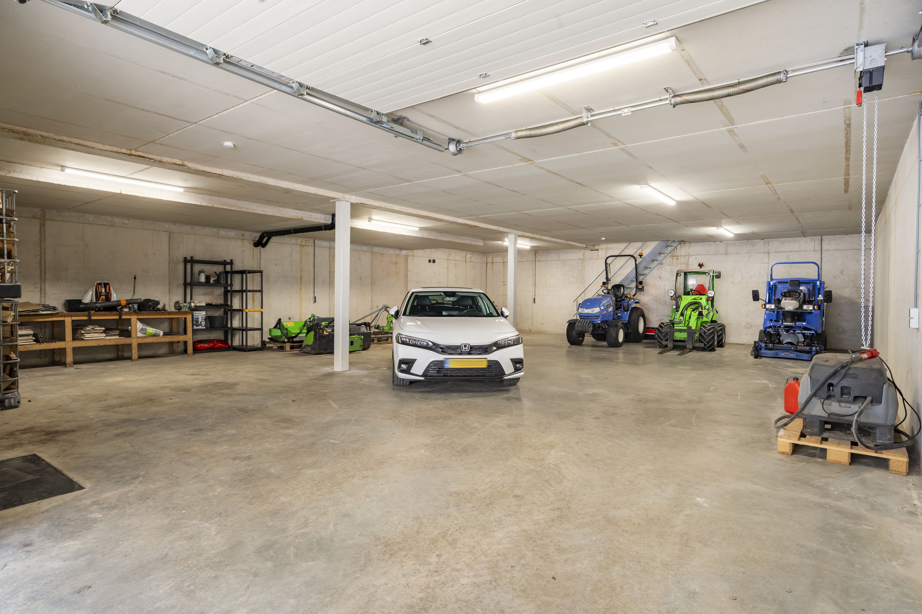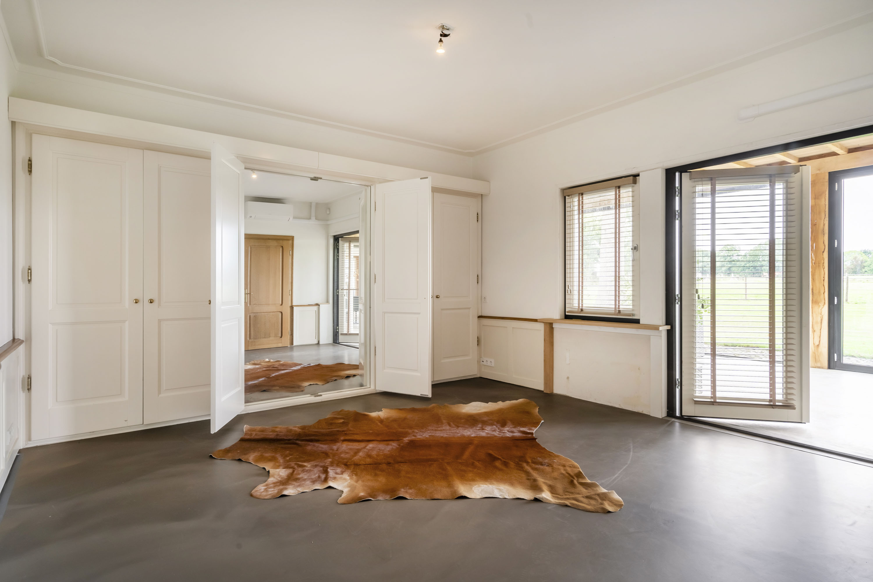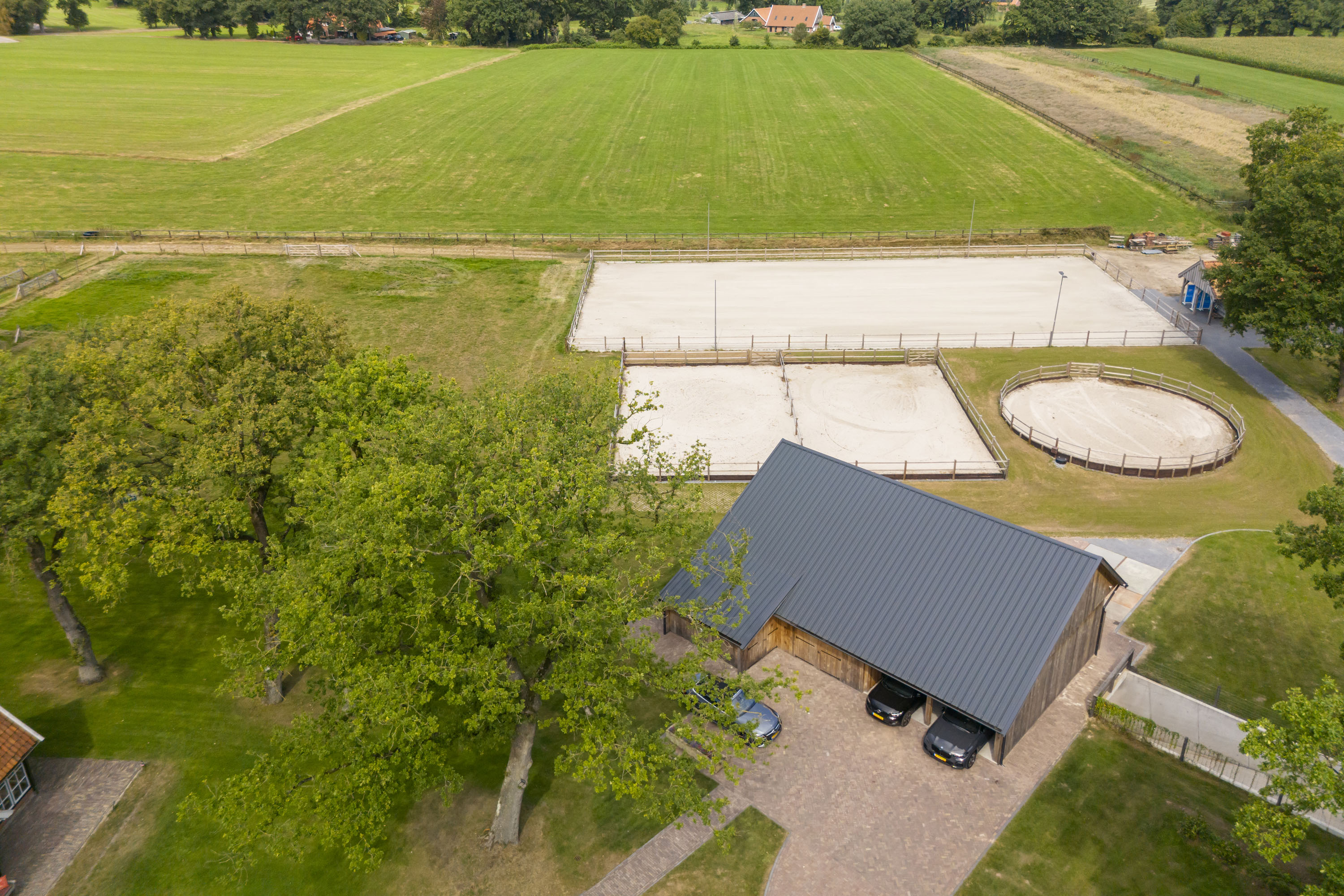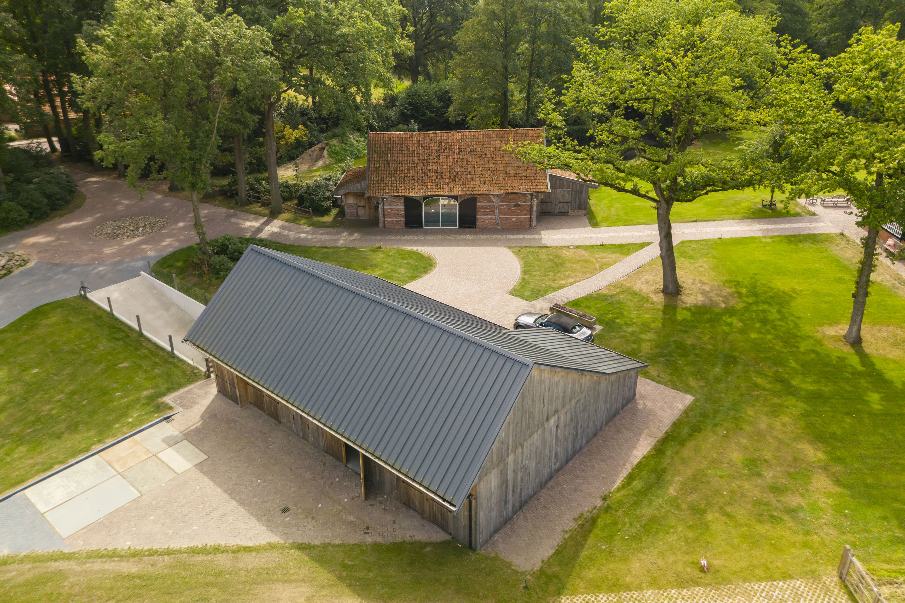 A few years ago, a new multifunctional barn was constructed on the property. Built from oak beams and walls, its design blends seamlessly into the classical Twente landscape while discreetly housing modern, high-end amenities. Fully basemented and equipped with a heated ramp, it is ideal for storing both small and large equipment. The building is fully insulated and suitable for a wide range of uses — from workshop or vintage car storage to a studio, office, or gentleman’s lounge.