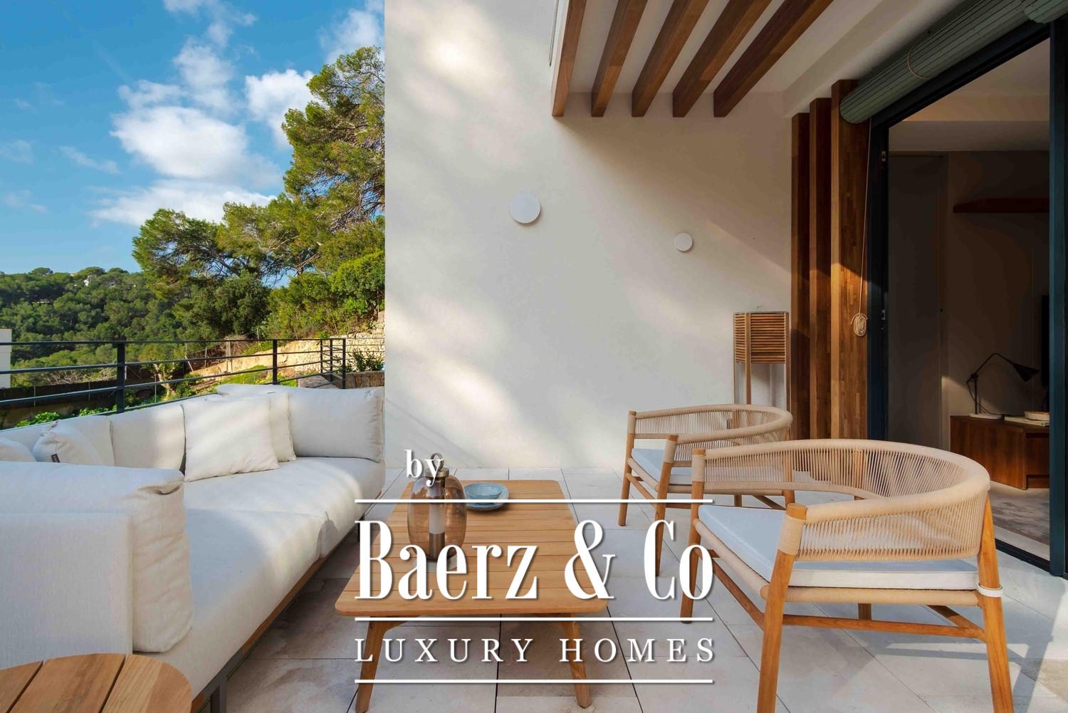 Apartment Palma De Mallorca invites a quiet pace of Mediterranean living in the hills of Cala Major. This ground-floor residence is shaped by seamless transitions between a refined modern interior and expansive private outdoor spaces. The open-plan living and dining area is suffused with natural light through floor-to-ceiling windows, inviting the outside in. Here, 97 m² of thoughtfully designed space include two well-proportioned bedrooms and two bathrooms, highlighted by bespoke Mallorcan carpentry and Italian furnishings.