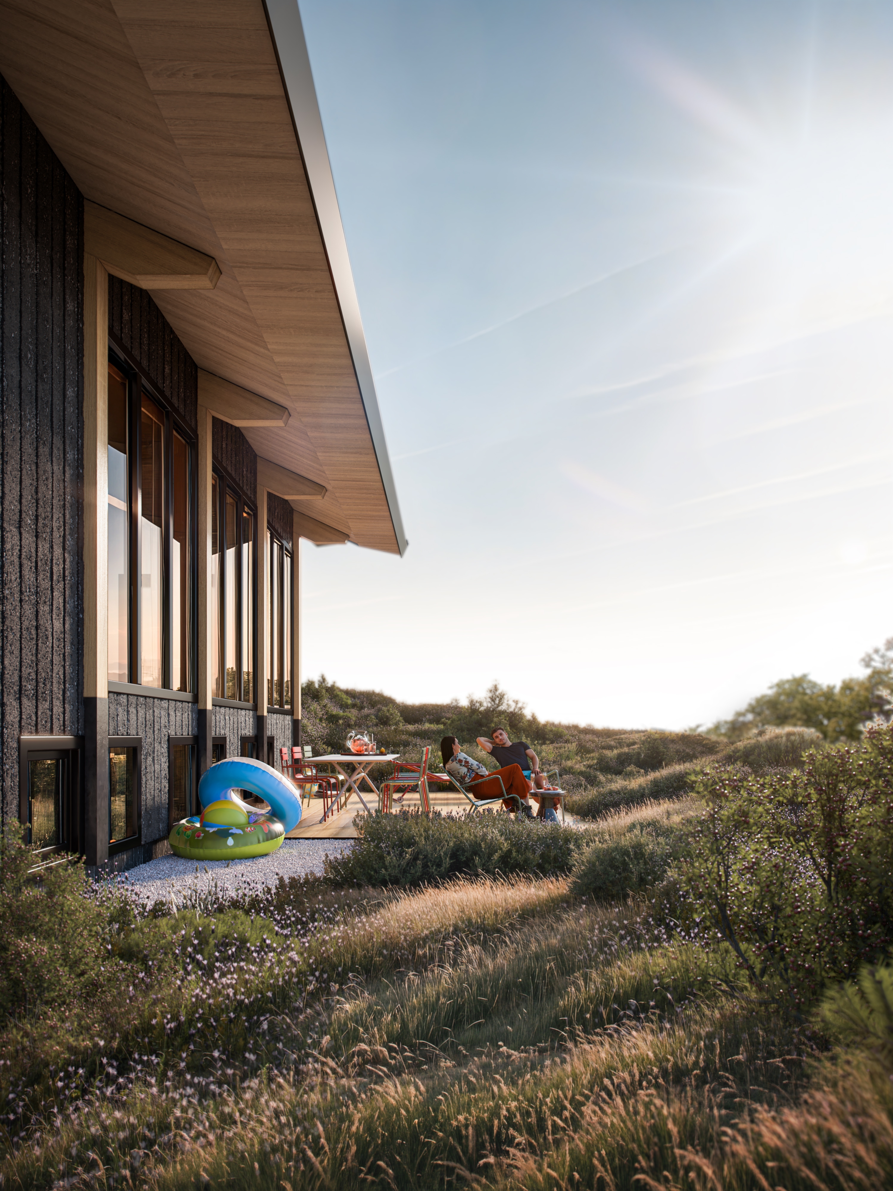 The homes vary in size and design, with prices starting from €490,000 for comfortable 4-person homes up to around €1,240,800 for the extra luxurious villas accommodating up to 12 guests. Each home is carefully finished, featuring high-quality materials, spacious terraces, and beautiful dune views.
