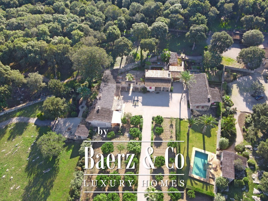 Estate for sale in Pollença presents an extraordinary retreat across 172,483 m² of tranquil Majorcan countryside, offering complete privacy and sweeping mountain views. The property’s main living area unfolds over 1,307 m², encompassing three independent bungalows joined by porches, terraces, and landscaped gardens. These guest houses, constructed approximately two decades ago, are meticulously maintained and connected by inviting outdoor spaces.