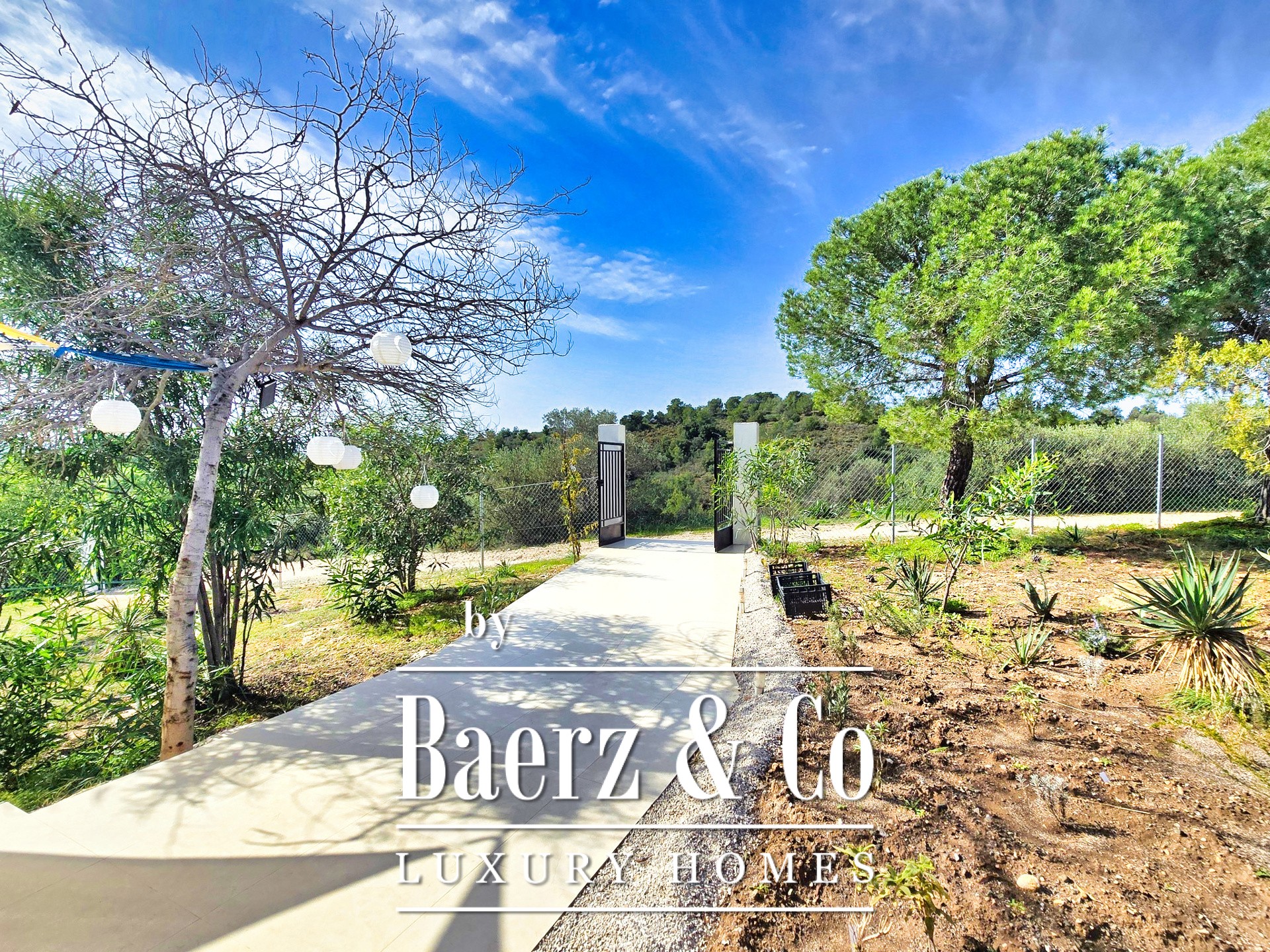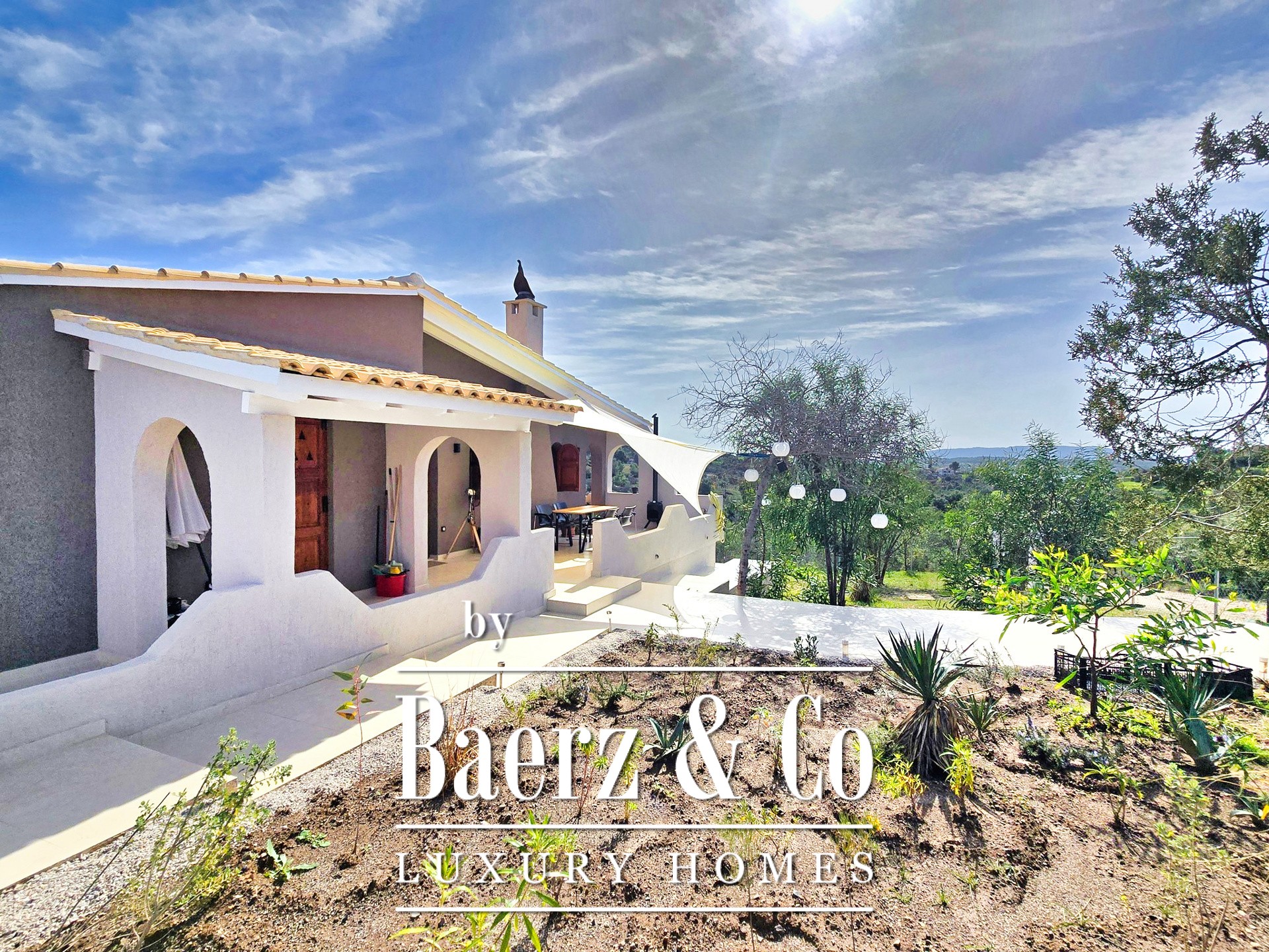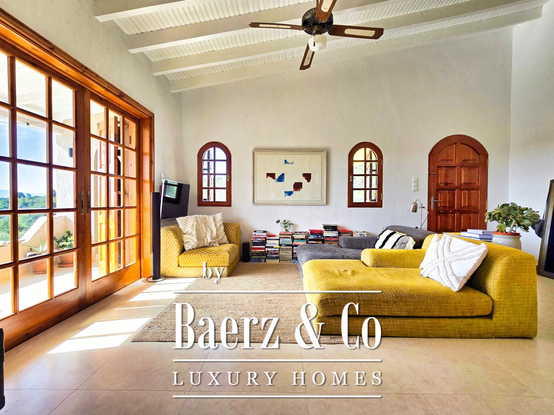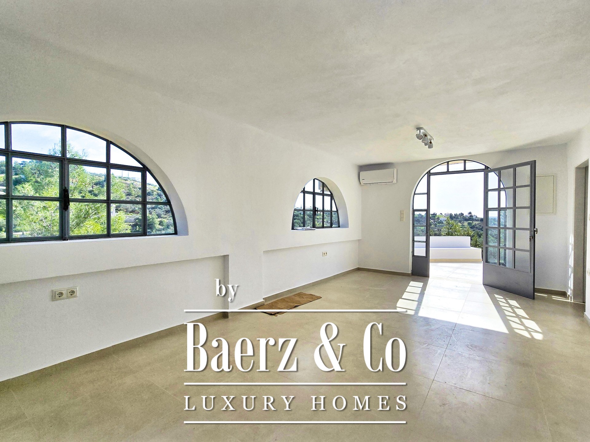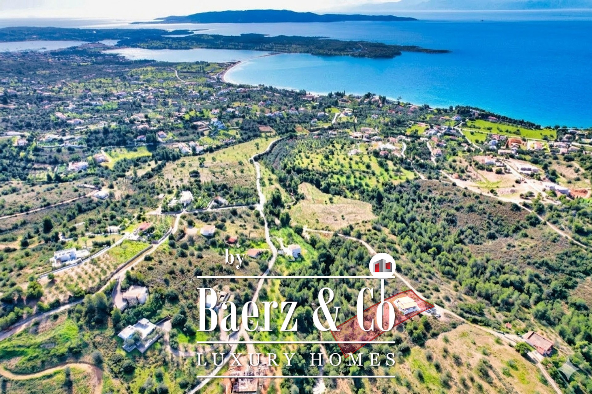 Detached house Portocheli presents a rare opportunity to experience refined living amidst natural beauty. This independent residence, with a total living area of 126 m², is set within a 2,100 m² fenced and partially landscaped plot. The house stands elevated on a quiet hillside, surrounded by elegant country homes and enriched by panoramic views of the natural landscape and the sea.