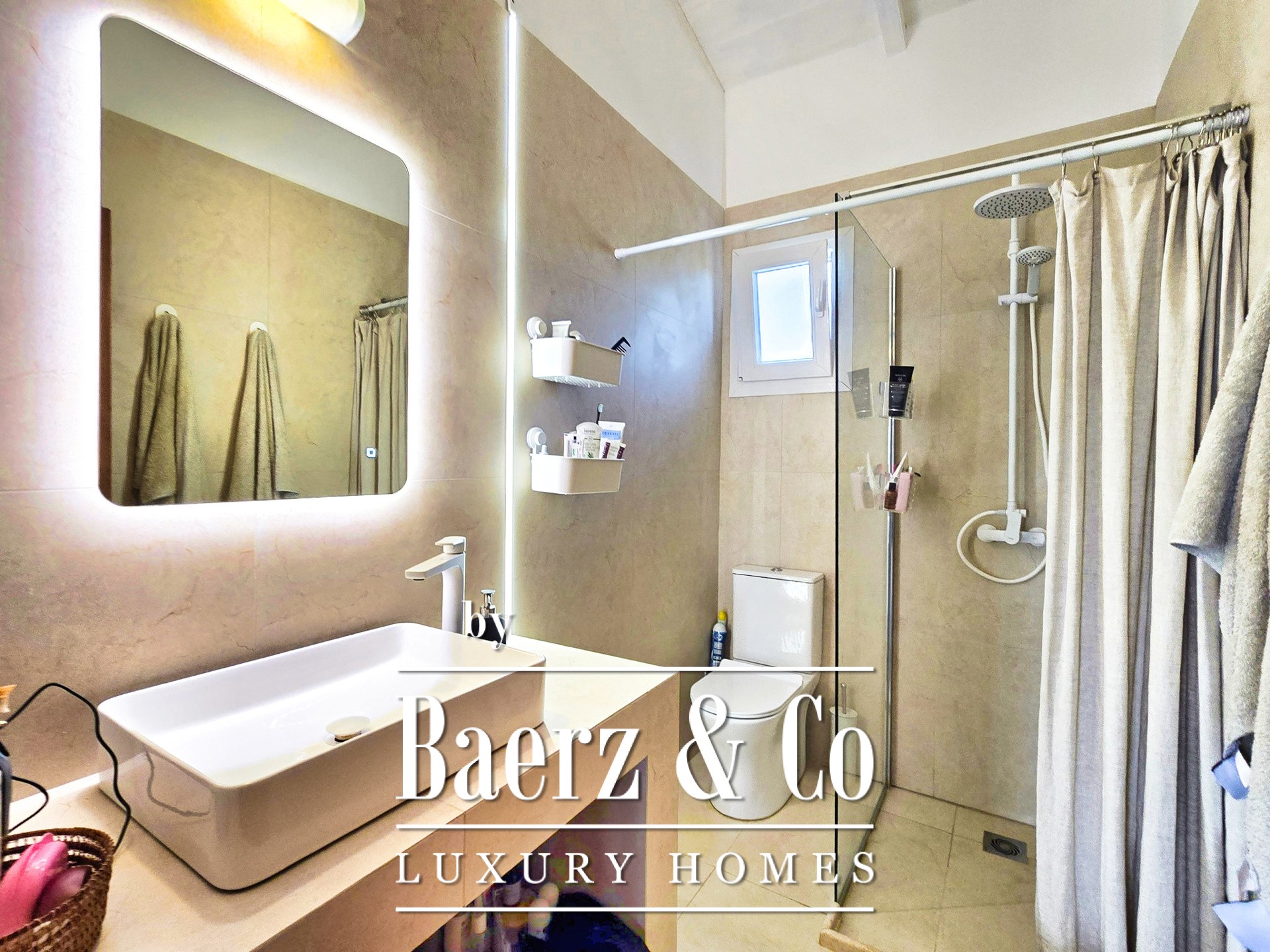 Completely renovated in 2025, the property benefits from new electrical and plumbing installations, a new roof, as well as updated kitchen and bathrooms. The home is distributed over two levels. The ground floor features an independent apartment with an open space and bathroom, extending to a boiler and storage area, along with a substantial water tank. Upstairs, the first floor spans 86.45 m² and includes a bright living and dining area seamlessly connected to the kitchen, two bedrooms, and a bathroom. The exposed wooden ceiling brings warmth throughout, while the living room opens directly onto a generous terrace, revealing unobstructed views across the Argolic Gulf.