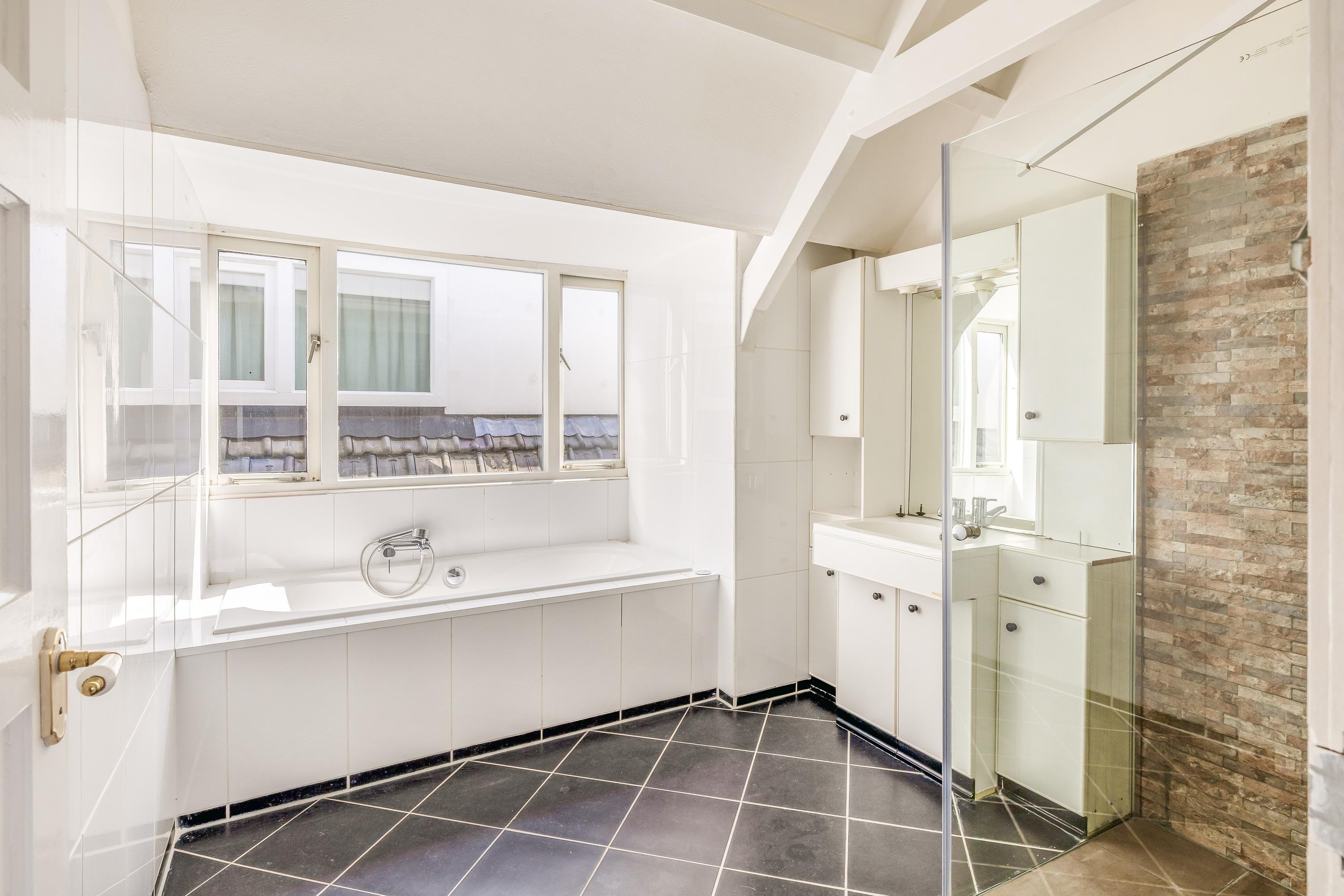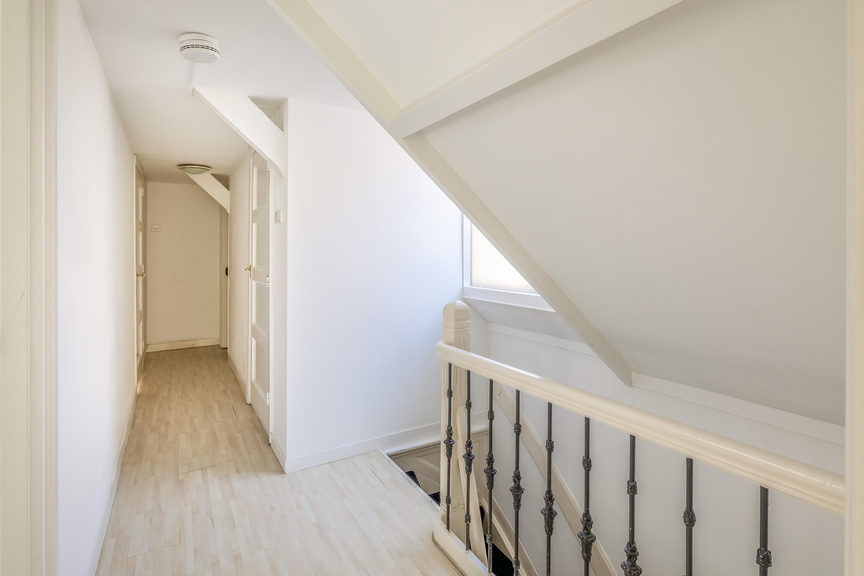 De overloop biedt toegang tot diverse vertrekken. Aan de voorzijde bevindt zich een slaapkamer met ingebouwde kasten en een keukentje. Aan de achterzijde vind je een riante slaapkamer met een brede dakkapel, wastafel en zonnig terras. Op deze etage is er ook een tweede badkamer, voorzien van een ligbad, inloopdouche en wastafel met meubel. Terug in de hal vind je een separaat toilet met wastafel, de opstelling voor de CV-ketels en aansluitingen voor de wasmachine en droger.