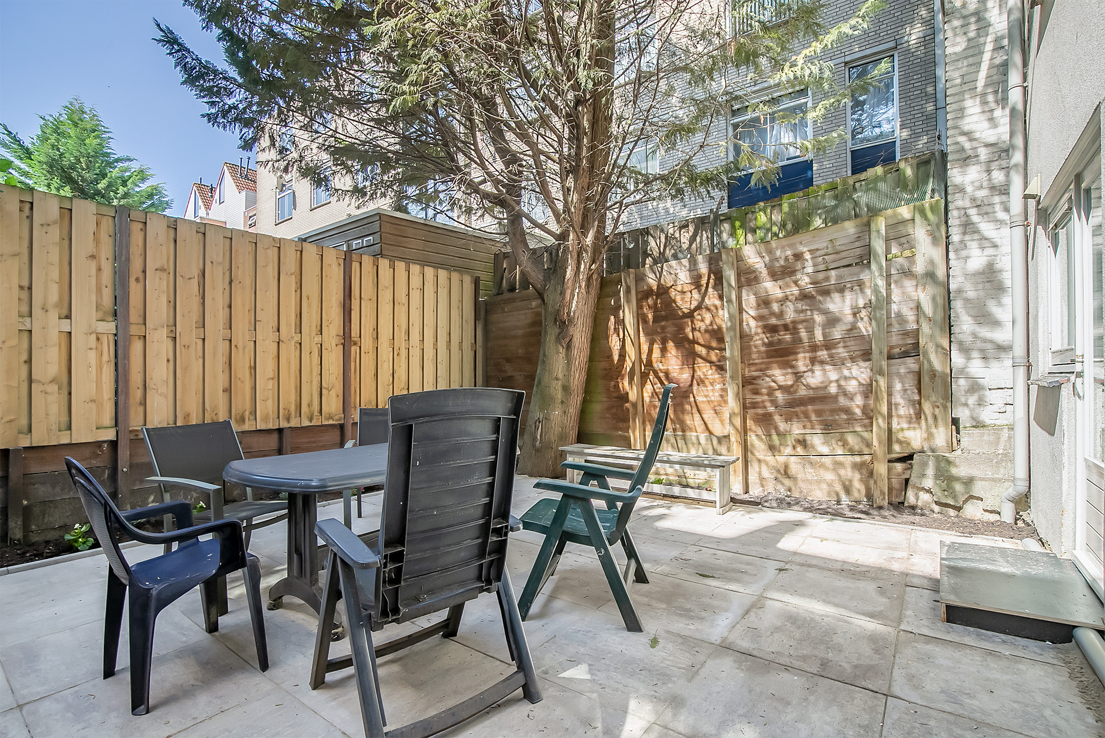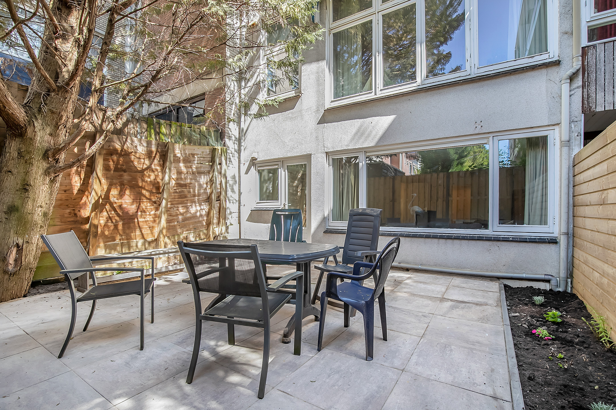 Via de voortuin en een trappetje naar beneden bereik je de voordeur van Oudedijk 92 B. Het souterrain is nu een open ruimte met tal van mogelijkheden. Je kunt het omtoveren tot een zelfstandig appartement, een man cave, een kantoor aan huis of een creatieve studio (impressies met betrekking tot deze mogelijkheden zijn toegevoegd aan de presentatie). Met de mogelijkheid om een trap te realiseren, kun je een interne verbinding maken naar de eerste verdieping, waardoor deze ruimte nog functioneler wordt. De achtertuin is in 2023 opnieuw aangelegd en ligt op het zuiden, waardoor je kunt genieten van de zon in alle privacy.