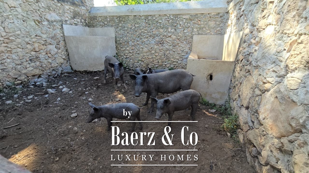 Water security is ensured by a deep well between 120 and 160 meters, a new pump, and a solar energy system with generator backup. Six corrals, twelve paddocks, stables, feeding and drinking troughs—most renovated within three years—sustain current livestock, including thirty cattle and eight horses, with historical capacity exceeding a thousand head. Period artifacts and original machinery recall the estate’s agricultural heritage, while the land’s virgin soils—Kancab, Calché, and Cacalum—remain highly valued for diverse agricultural pursuits.