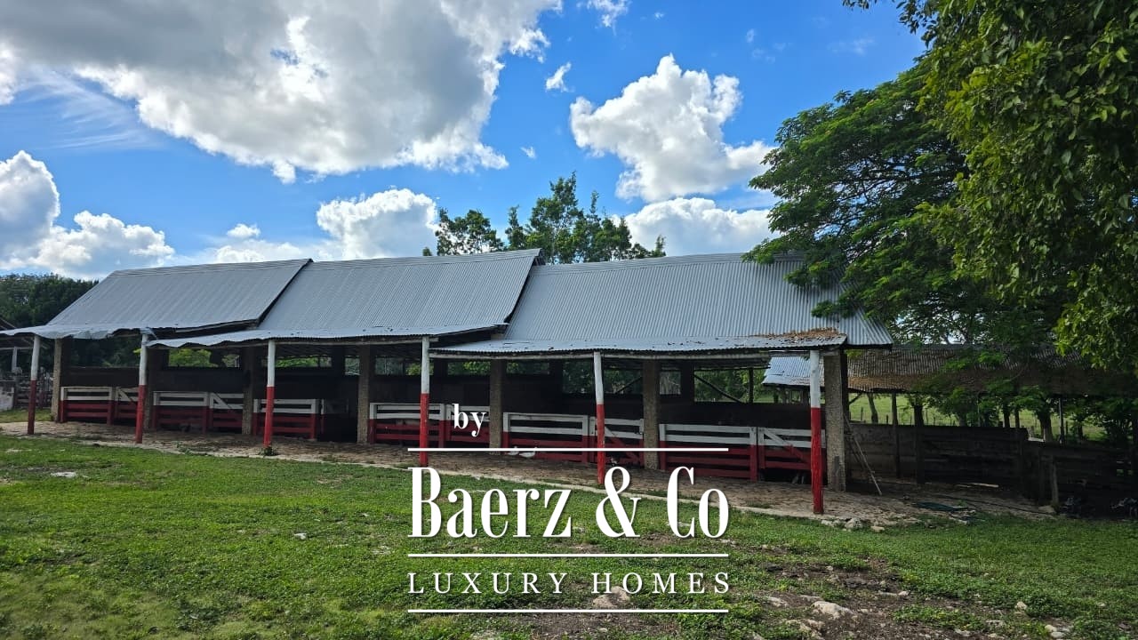 Direct access via a broad, government-maintained road provides ease of movement between the primary and secondary ranch parcels. The main hacienda compound covers approximately 650 square meters, anchored by a residence with spacious living and dining areas, a traditional kitchen, and five bedrooms with three bathrooms. Additional structures comprise a secondary workers’ house, service quarters, multiple warehouses, and machinery sheds, together supporting long-term operations and accommodating community.