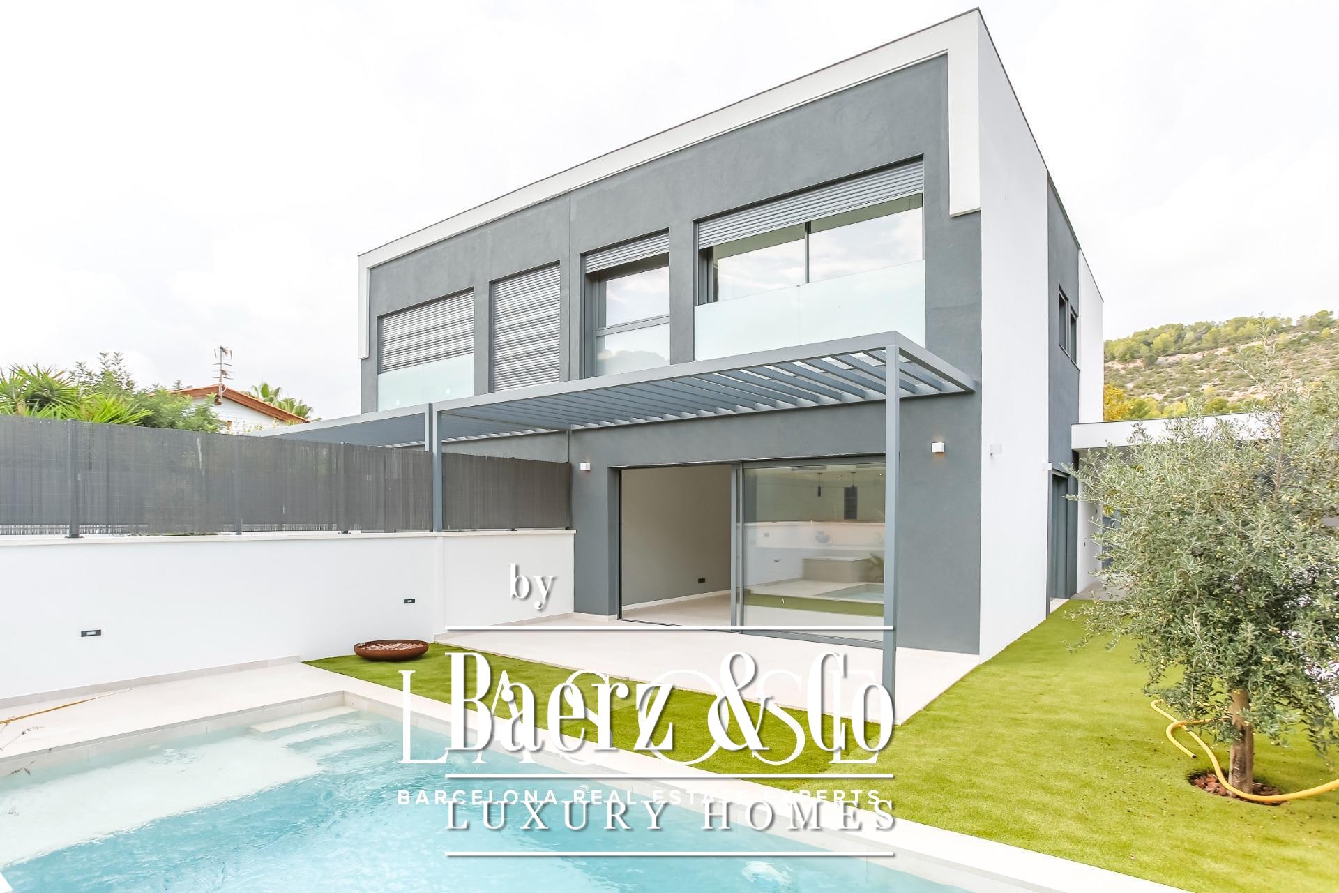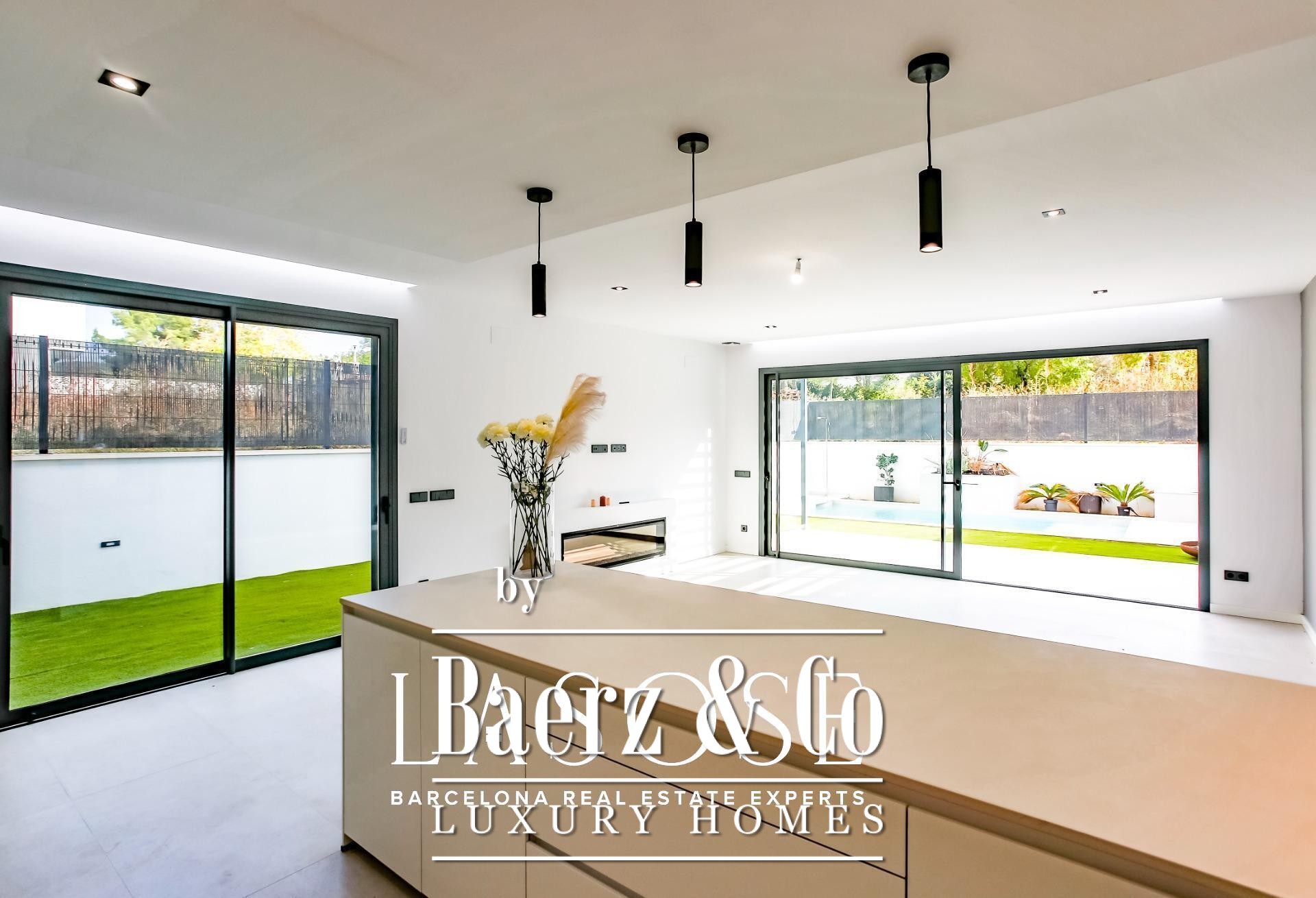 LASOSE PROPIEDADES are delighted to present this modern villa, where your dream Mediterranean lifestyle can start. It is perfectly located just minutes from the center of Sitges and close to international schools, all essential services, and transport connections. Designed for comfort, functionality, and family living, this home offers a peaceful retreat with everything you need within easy reach.. Over 200 m² of built area, the property features 5 bedrooms and 3 bathrooms, offering plenty of space for every member of the family. The open-plan kitchen and dining area create a bright and welcoming space to enjoy daily life together, while the spacious living room opens directly to the garden, filling the home with natural light throughout the day.. . Step outside to your private outdoor space — a garden, terrace, and swimming pool that invite you to enjoy the Mediterranean climate year-round. Whether you’re relaxing by the pool, hosting a barbecue, or watching the kids play, this home provides the perfect setting for both quiet moments and lively family gatherings. The property also includes a garage and ample storage space.. . Built with contemporary architecture and high-quality finishes, the house stands out for its clean lines and modern design. Thanks to its energy-efficient construction, solar panels, and aerothermal system, it combines comfort with sustainability — reducing energy costs while contributing to a more environmentally friendly lifestyle..