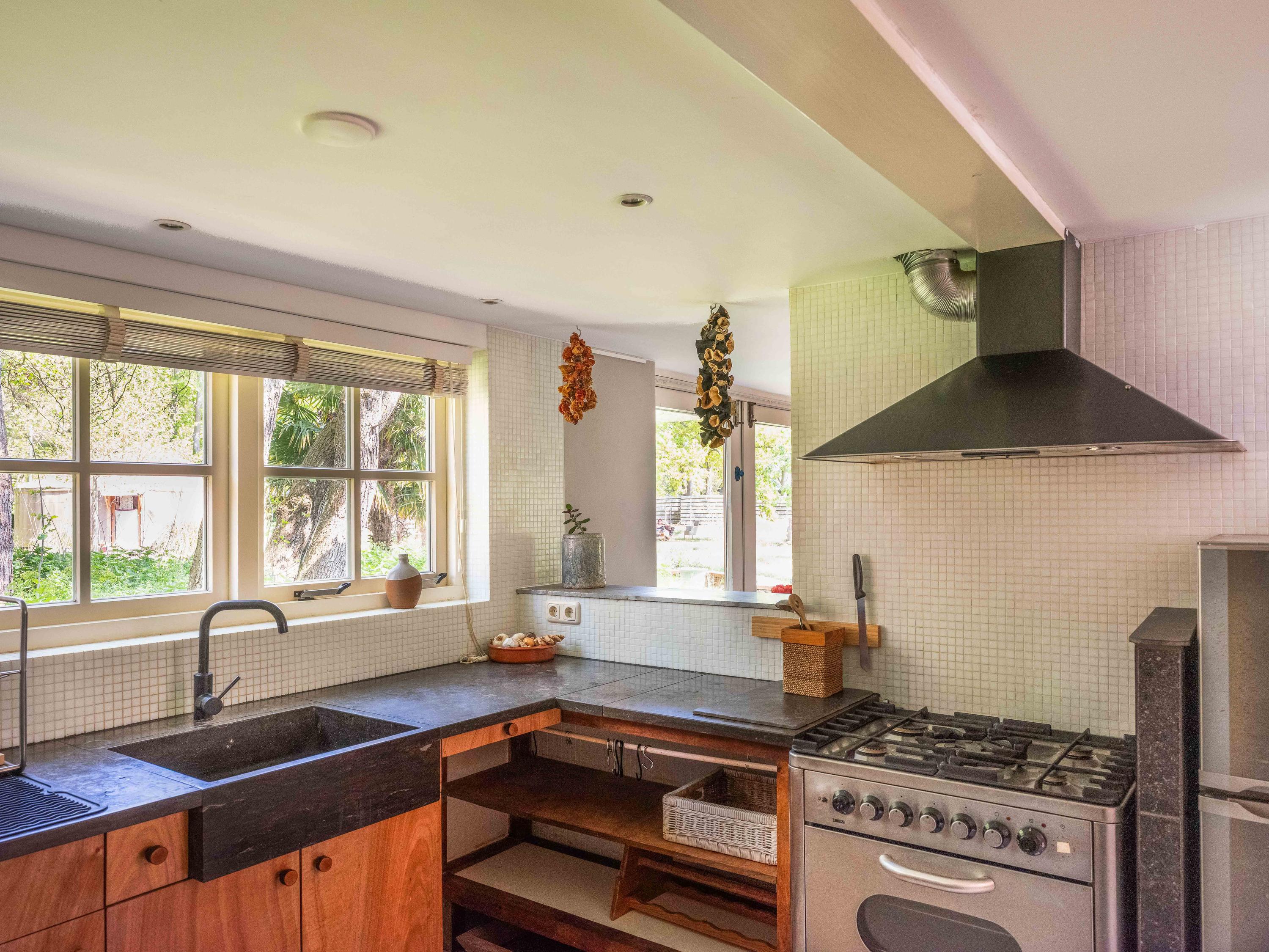 The generous plot of over 7,000 m² is a haven of tranquility, entirely enclosed by a moat with multiple dune streams, and landscaped with unique groups of trees in a thoughtfully designed pattern. In addition to the main house, you’ll find a separate, fully functional guest house and several charming outbuildings and covered spaces, making this property a truly unique ensemble. Whether you’re looking to relax, find inspiration, entertain guests, enjoy a cup of tea in the lovely tea pavilion, or bake a pizza in your very own clay outdoor oven – this country home offers it all.