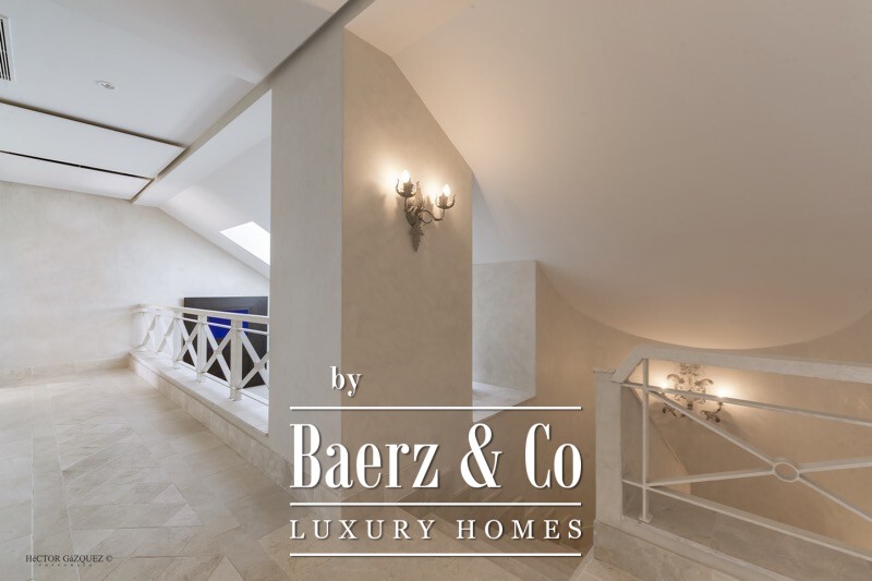 Penthouse Sotogrande in the esteemed Valgrande community enjoys a setting adjacent to the Real Club Valderrama, offering refined privacy within a renowned enclave. This residence spans 533 m² and is designed to accommodate four spacious en-suite bedrooms, ensuring personal comfort for family or guests. South-facing terraces of 193 m² invite the natural light inward, framing views across a tranquil gorge and beautifully landscaped gardens, with the outdoor areas ideal for extended dining or leisurely gatherings.