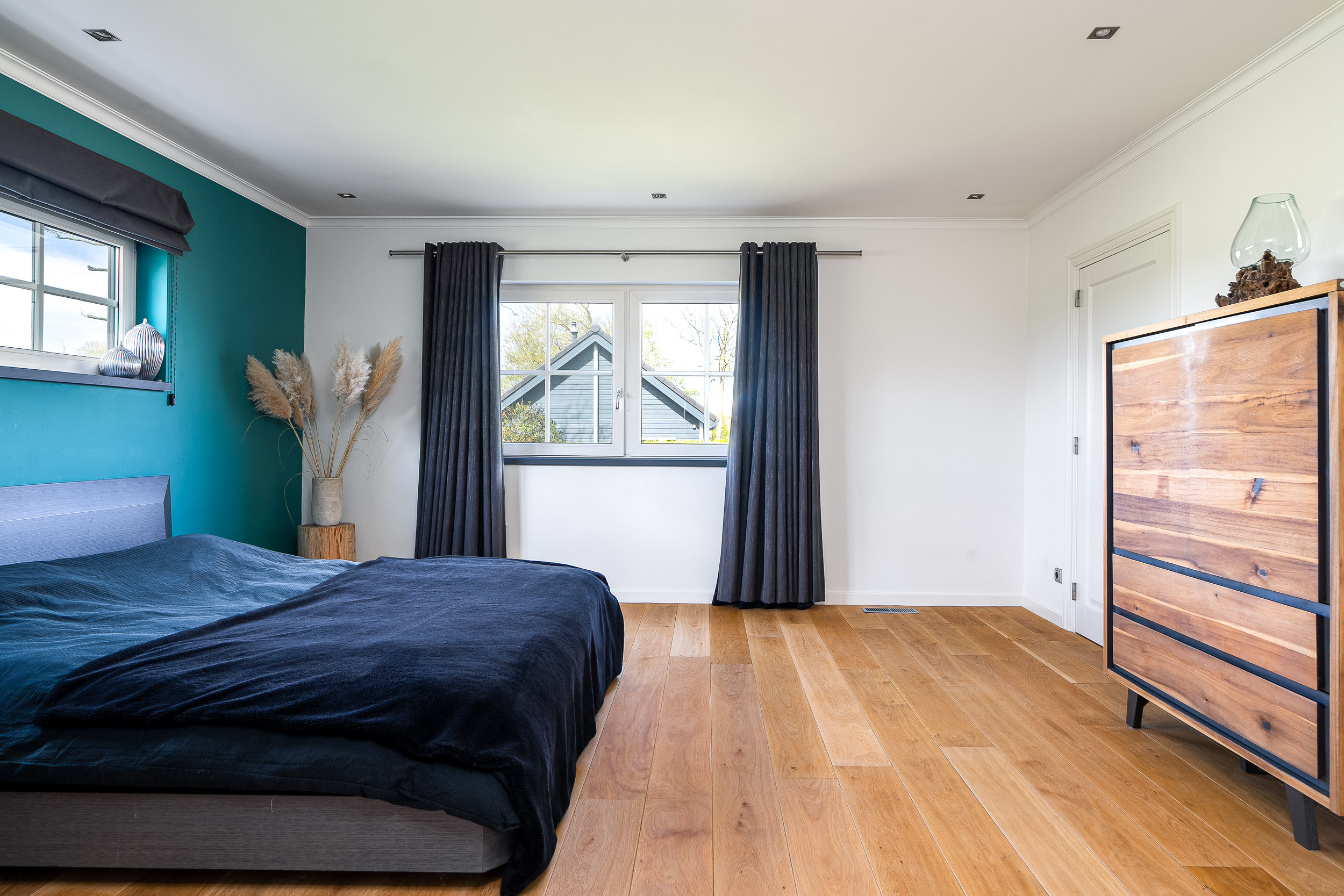 In a prime location near the IJsselmeer, adjacent to a marina with direct access to all waterways in Friesland, this villa was completely renovated in 2004 and is situated on a spacious, fenced plot with full privacy and stunning Frisian panoramas. The tranquility, greenery, water, ever-changing skies, and sense of freedom are the defining features of this home. This well-insulated villa of 245m² is designed for lifelong living, featuring a spacious living area, four bedrooms, two bathrooms, a luxurious kitchen with utility room, and a beautiful veranda with scenic views. The double garage with an upper floor offers an abundance of space and possibilities. The fully insulated home office, studio, or guesthouse with breathtaking views of nature serves as a true source of inspiration. The architecturally designed garden, maintained with a robotic lawn mower, is easy to care for and playfully arranged with various fruit trees, hedges, and reed-lined waterways. The stylishly paved driveway and entrance gate highlight the transition to the lush green garden that remains vibrant year-round.