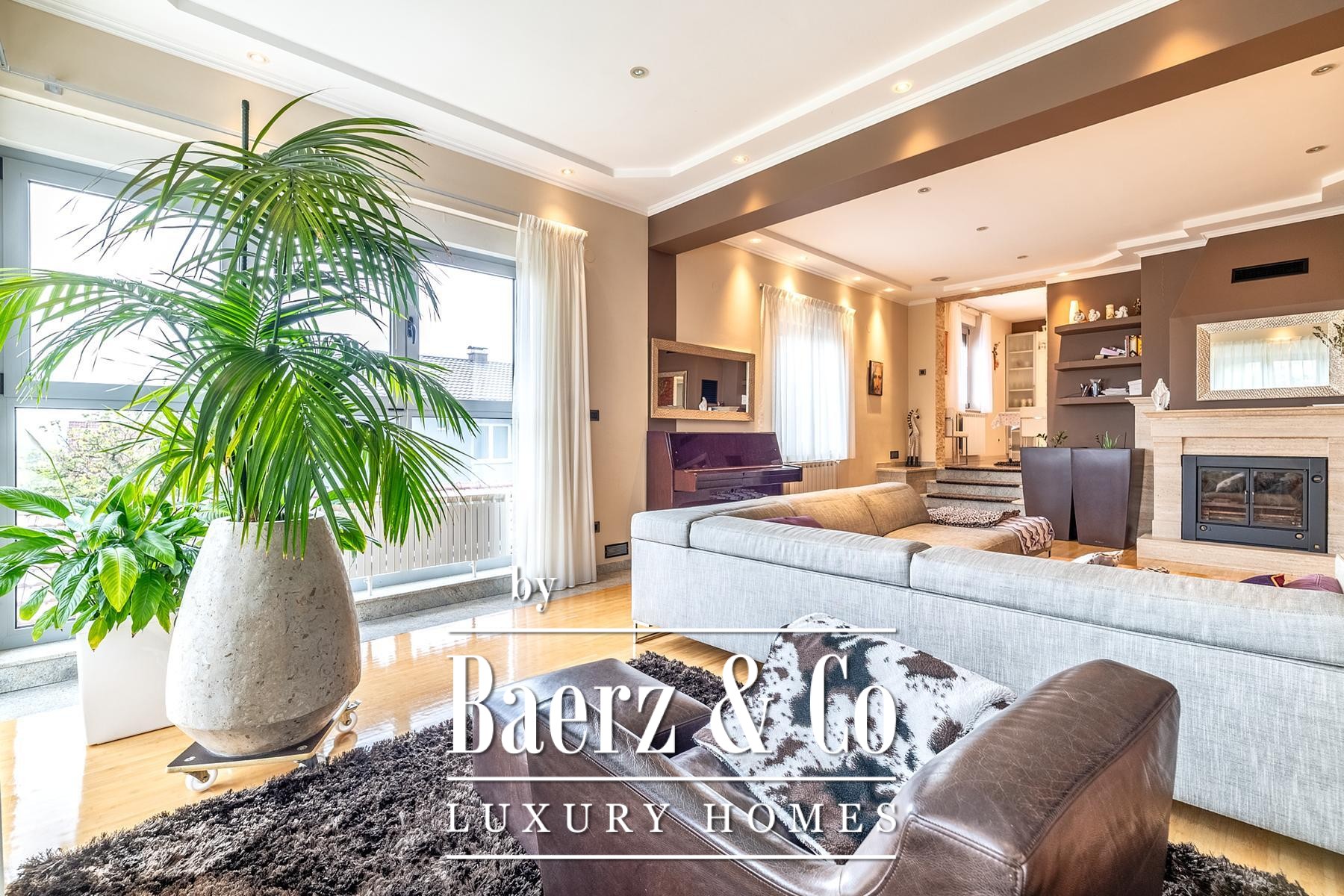 The home welcomes with light-filled interiors, a practical arrangement of rooms, and a beautifully landscaped garden that encourages both play and repose. The basement includes a garage, boiler room, wine cellar, laundry, sauna, and multiple storage options, grounding the house in utility and private leisure. The main floor’s airy living room, dedicated study or guest space, open kitchen with dining area, terrace, and guest facilities support family gatherings and daily rituals. Upstairs, three bedrooms, two bathrooms, a private balcony, and another terrace create generous, quiet retreats.