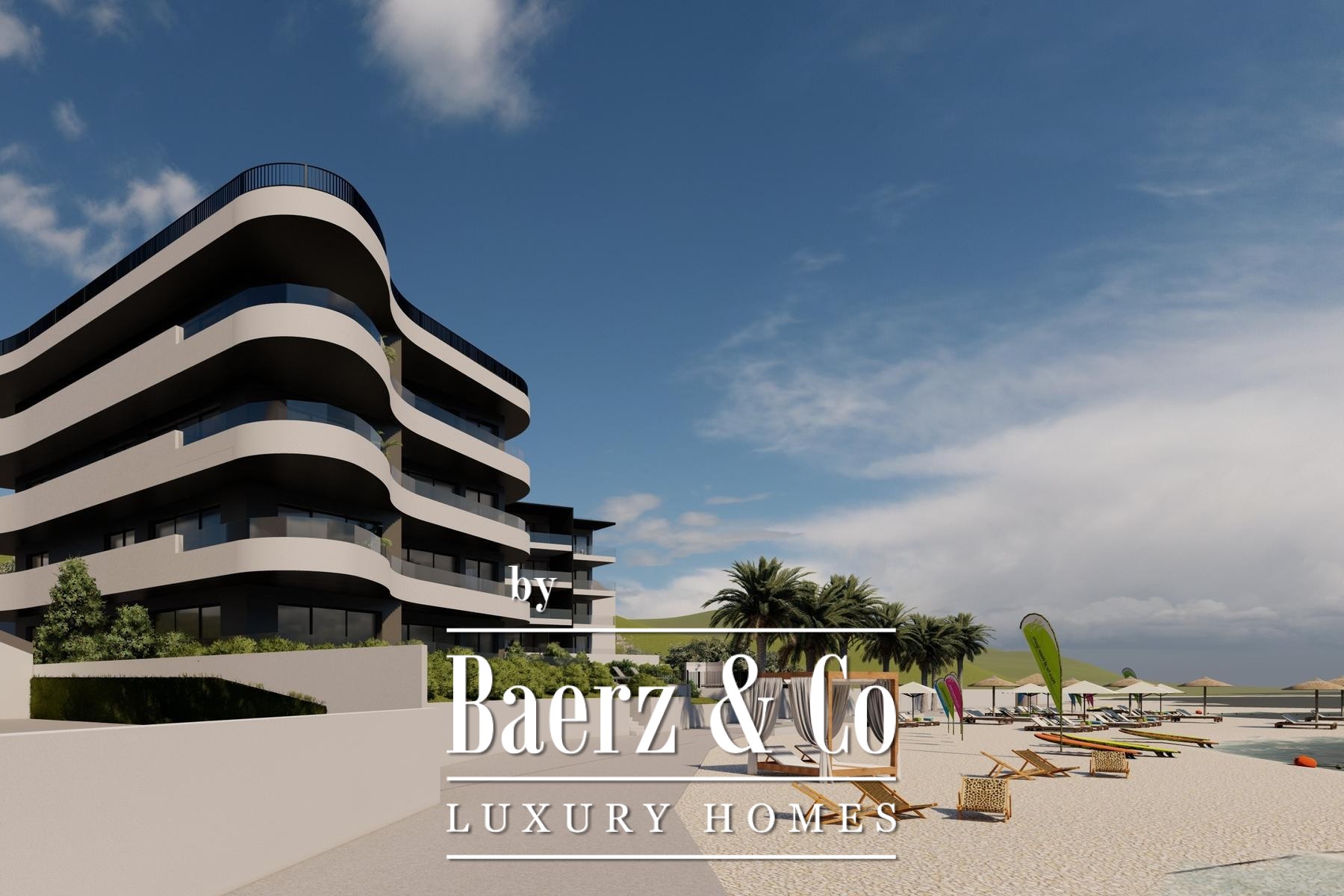 Luxury penthouse apartment Trogir offers direct beachfront living in a distinguished modern building. This penthouse occupies the third floor within an exclusive residential development of just eight units, positioned first row to the sea with uninterrupted southwest views over the island of Čiovo. The residence provides a net living area of 103,81 m², featuring two bedrooms and two bathrooms, as well as a guest toilet. The open concept kitchen, dining, and living area transitions seamlessly onto a 32,61 m² sea-facing terrace. An external staircase leads to a private roof terrace of 75,44 m², introducing an elevated outdoor experience overlooking the Adriatic.