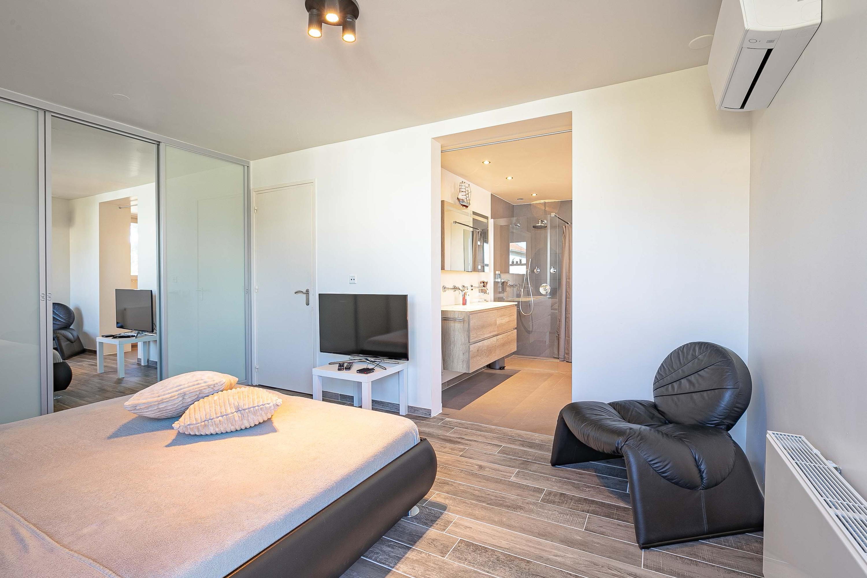 - Het terras aan de zijkant van de woning is voorzien van een elektrisch zonnescherm;