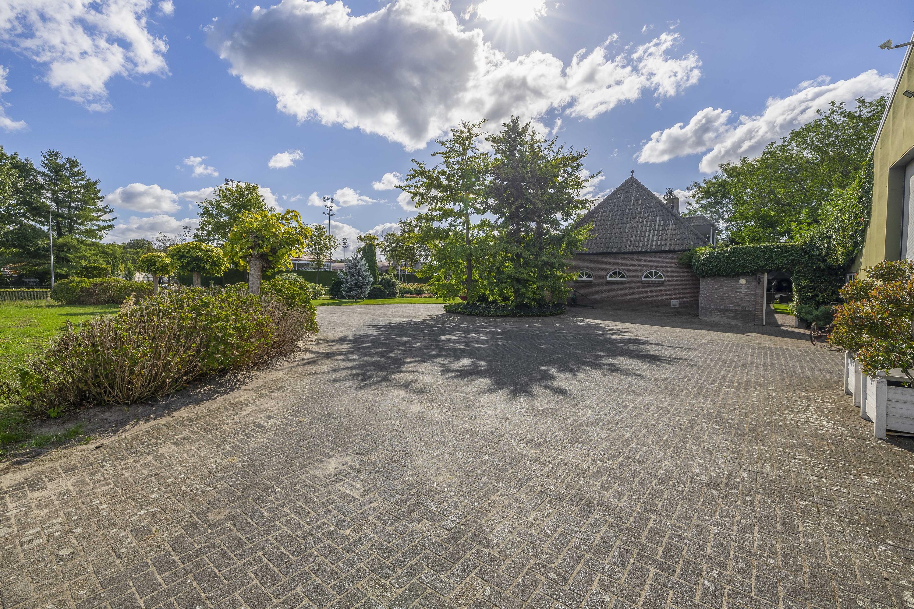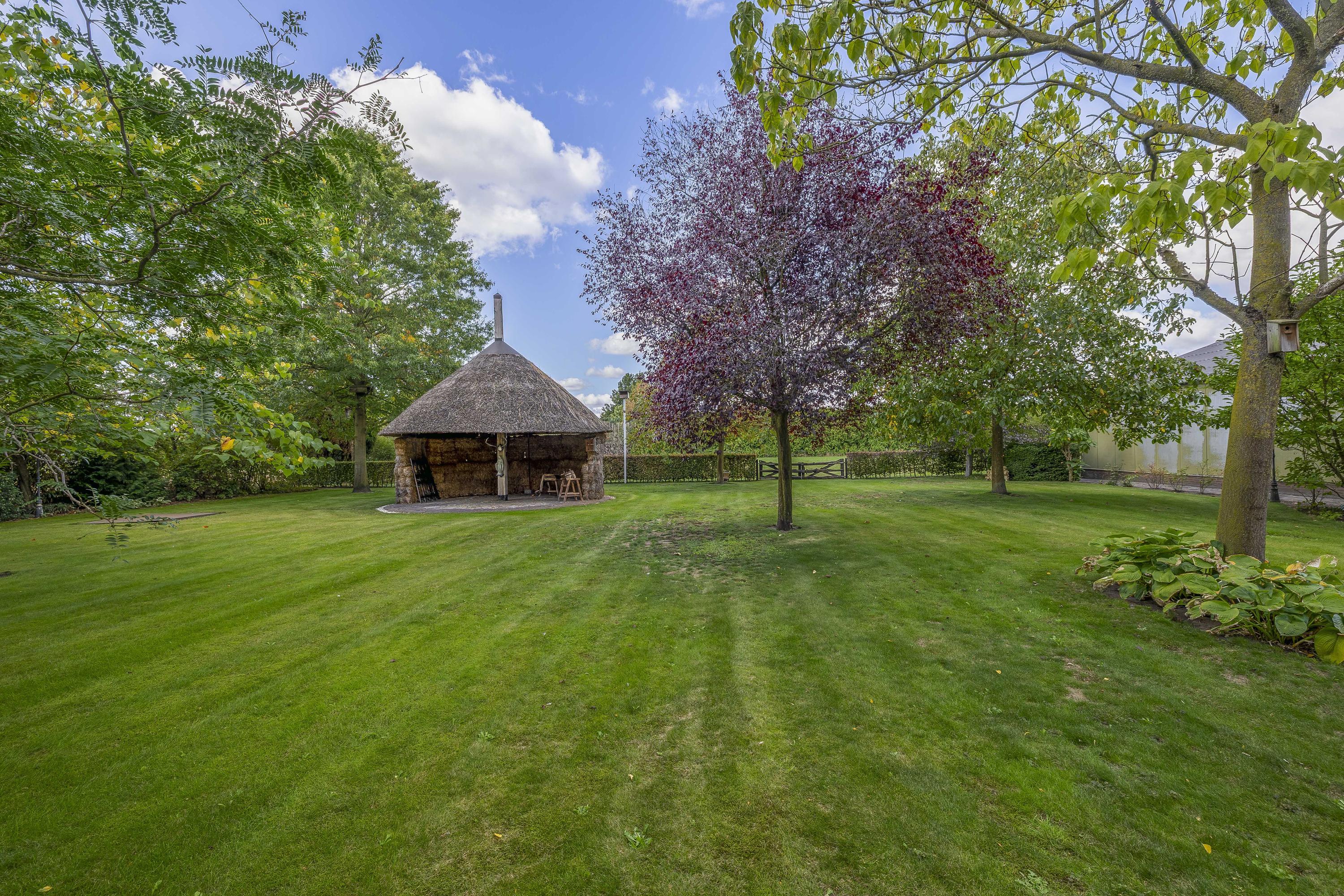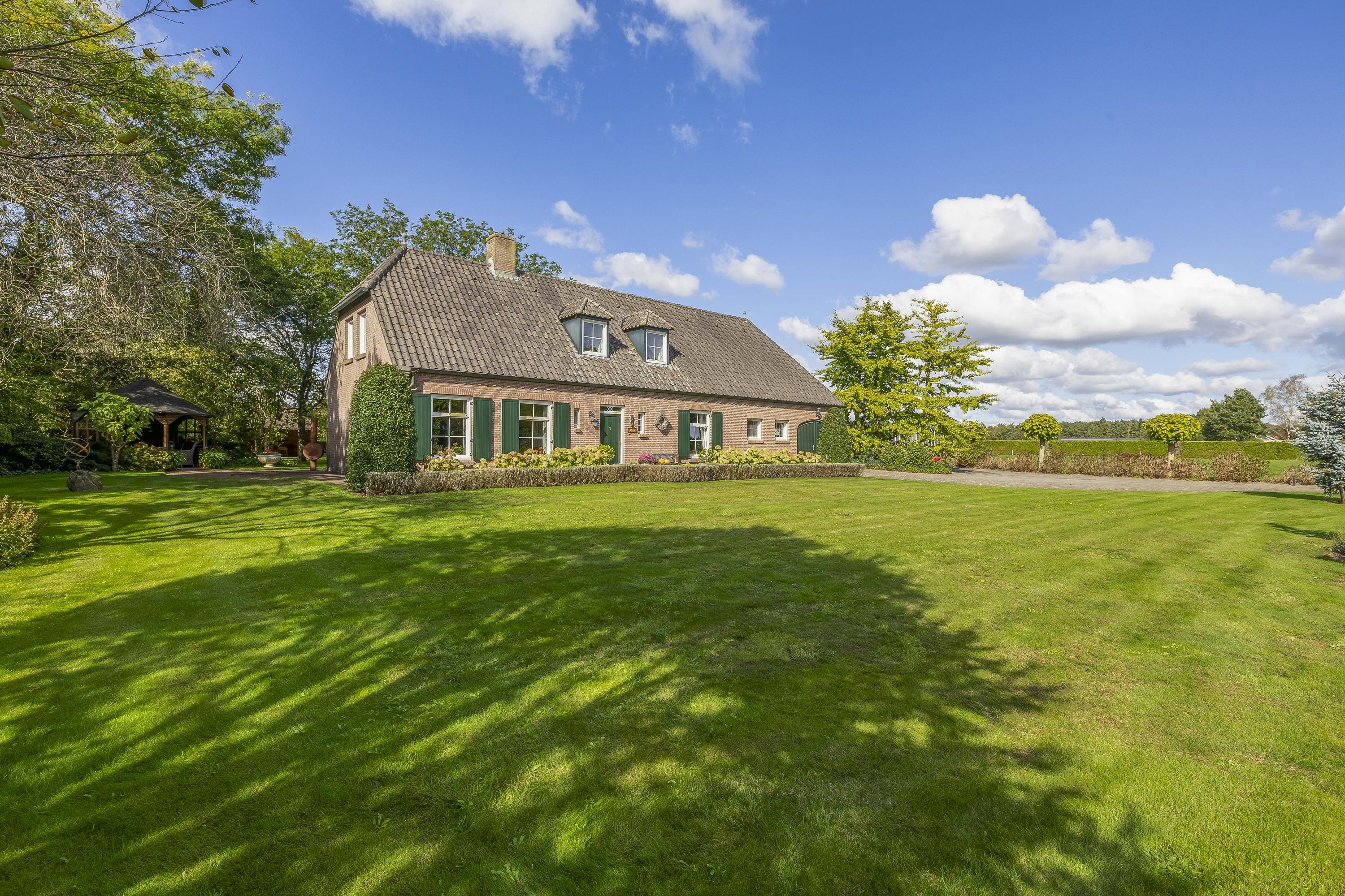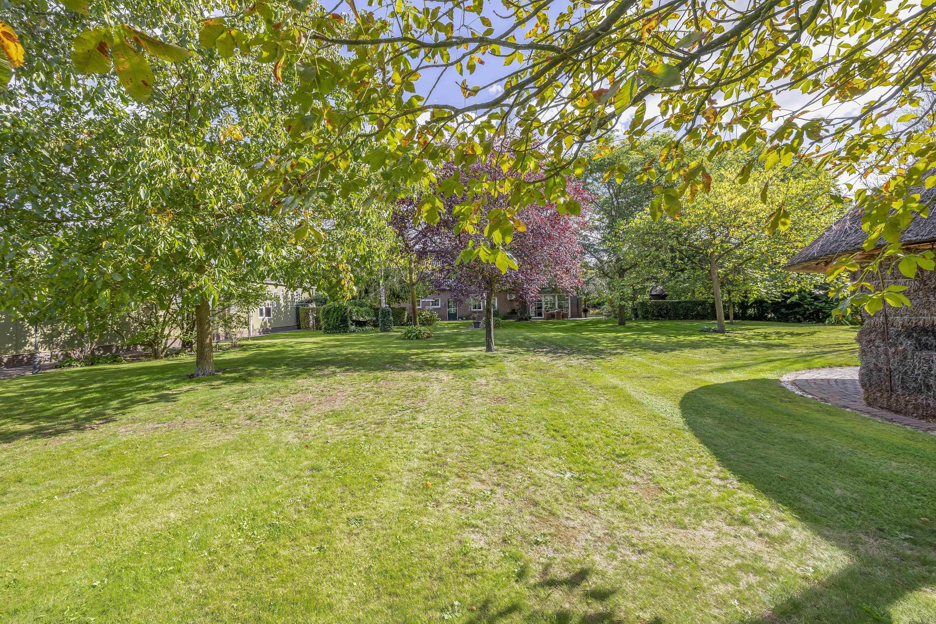 en-suite bathroom. There is also a practical utility room and an indoor garage. Outside, a spacious, well-maintained garden awaits you, featuring a large lawn, mature trees that add character, natural hedges, a terrace at the rear and a covered terrace. The detached barn and adjacent greenhouse offer plenty of opportunities for establishing an (agricultural) business. In addition, the adjacent plot of cultivated land can also be used for commercial purposes, but it is of course also ideal for keeping horses as a hobby.