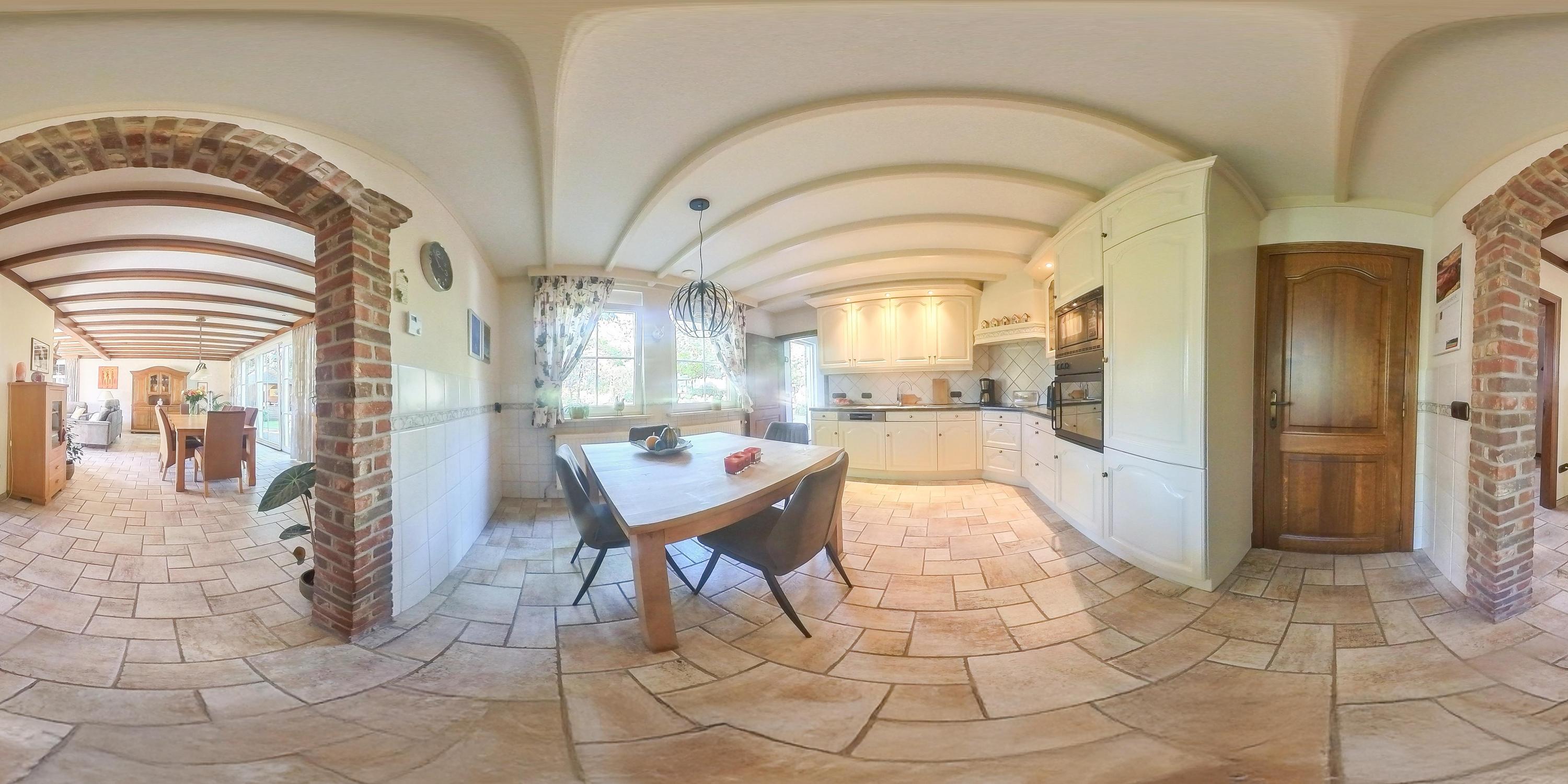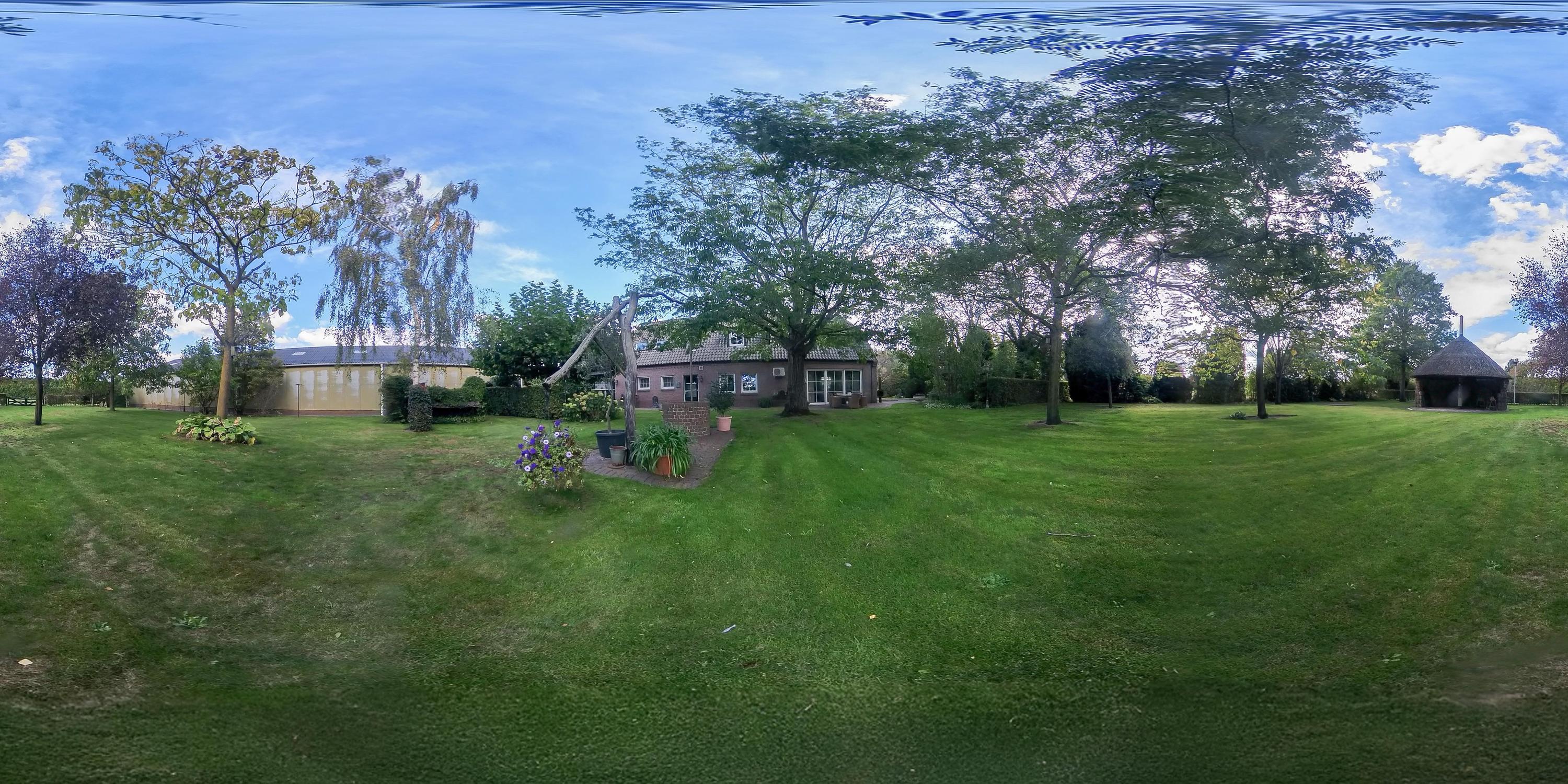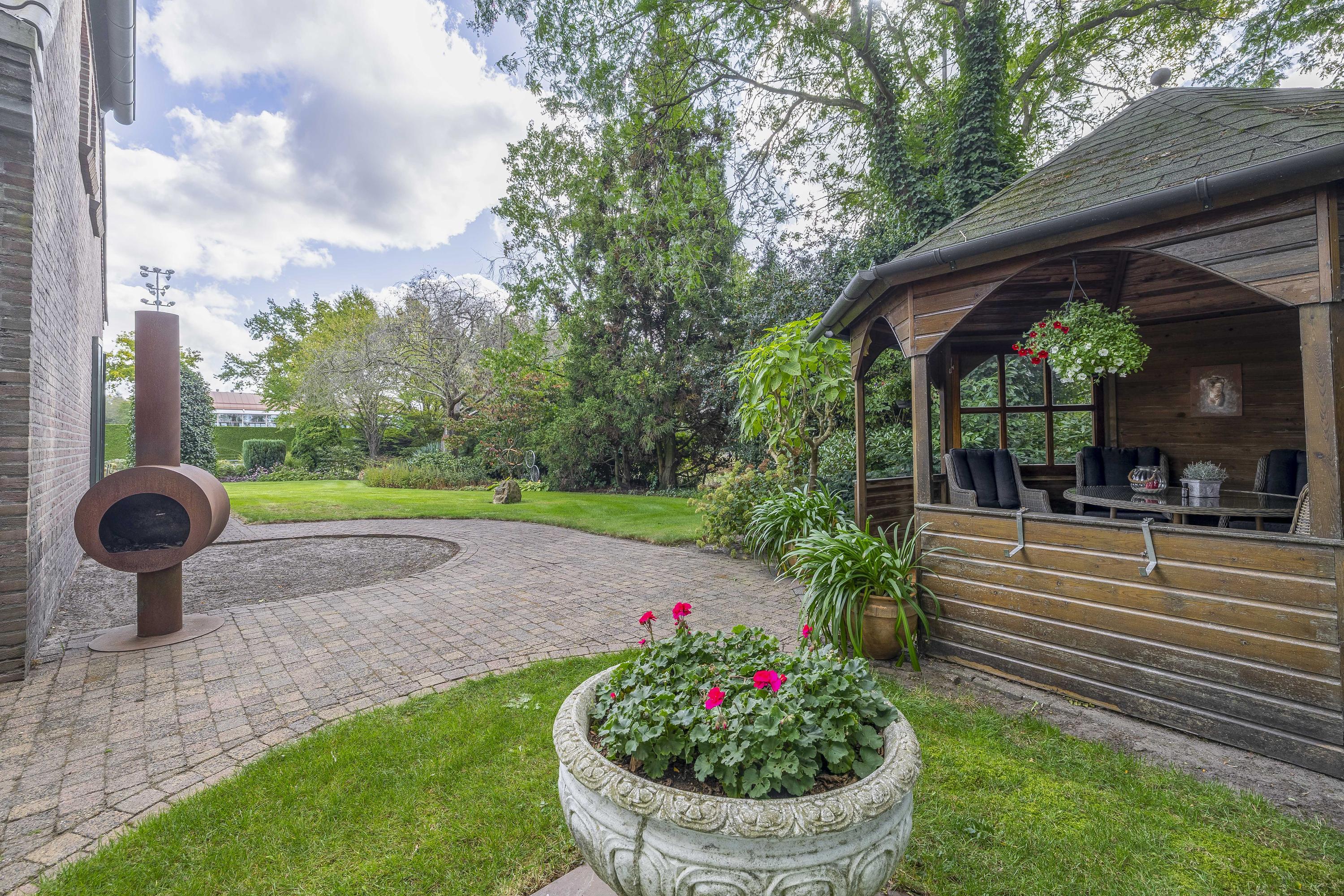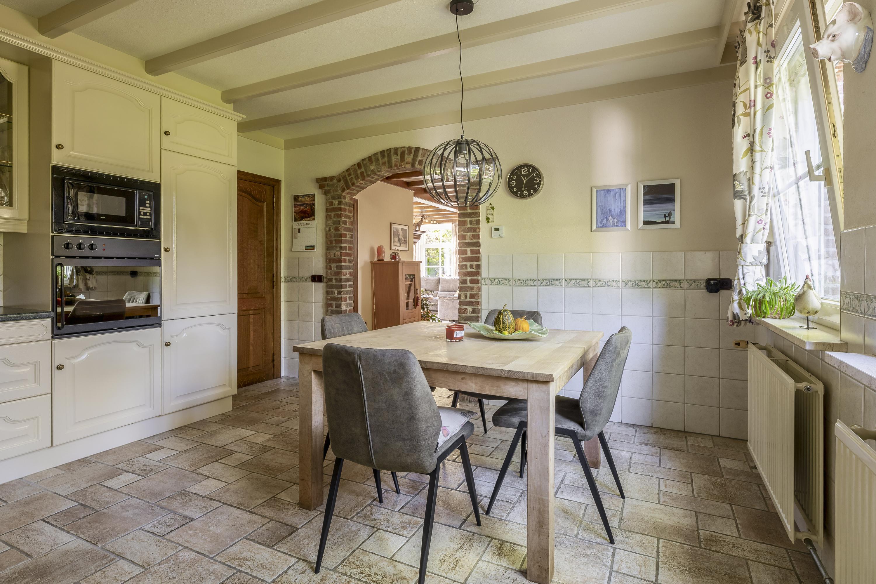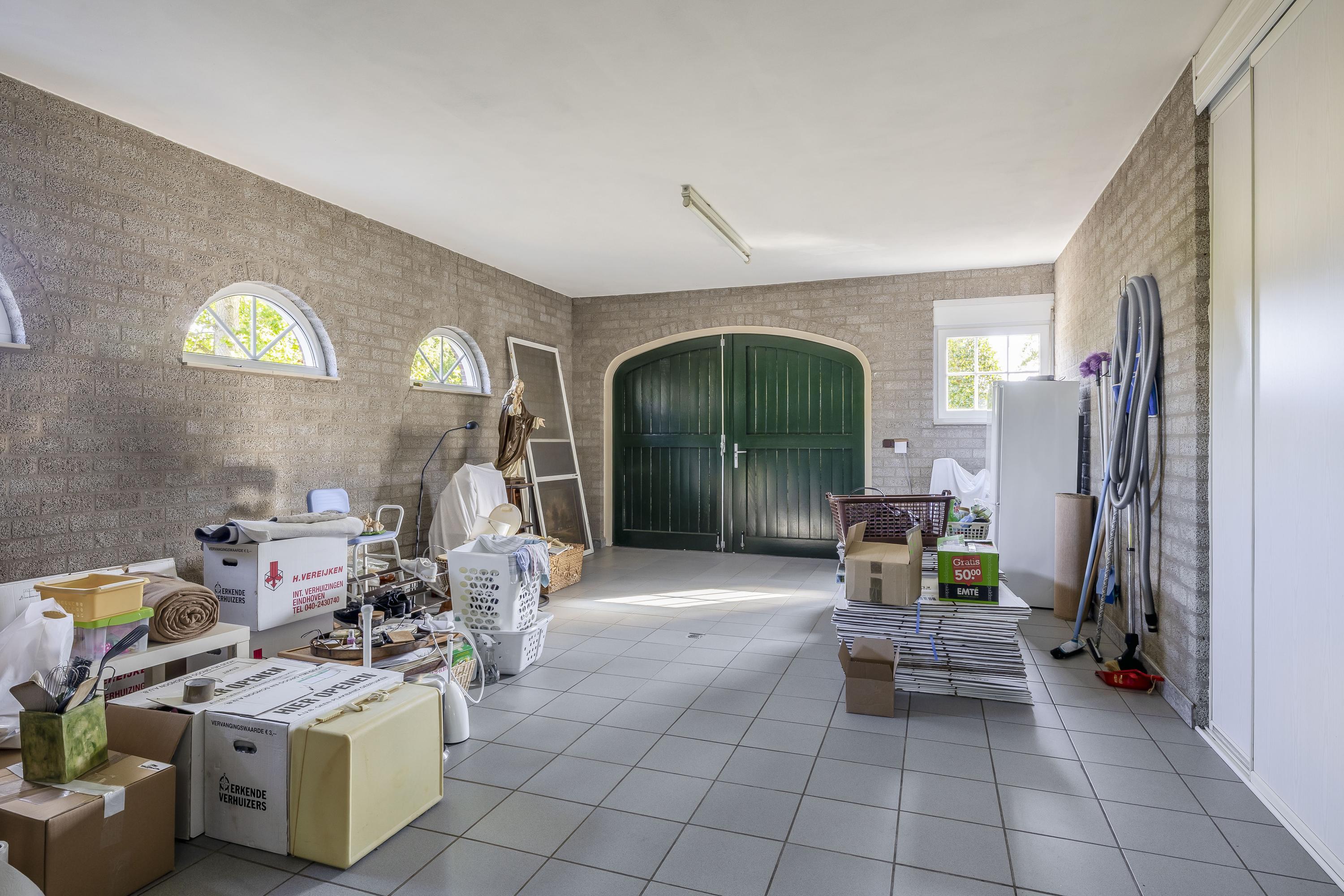 en-suite bathroom. There is also a practical utility room and an indoor garage. Outside, a spacious, well-maintained garden awaits you, featuring a large lawn, mature trees that add character, natural hedges, a terrace at the rear and a covered terrace. The detached barn and adjacent greenhouse offer plenty of opportunities for establishing an (agricultural) business. In addition, the adjacent plot of cultivated land can also be used for commercial purposes, but it is of course also ideal for keeping horses as a hobby.