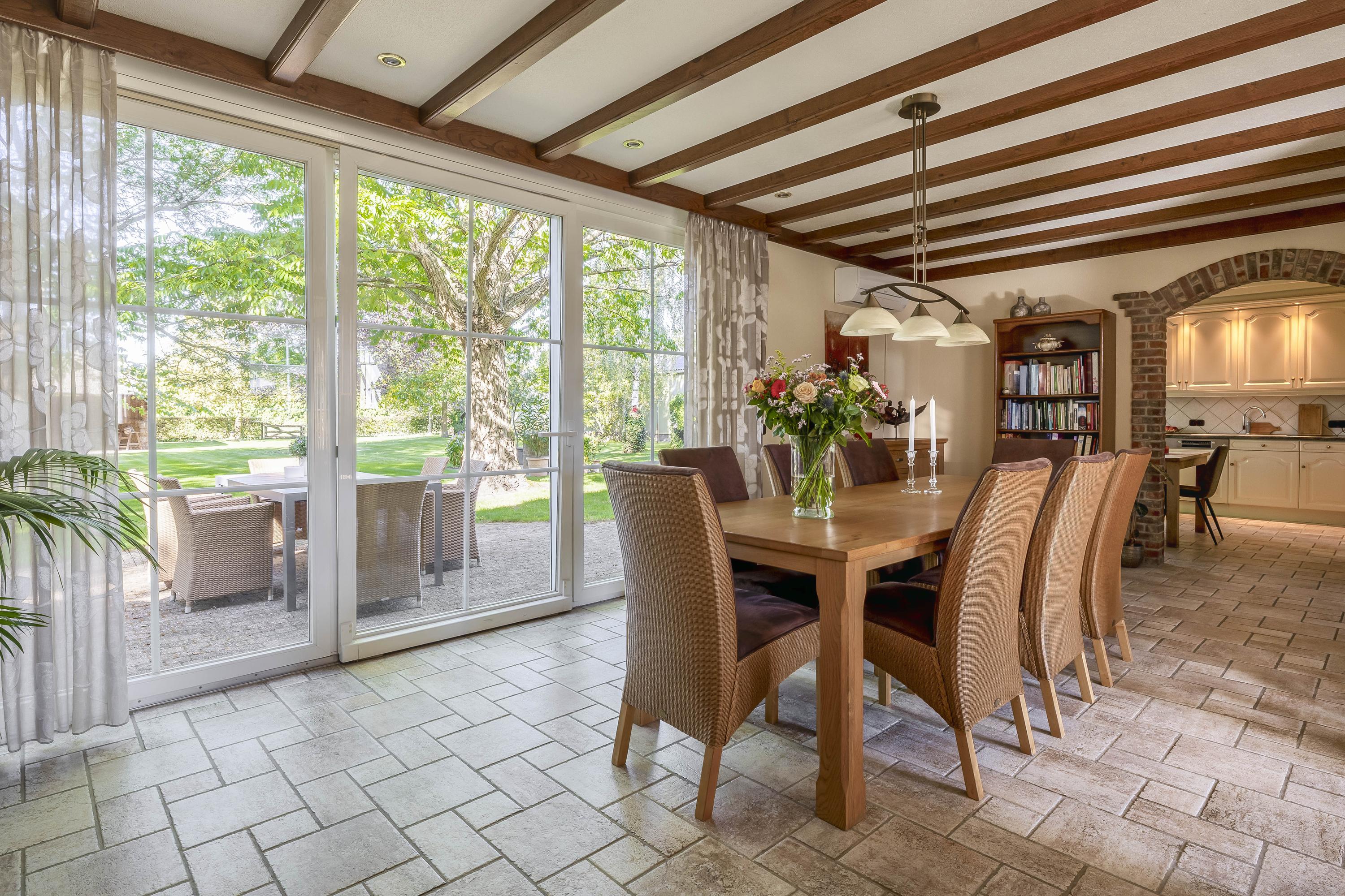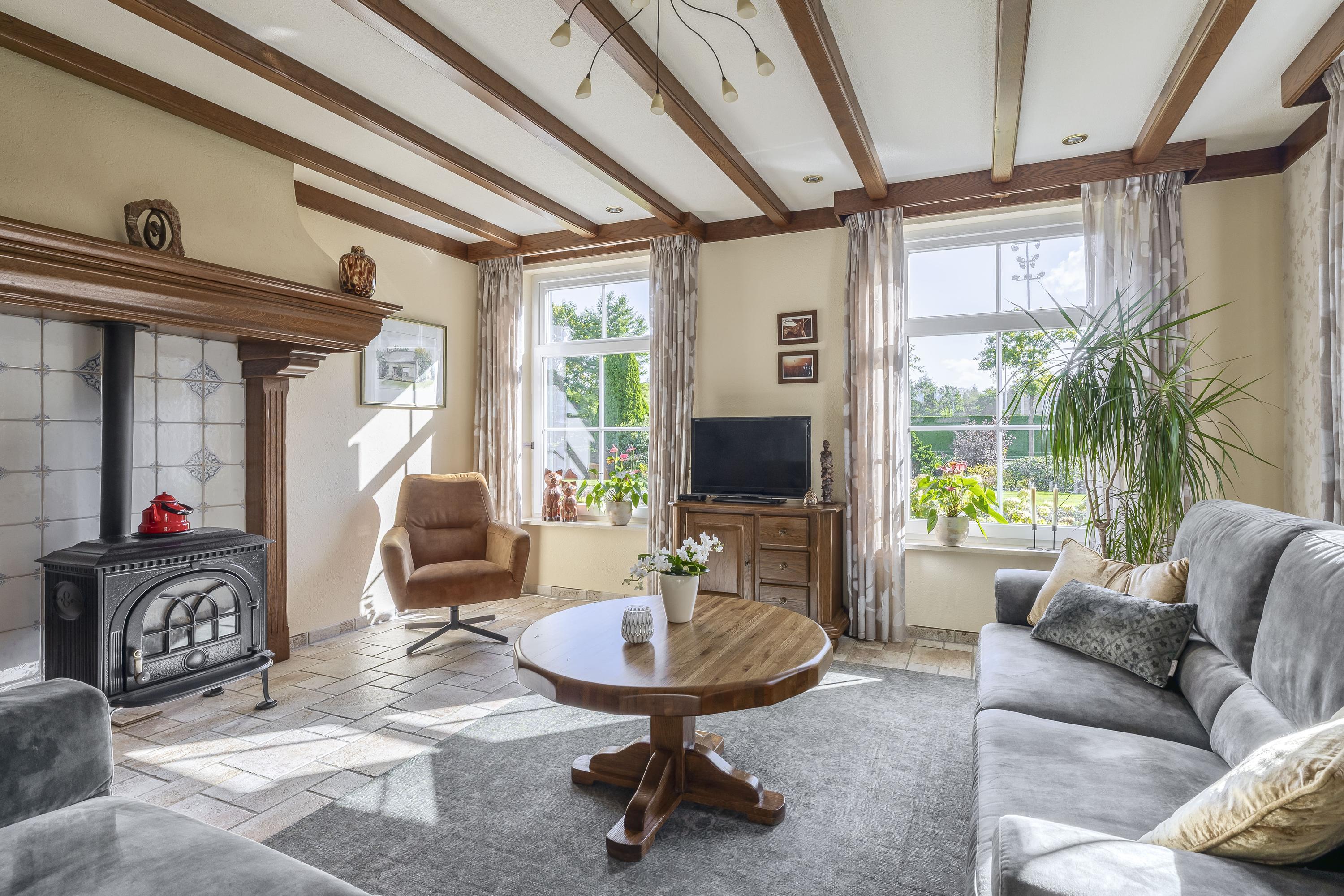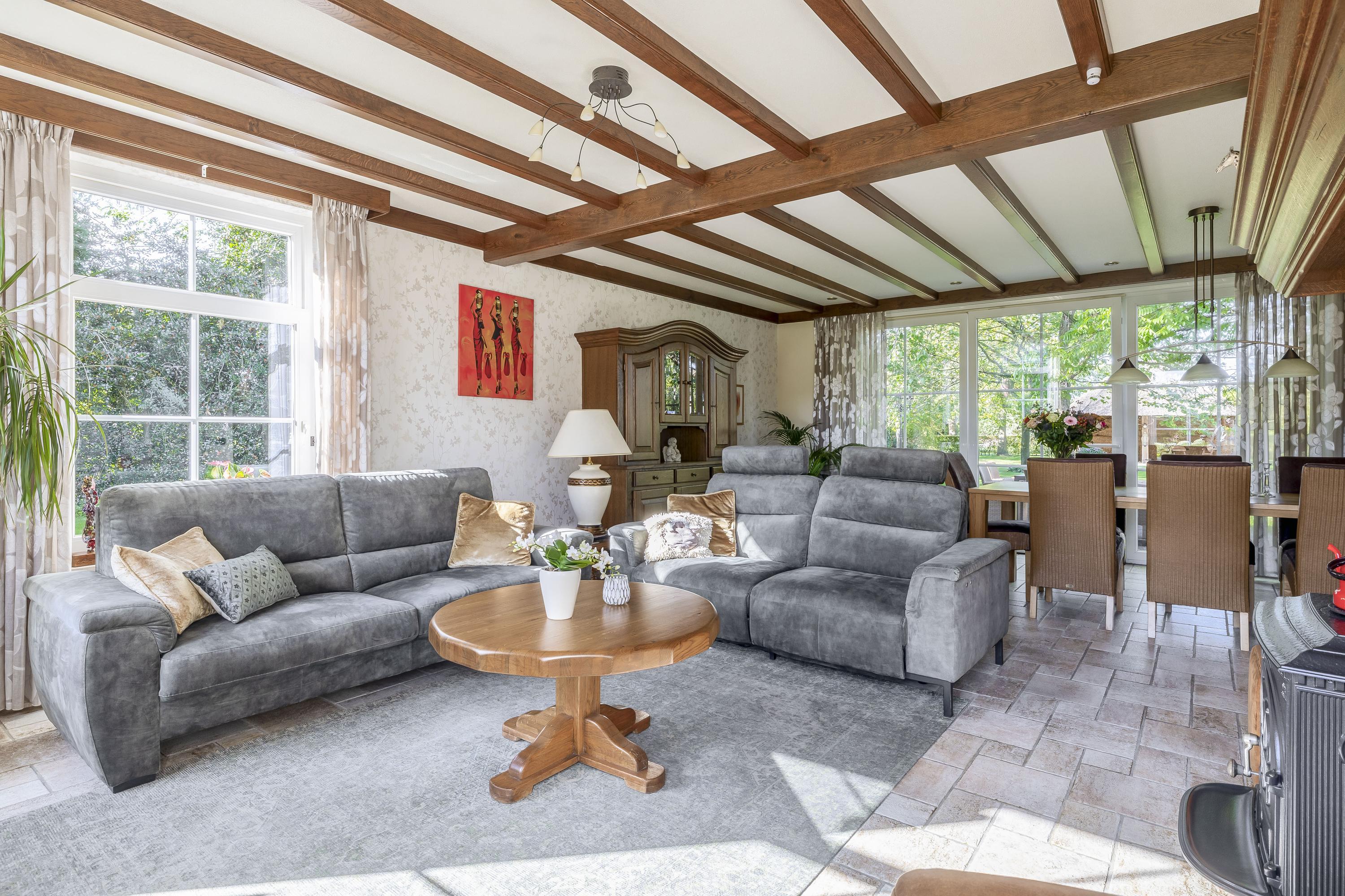 This detached house offers plenty of living space and possibilities. The ground floor features a living room, a kitchen and a bedroom with en-suite bathroom. There is also an indoor garage. Outside you will find a spacious, well-maintained garden with a large lawn, mature trees, natural hedges and two terraces. In addition, the outbuilding and greenhouse offer extra possibilities, while the adjacent meadow and barn are ideal for